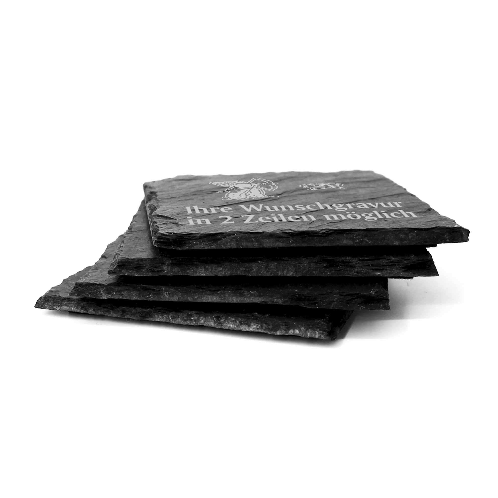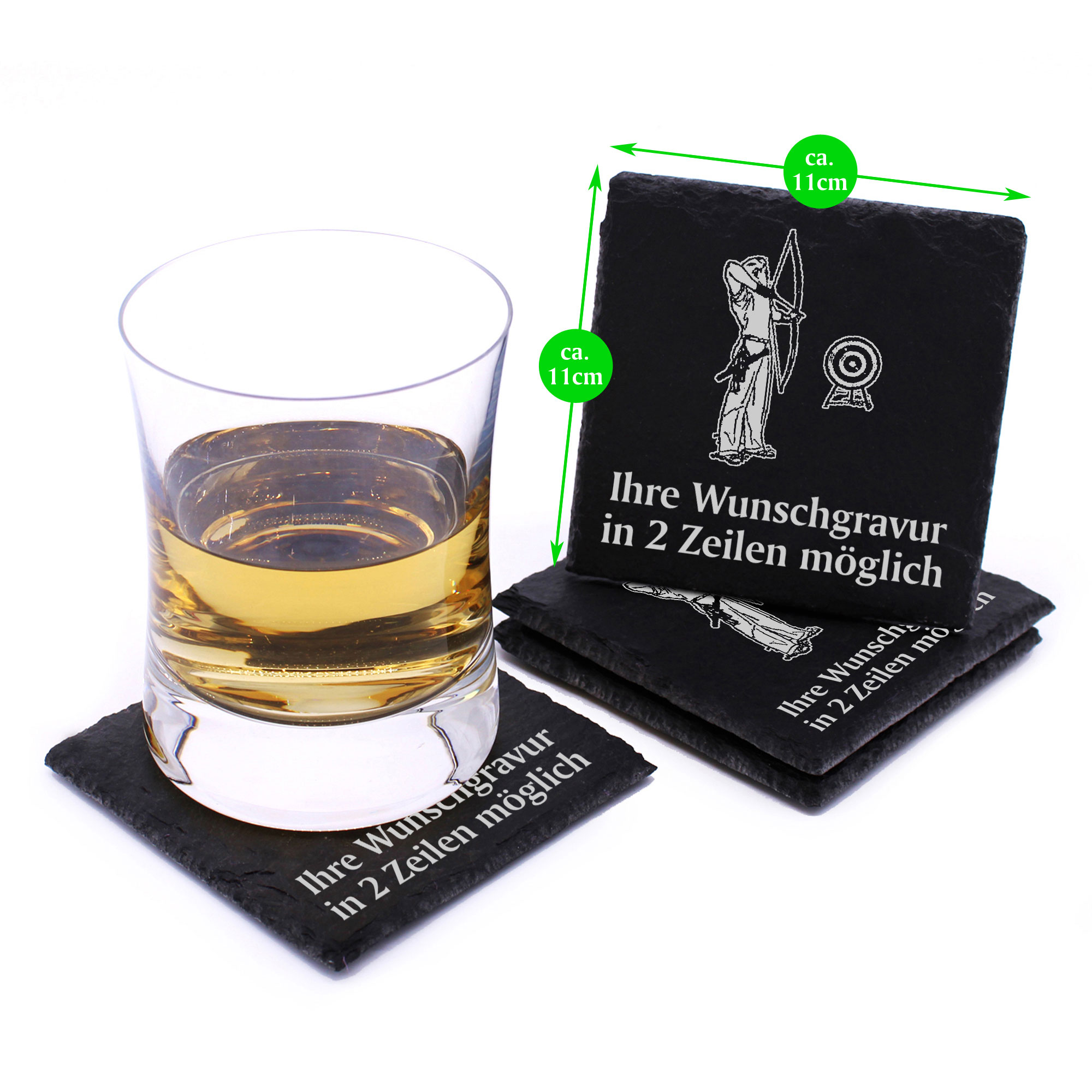 4x Bogenschießen Deko Schiefer Untersetzer Wunschgravur Set - 11 x 11 cm