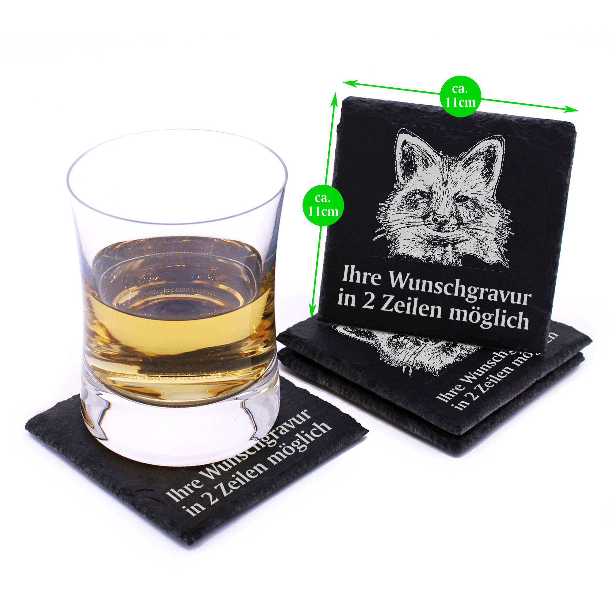 4x Fuchs Kopf Deko Schiefer Untersetzer Wunschgravur Set - 11 x 11 cm