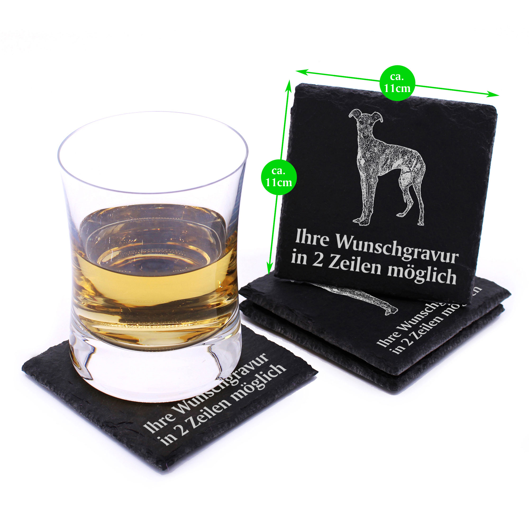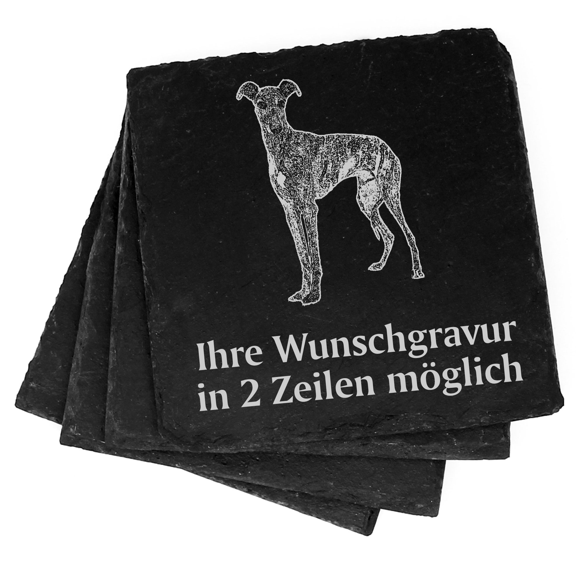 4x Galgo Español Deko Schiefer Untersetzer Wunschgravur Set - 11 x 11 cm