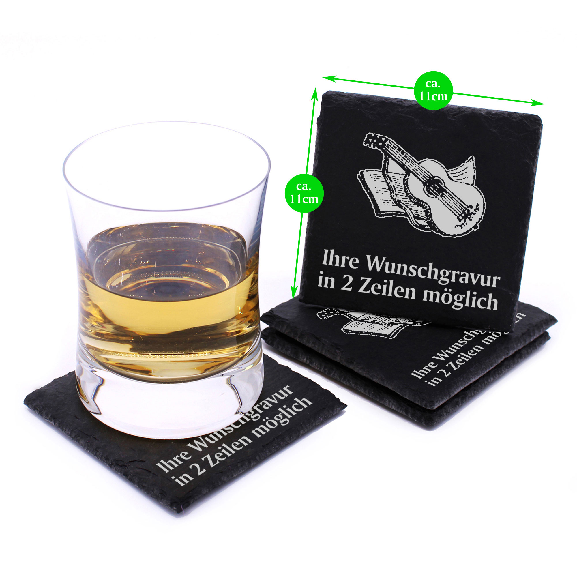 4x Gitarre mit Notenbuch Deko Schiefer Untersetzer Wunschgravur Set - 11 x 11 cm