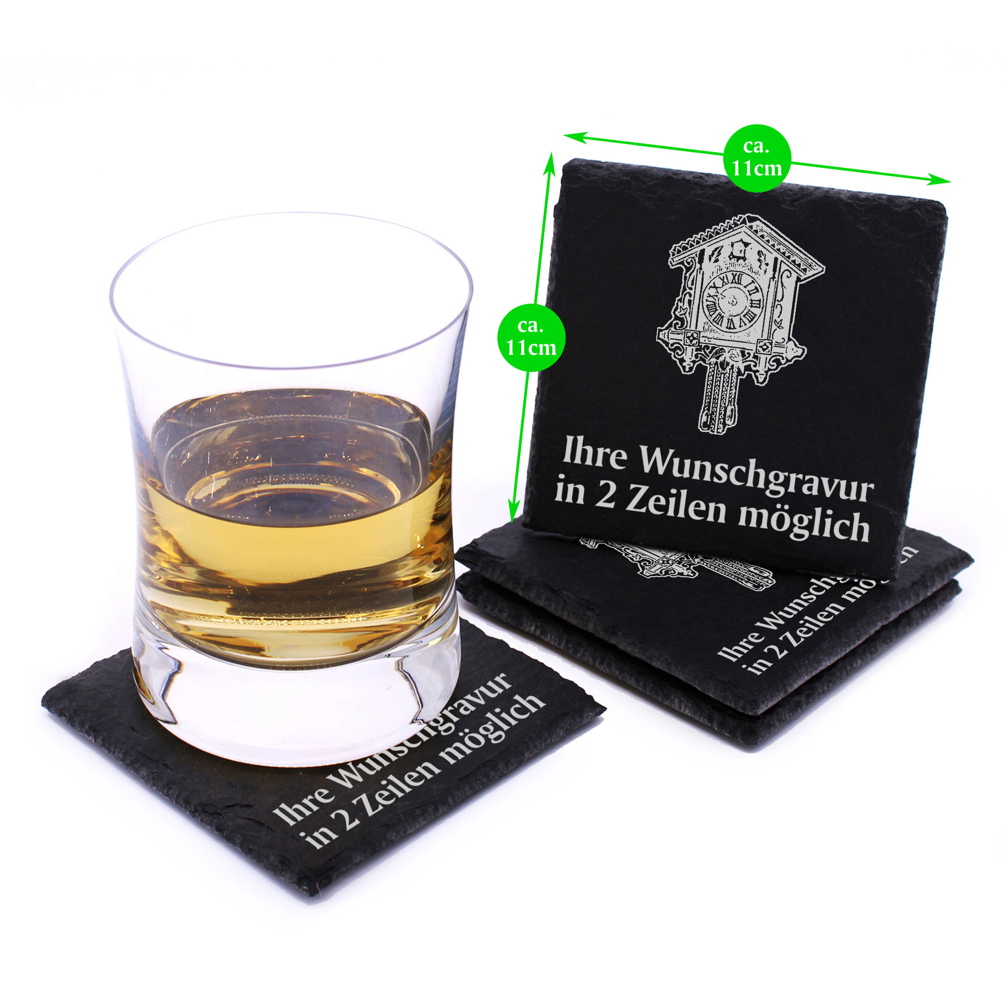4x Kuckucksuhr Deko Schiefer Untersetzer Wunschgravur Set - 11 x 11 cm