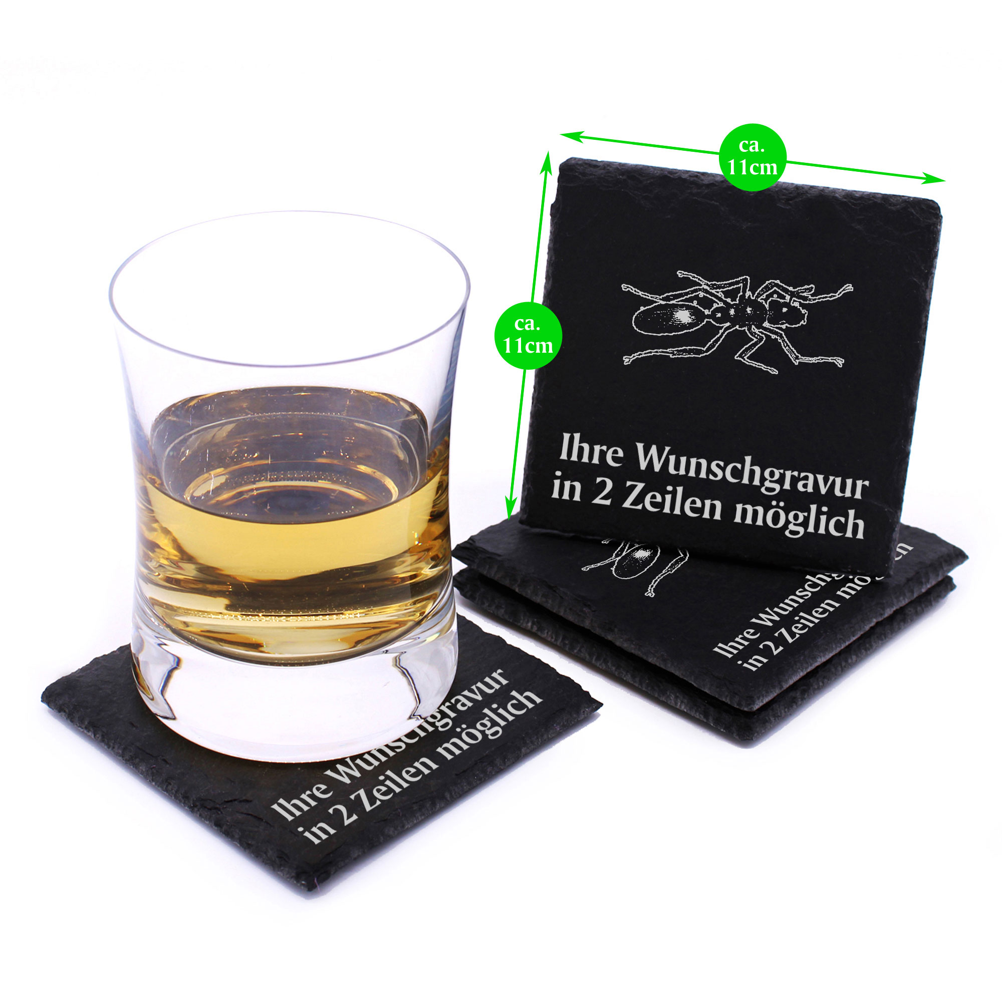 4x dunkle Ameise Deko Schiefer Untersetzer Wunschgravur Set - 11 x 11 cm