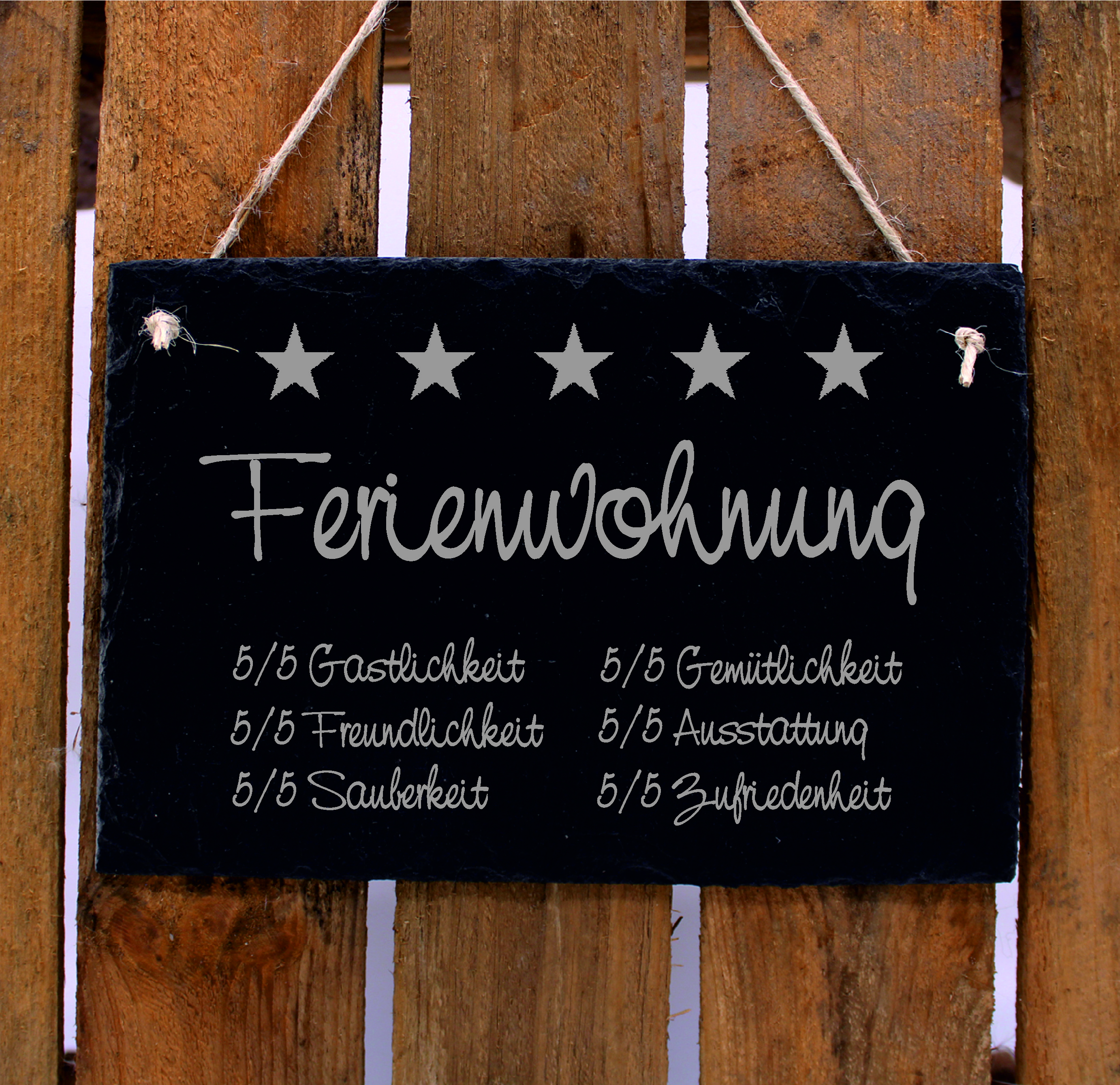 5 Sterne Ferienwohnung Star Rating Bewertung Schild Fewo Gästebewertung Unterkunft Schiefer 22 x 16