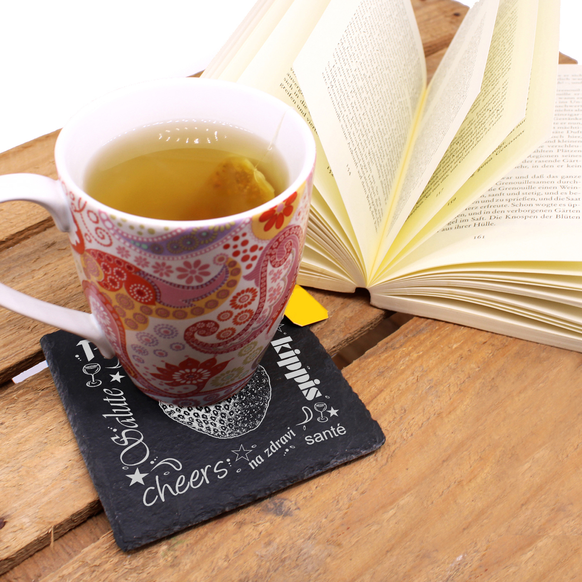 - GEÖLT FÜR LANGE HALTBARKEIT: Die spezielle Ölung der Tassenuntersetzer erhält die natürlich, anthrazit-farbene Oberfläche des Natursteins, schützt vor Abdrücken und erleichtert die Reinigung der Getränkeuntersetzer. Dadurch wirken unsere Coaster grau bzw. schwarz & modern