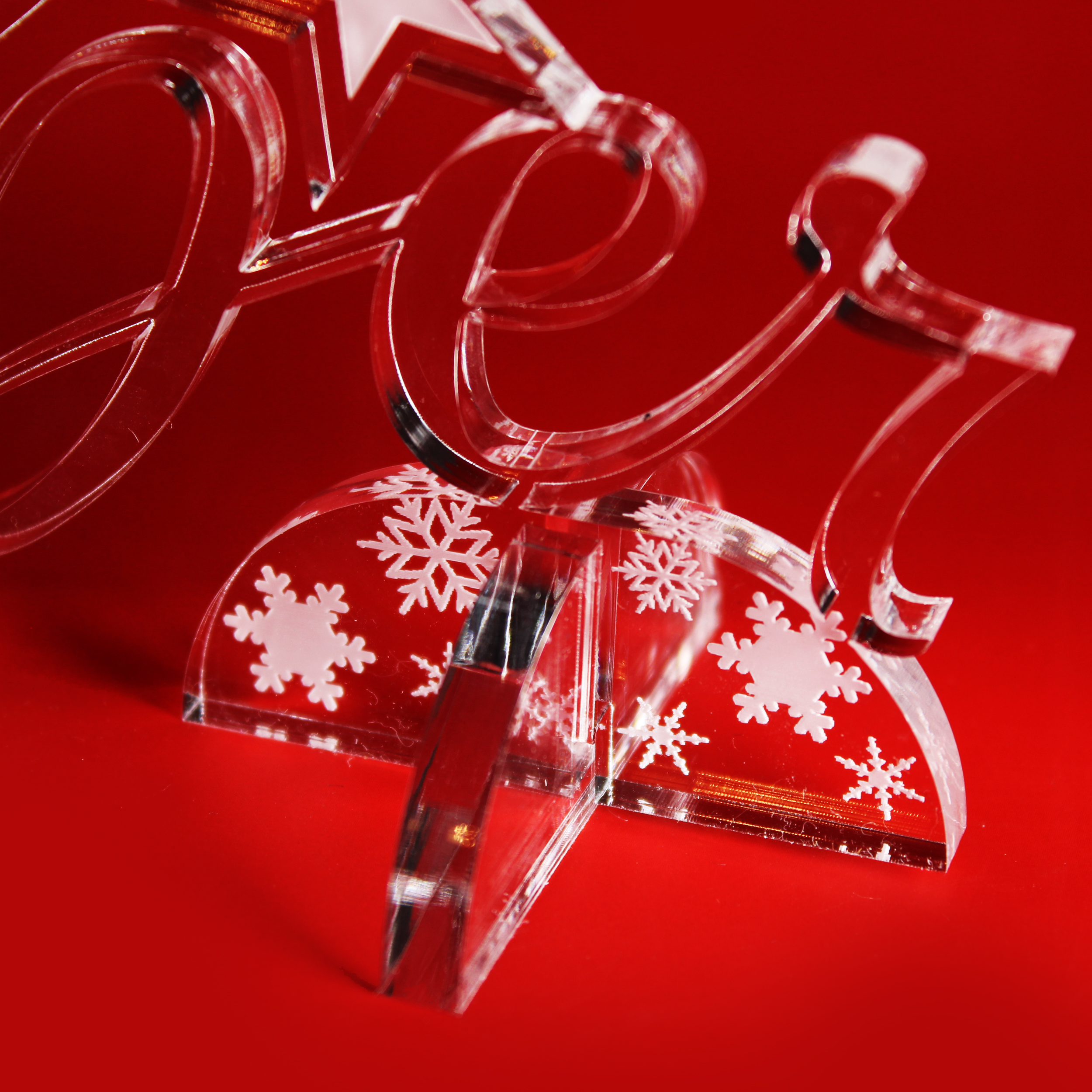 Modernes & skandinavisches Design – Klare Linien, glasklares Acryl und eine minimalistische Form machen diesen Aufsteller zu einer modernen Winterdeko für Tisch, Regal, Fensterbank oder Sideboard.