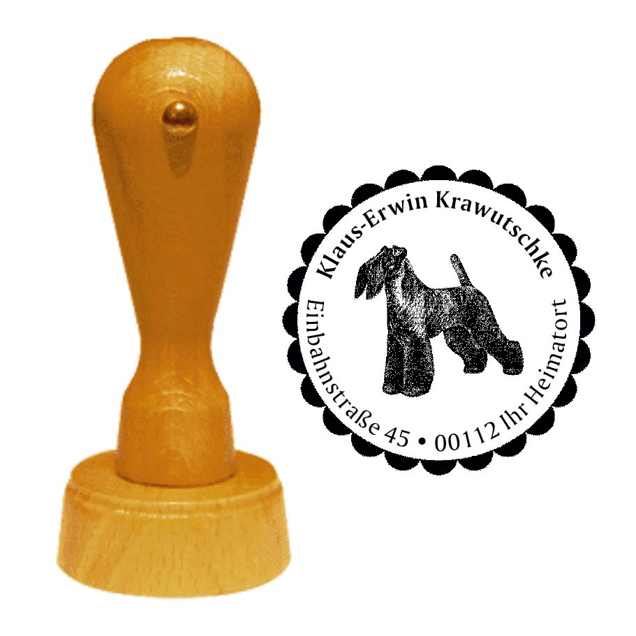 Adressstempel Kerry Blue Terrier - Holzstempel personalisiert mit Adresse - Ø 40 mm
