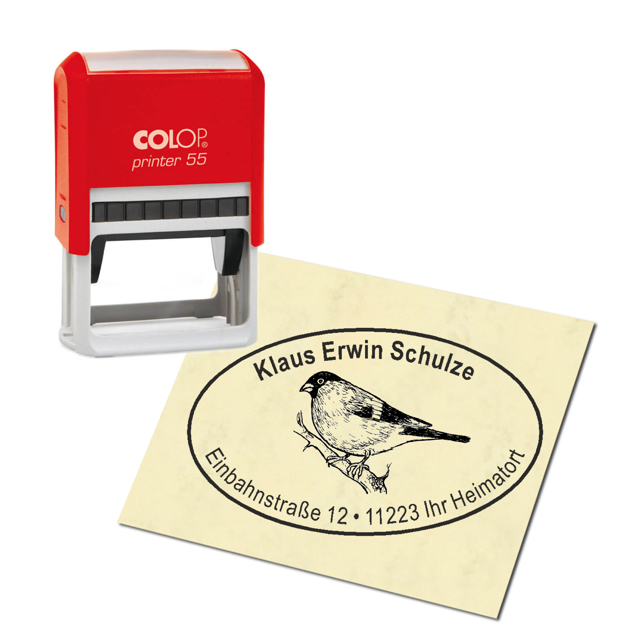 Adressstempel personalisiert Stempel - Dompfaff Gimpel - oval 59 x 39 mm