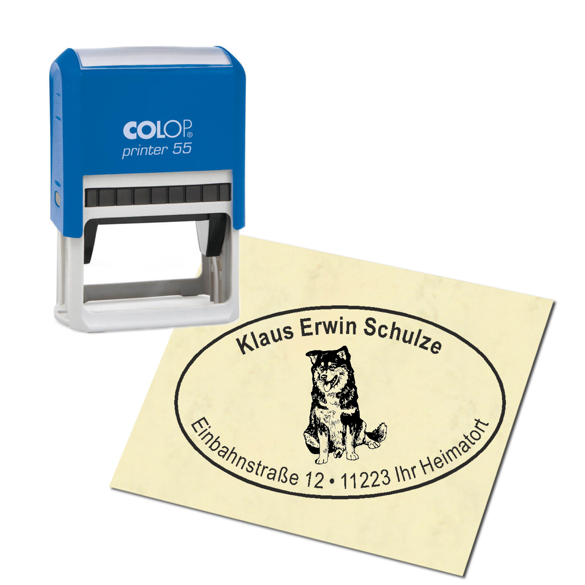 Produktinformationen "Adressstempel personalisiert Stempel - Finnischer Lapphund - oval 59 x 39 mm"