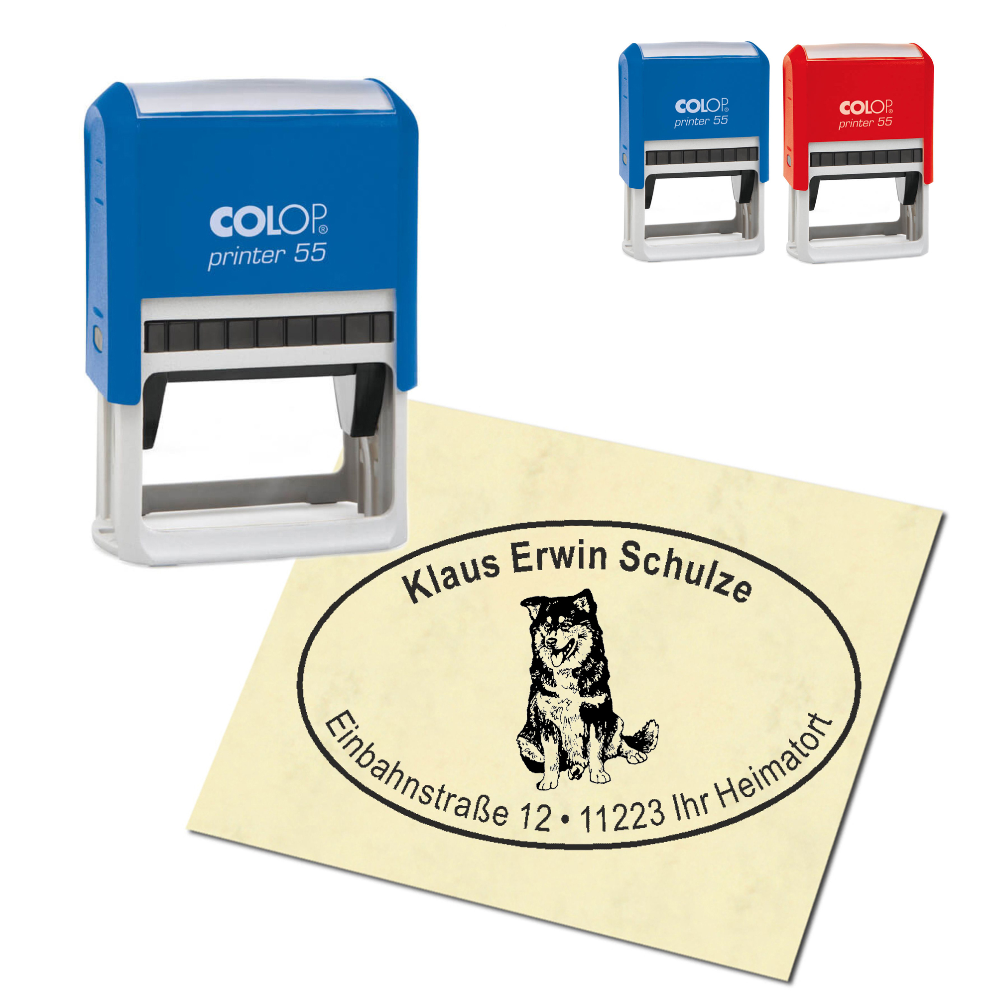 Adressstempel personalisiert Stempel - Finnischer Lapphund - oval 59 x 39 mm