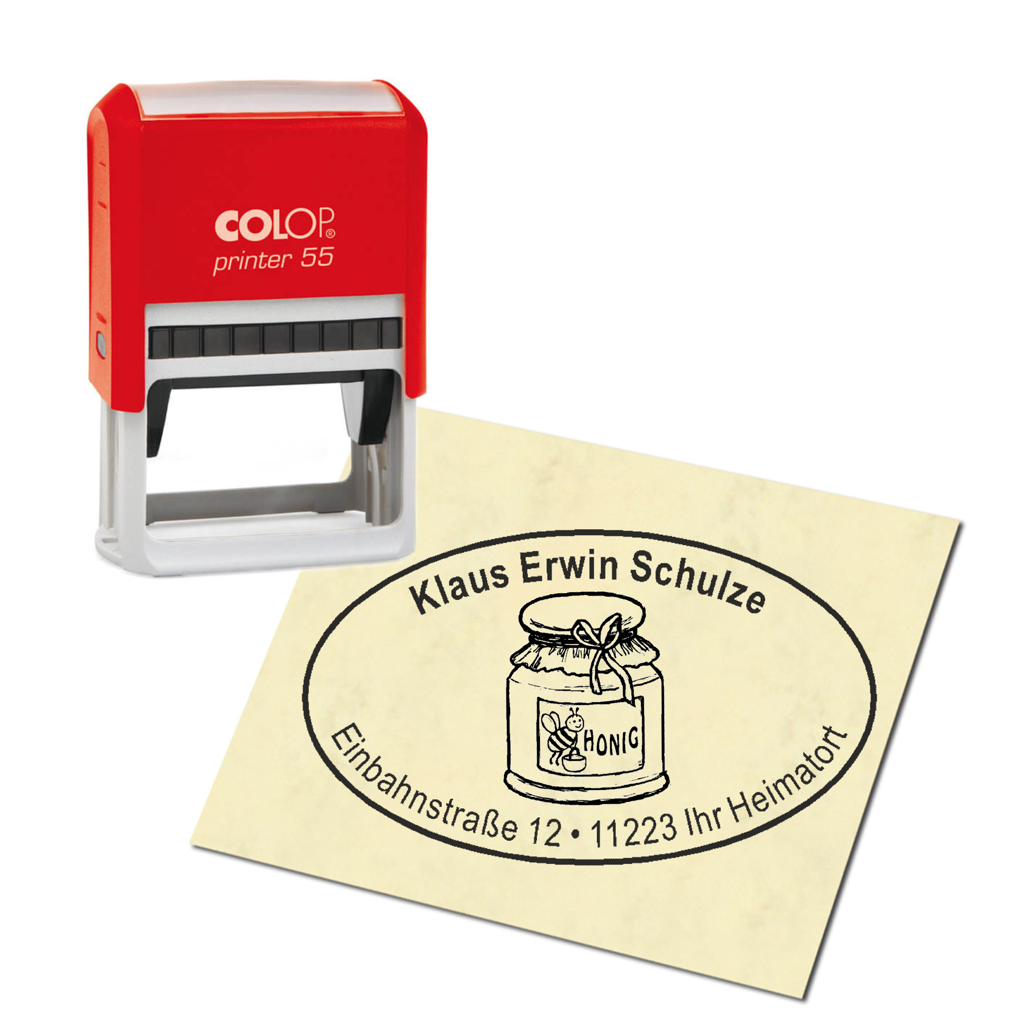 Adressstempel personalisiert Stempel - Honigglas - oval 59 x 39 mm