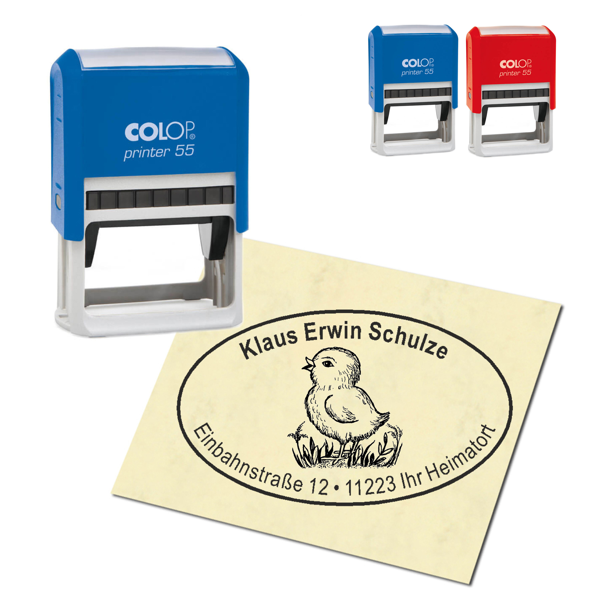 Adressstempel personalisiert Stempel - Küken - oval 59 x 39 mm