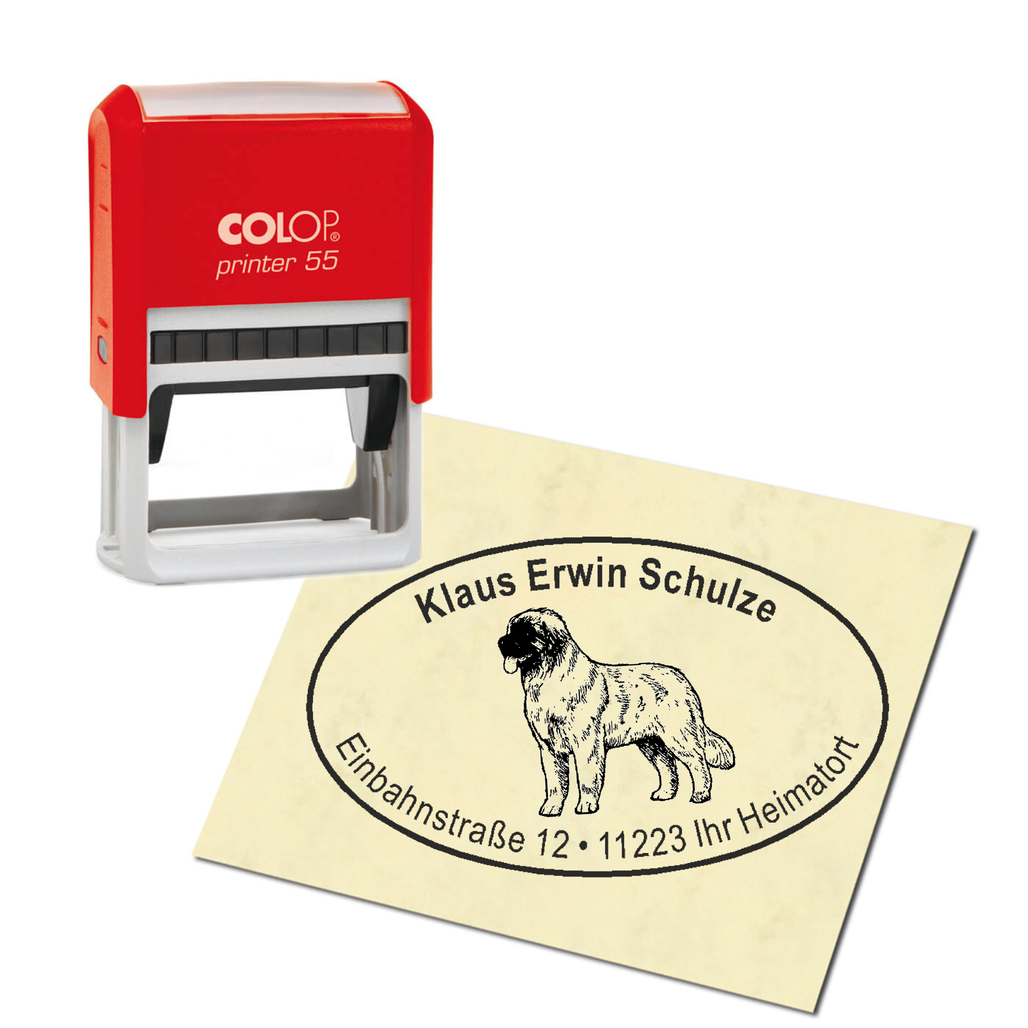 Adressstempel personalisiert Stempel - Leonberger - oval 59 x 39 mm