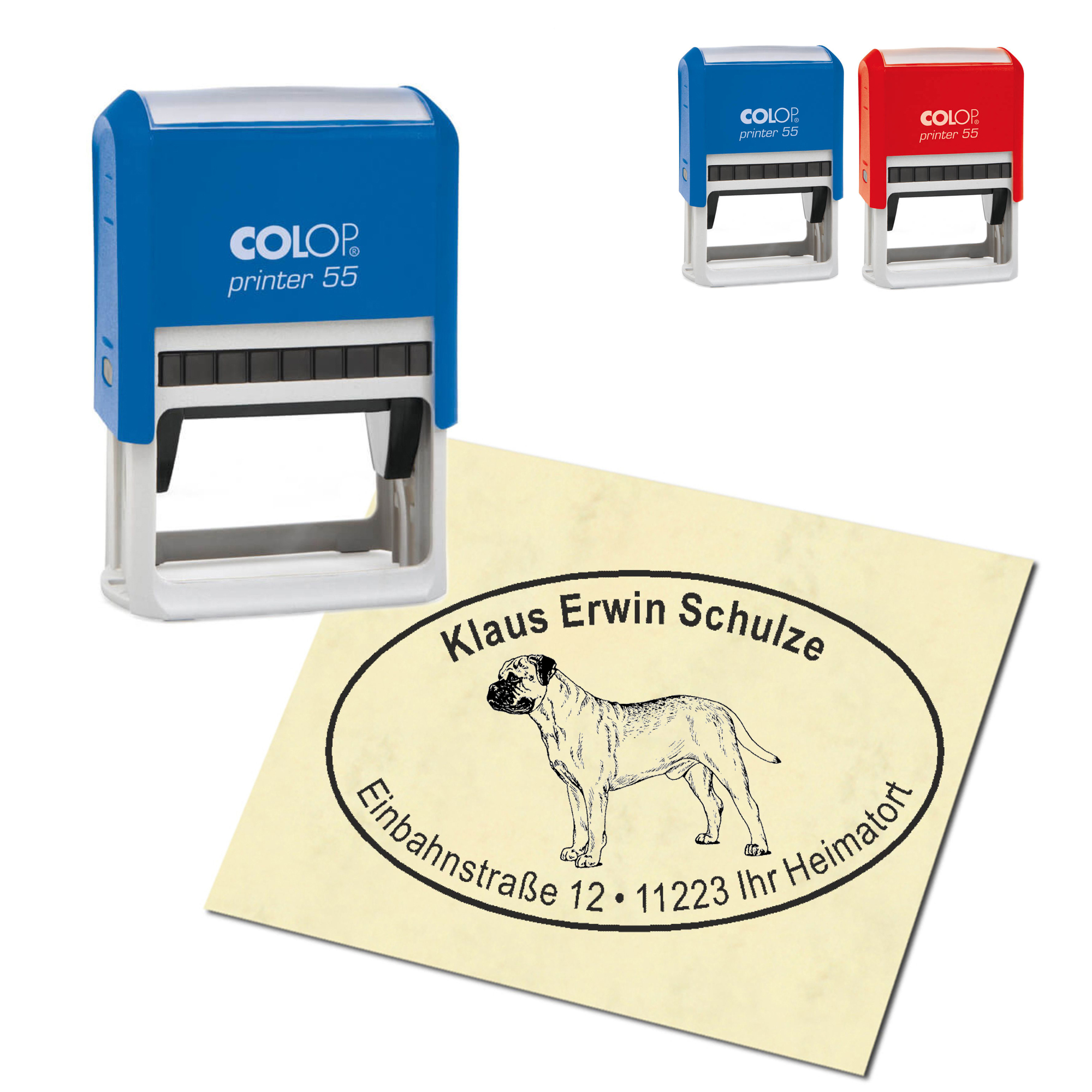 Adressstempel personalisiert Stempel - Old English Mastiff - oval 59 x 39 mm