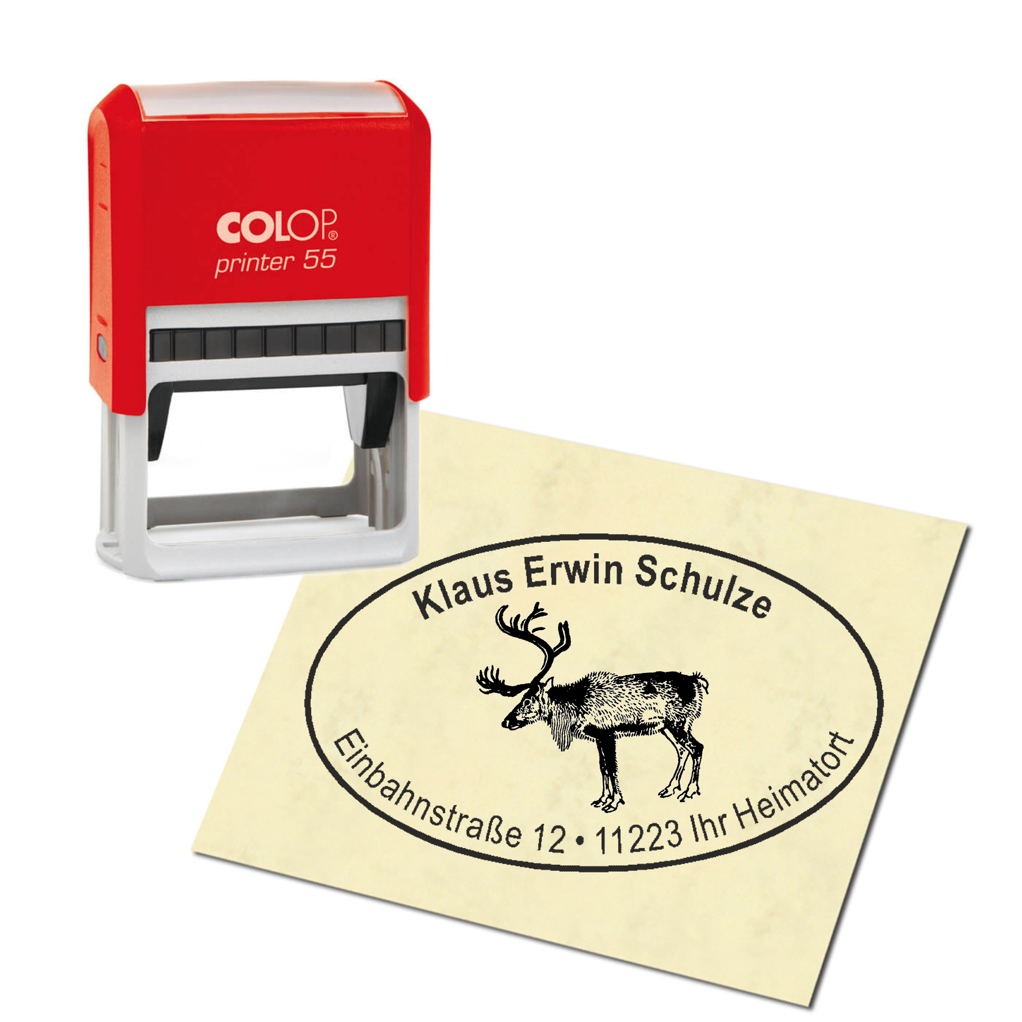 Adressstempel personalisiert Stempel - Rentier - oval 59 x 39 mm