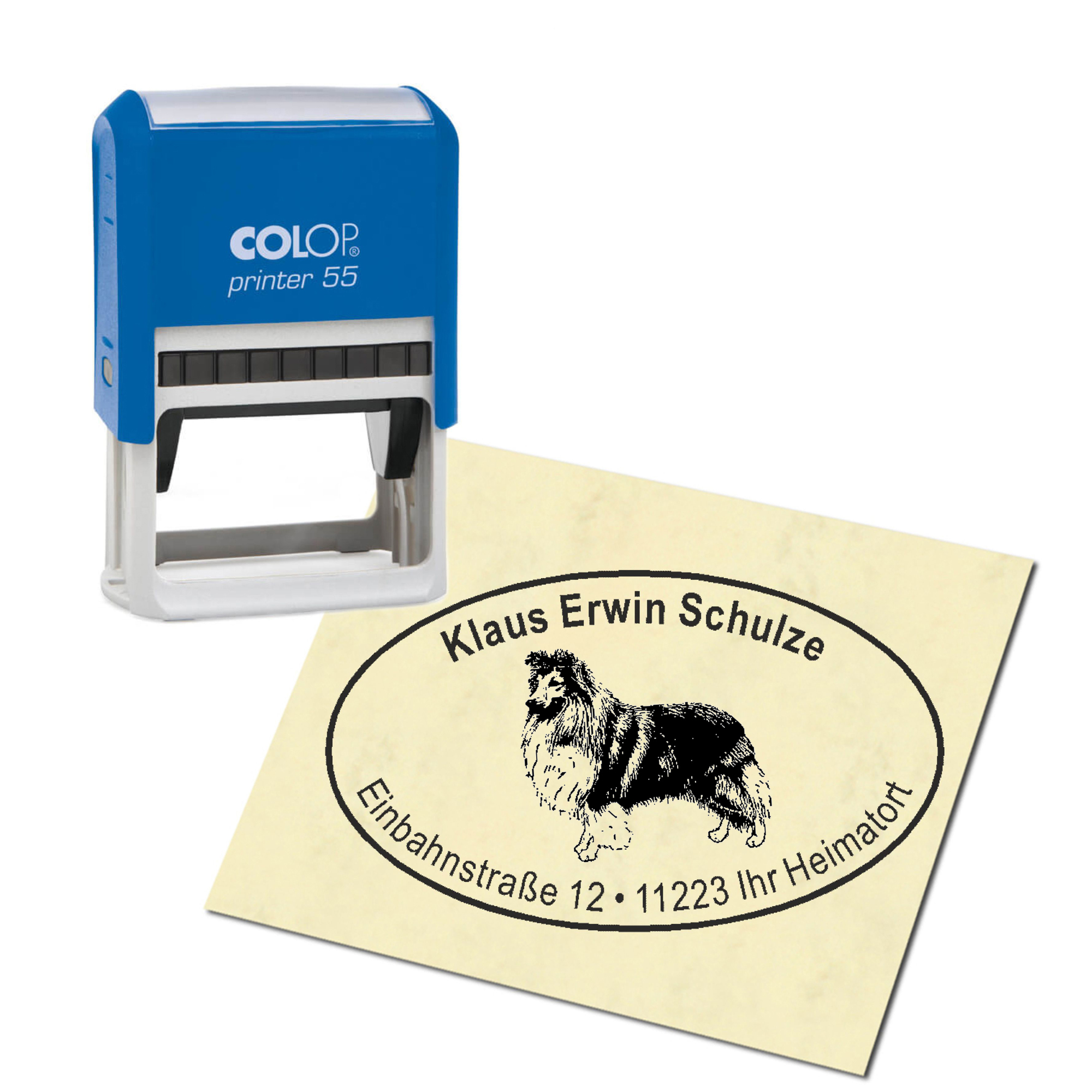 Adressstempel personalisiert Stempel - Shetland Sheepdog Sheltie - oval 59 x 39 mm
