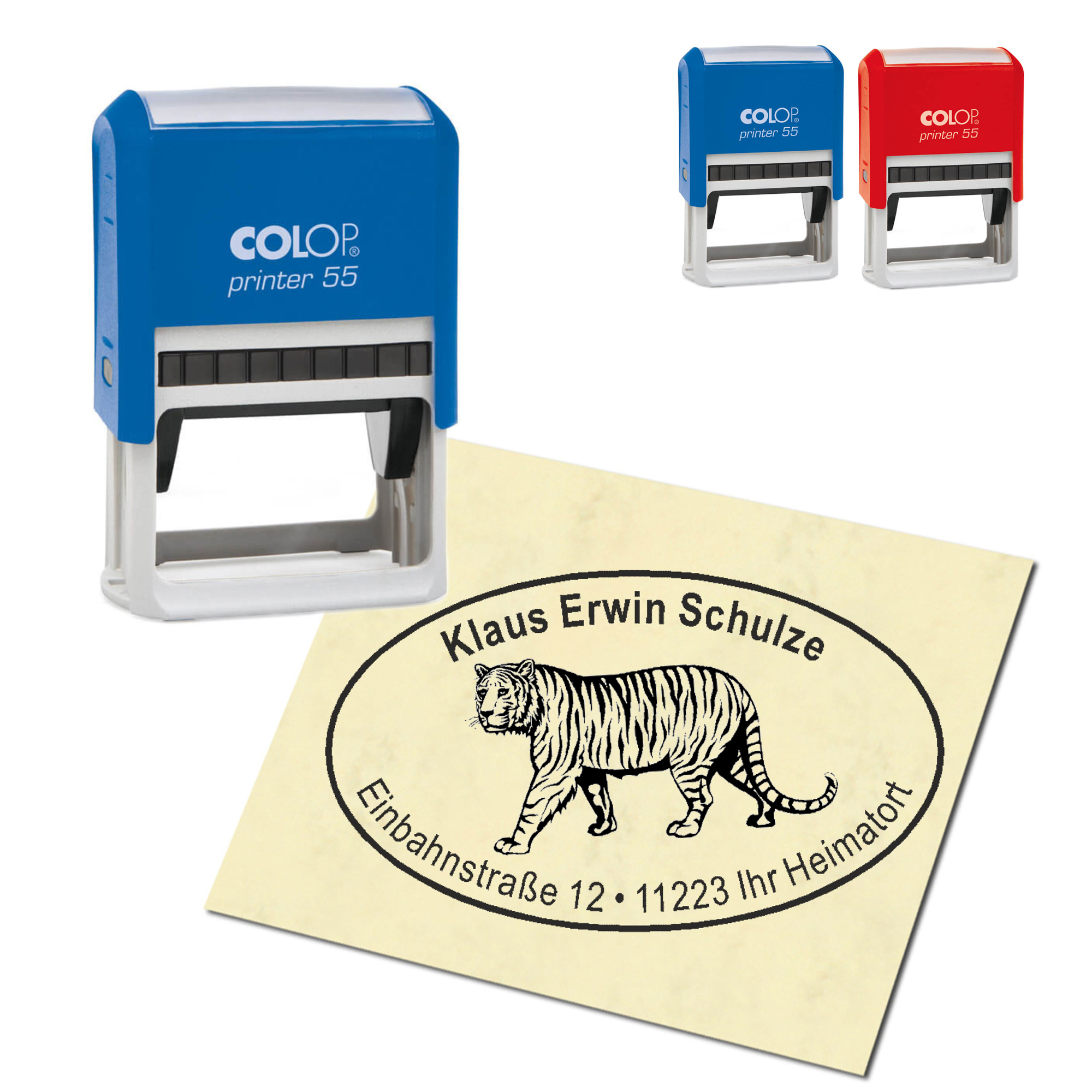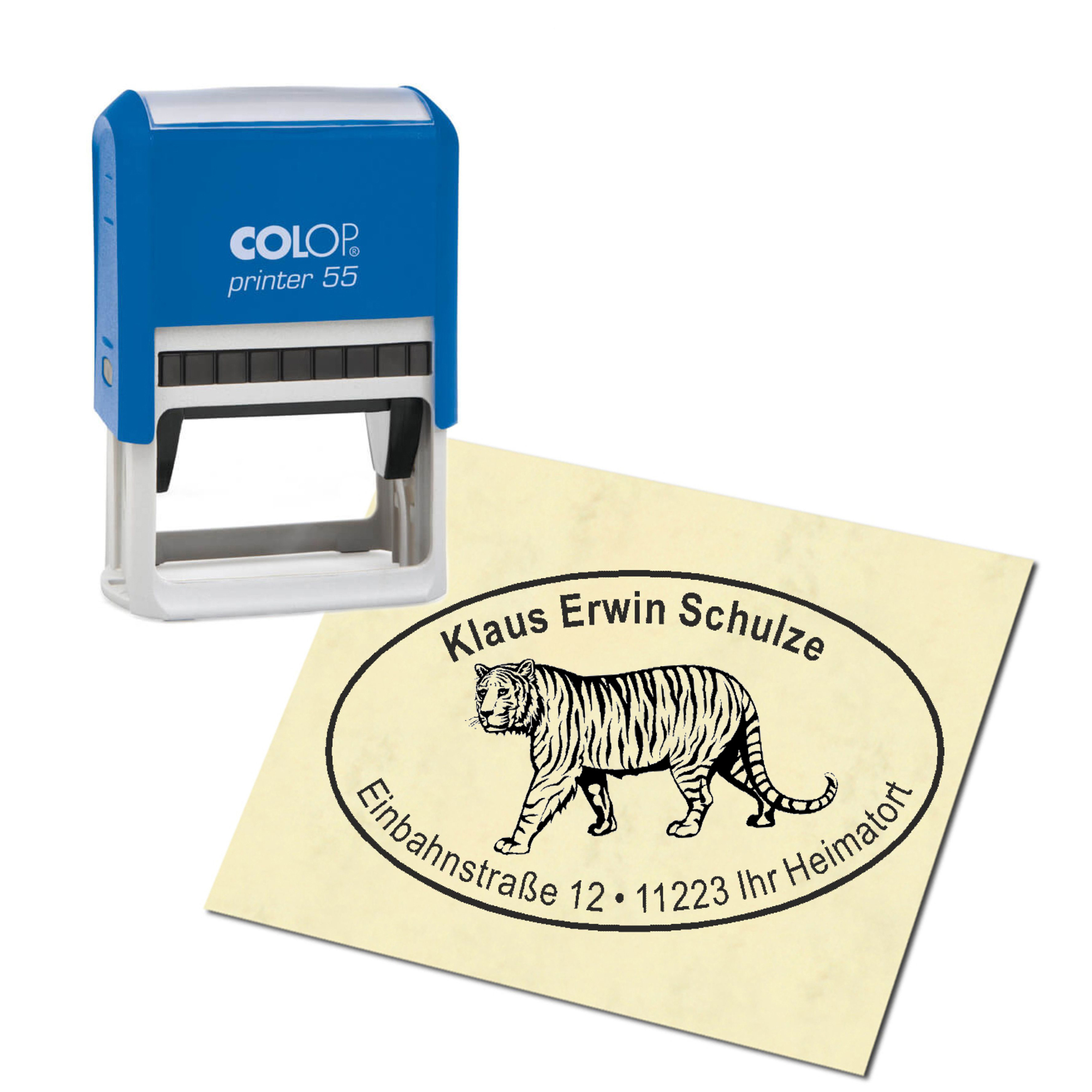Adressstempel personalisiert Stempel - Tiger - oval 59 x 39 mm