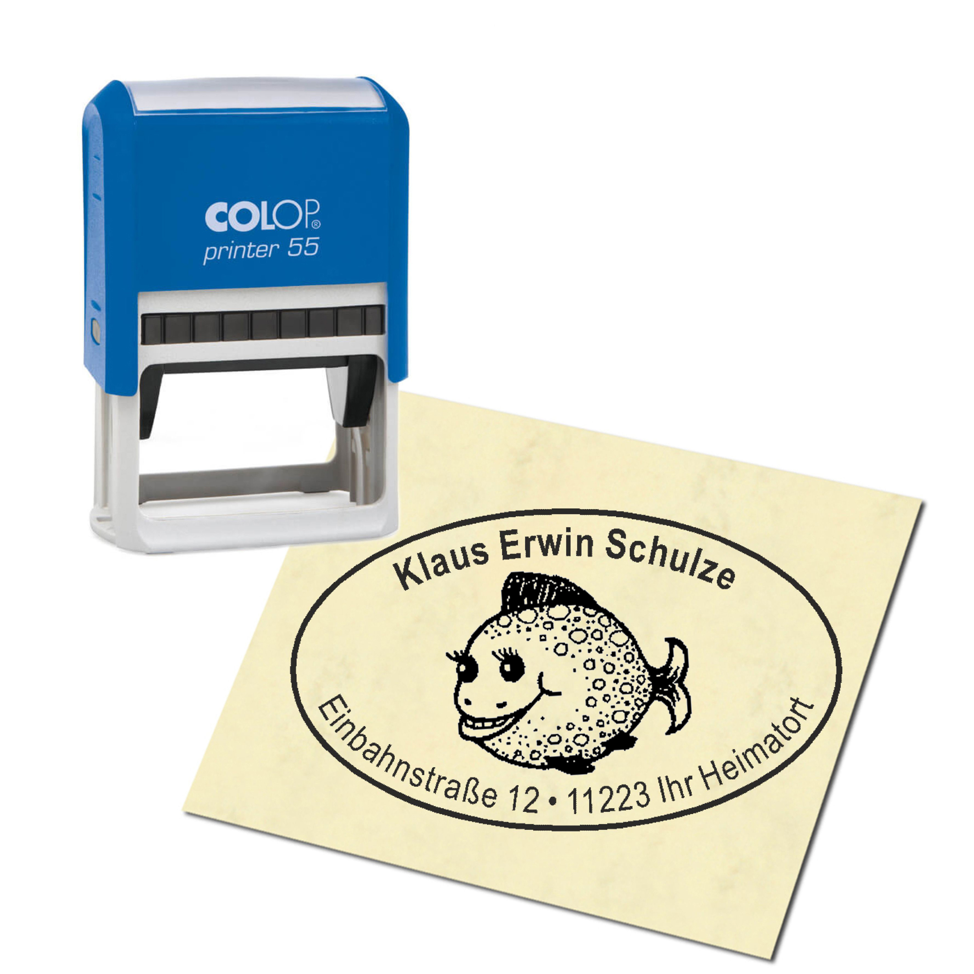 Adressstempel personalisiert Stempel - niedlicher Kugelfisch - oval 59 x 39 mm