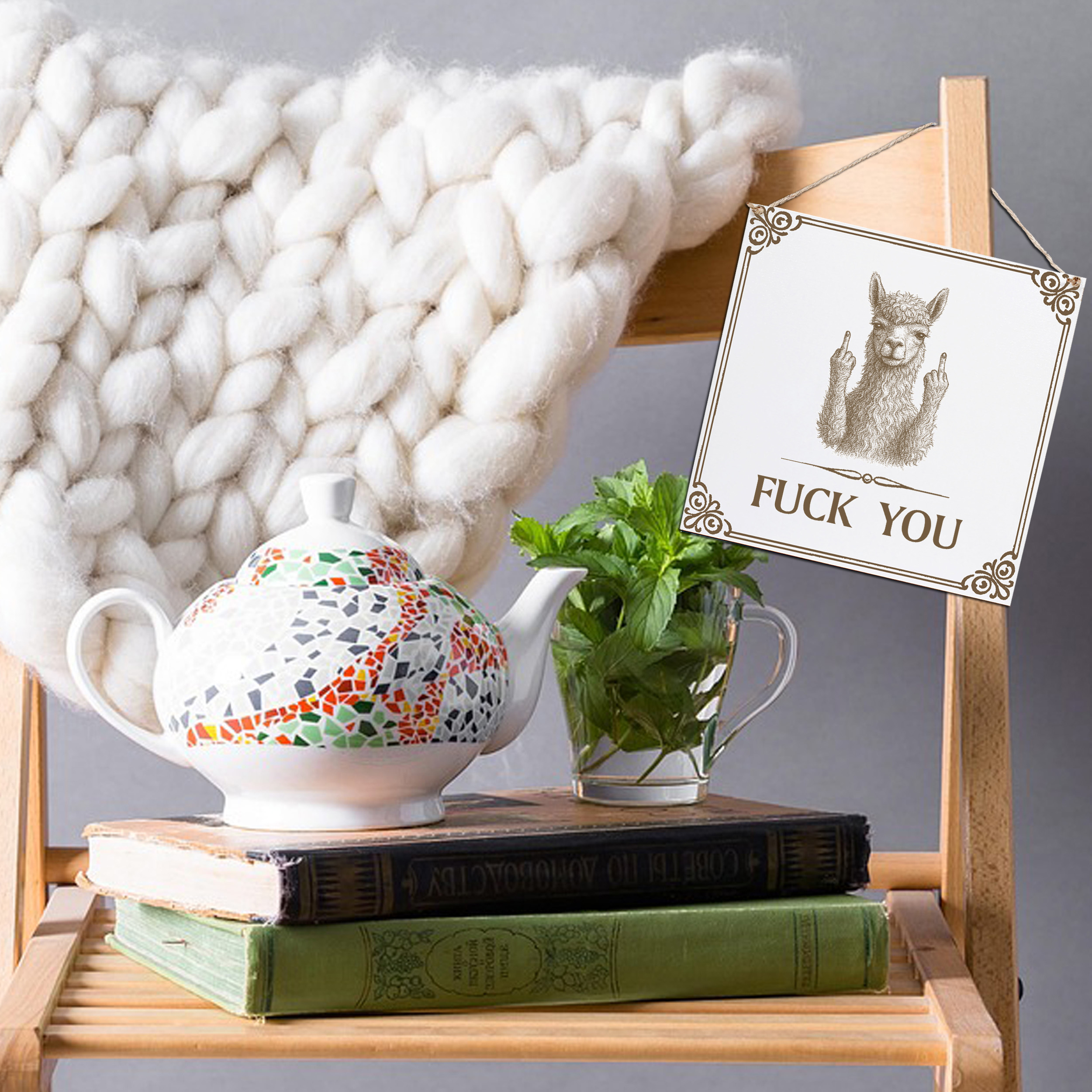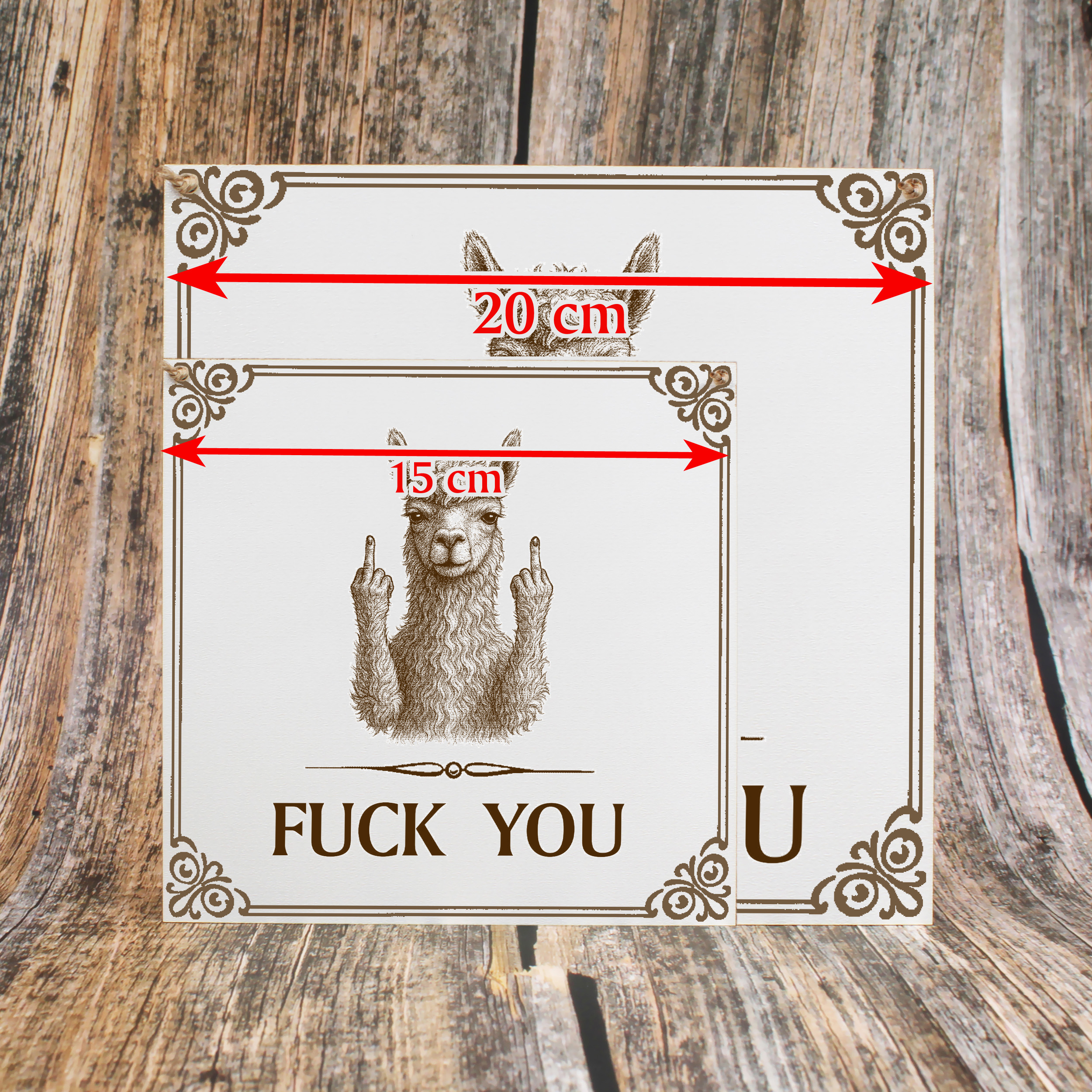 Alpaka Wandschild „Fuck You“ – Weißes HDF-Dekoschild 15×15 cm (auch 20×20 cm)