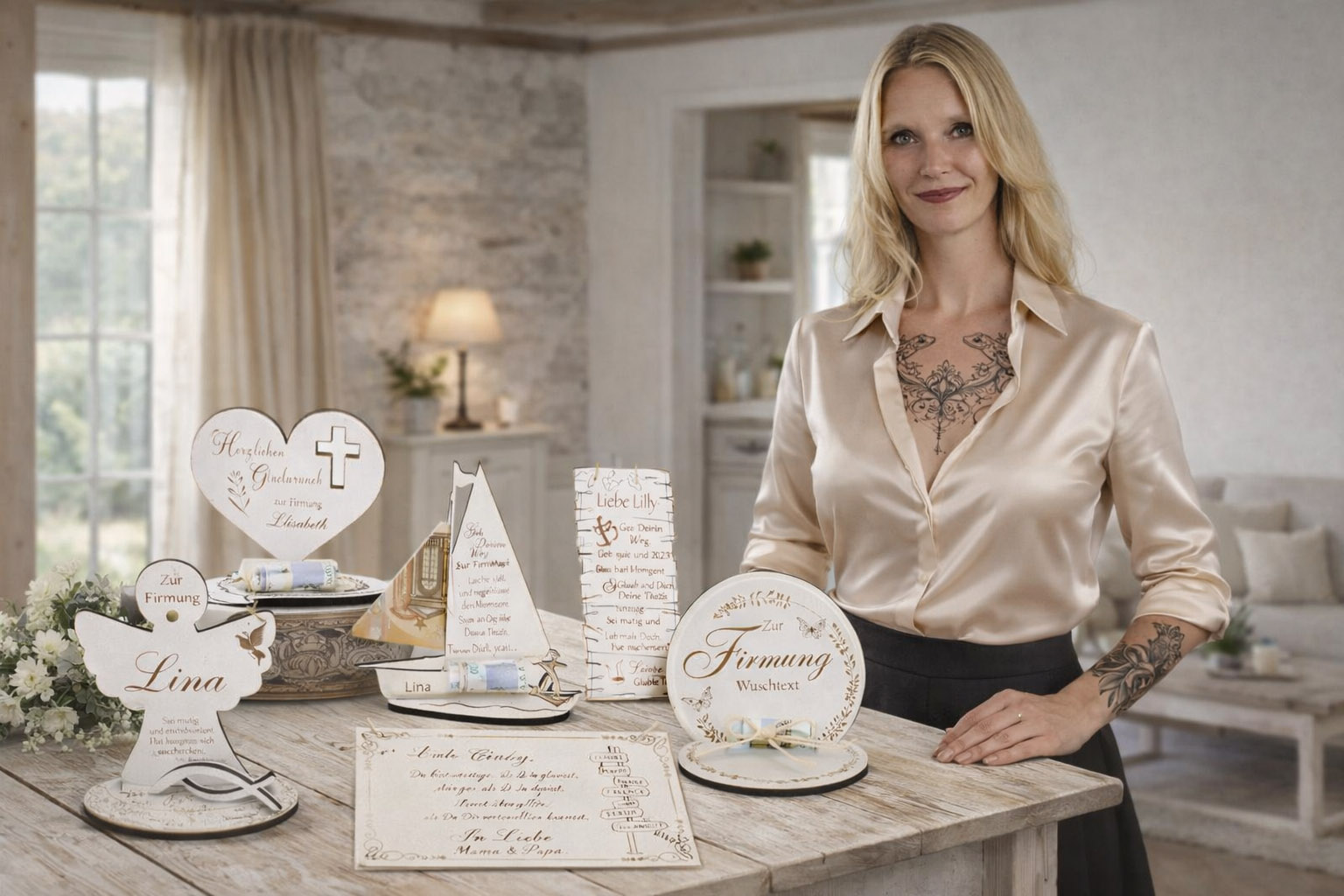 Das Geschenk besticht durch seine hochwertige Verarbeitung und die detailreiche Gestaltung. Feine Gravuren, christliche Symbole wie Kreuz oder Engel sowie einfühlsame Segenswünsche machen jedes Stück zu etwas ganz Besonderem. Die harmonische Kombination aus natürlicher Optik und zeitloser Eleganz passt perfekt zu einer feierlichen Firmung und fügt sich stilvoll in jedes Zuhause ein.