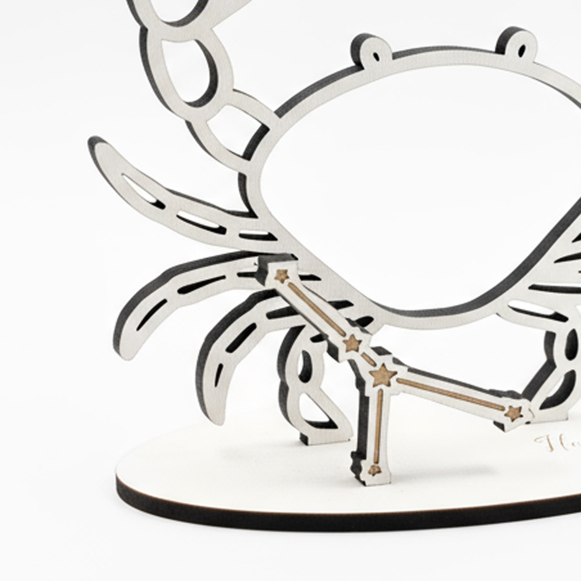 • Sternzeichen Krebs Aufsteller – Filigraner Dekoaufsteller aus weißem HDF mit feiner Gravur des Sternbildes und moderner Figur – ideale Geschenkidee für Astrologie-Fans und Geburtstagskinder.