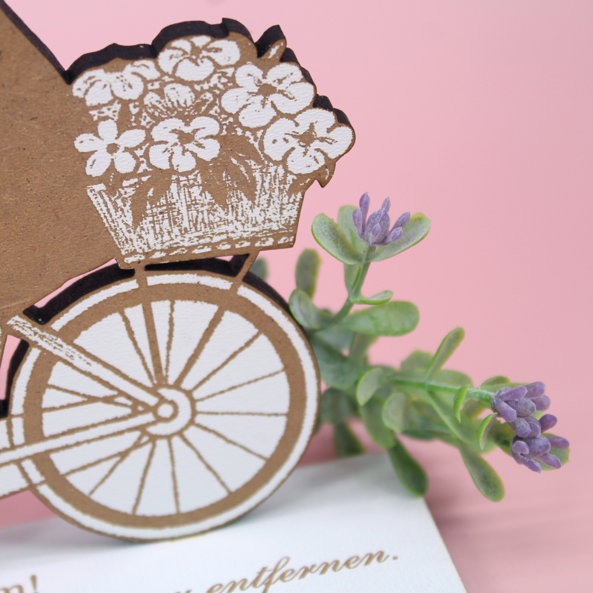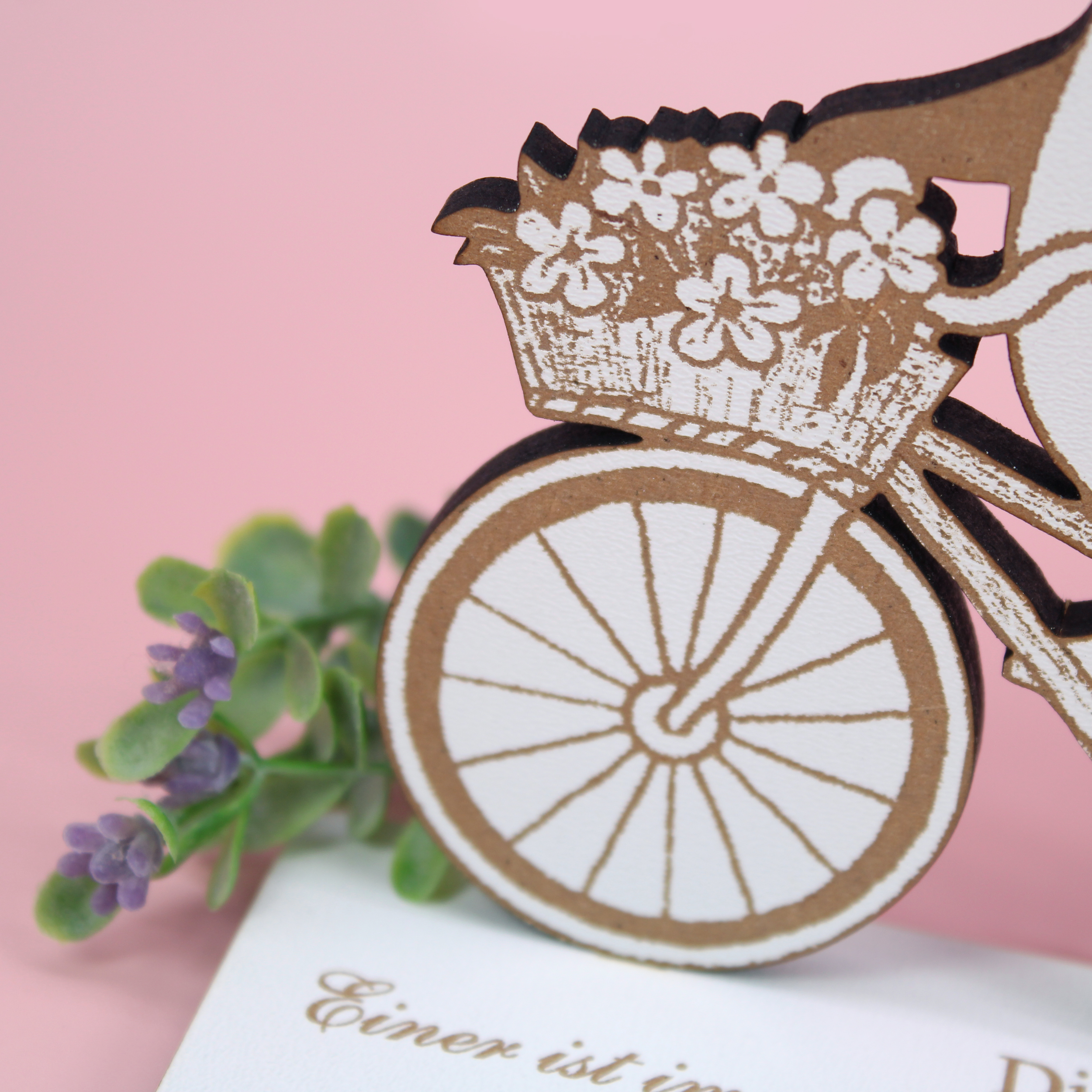 Der romantische Spruch „Die Ehe ist wie ein Tandem – einer ist immer vorn, ohne sich von dem Anderen zu entfernen“ verleiht diesem Aufsteller eine besondere Bedeutung.