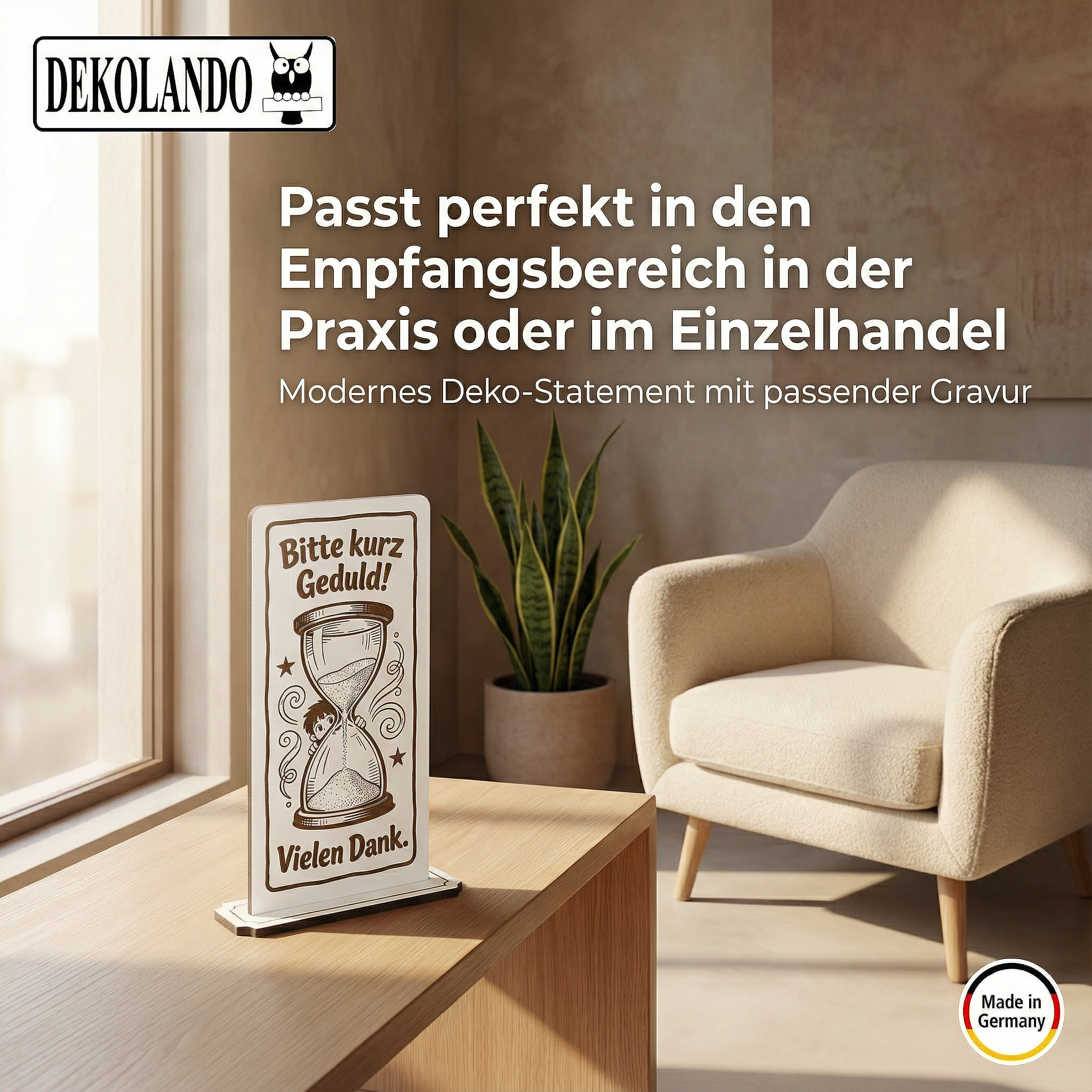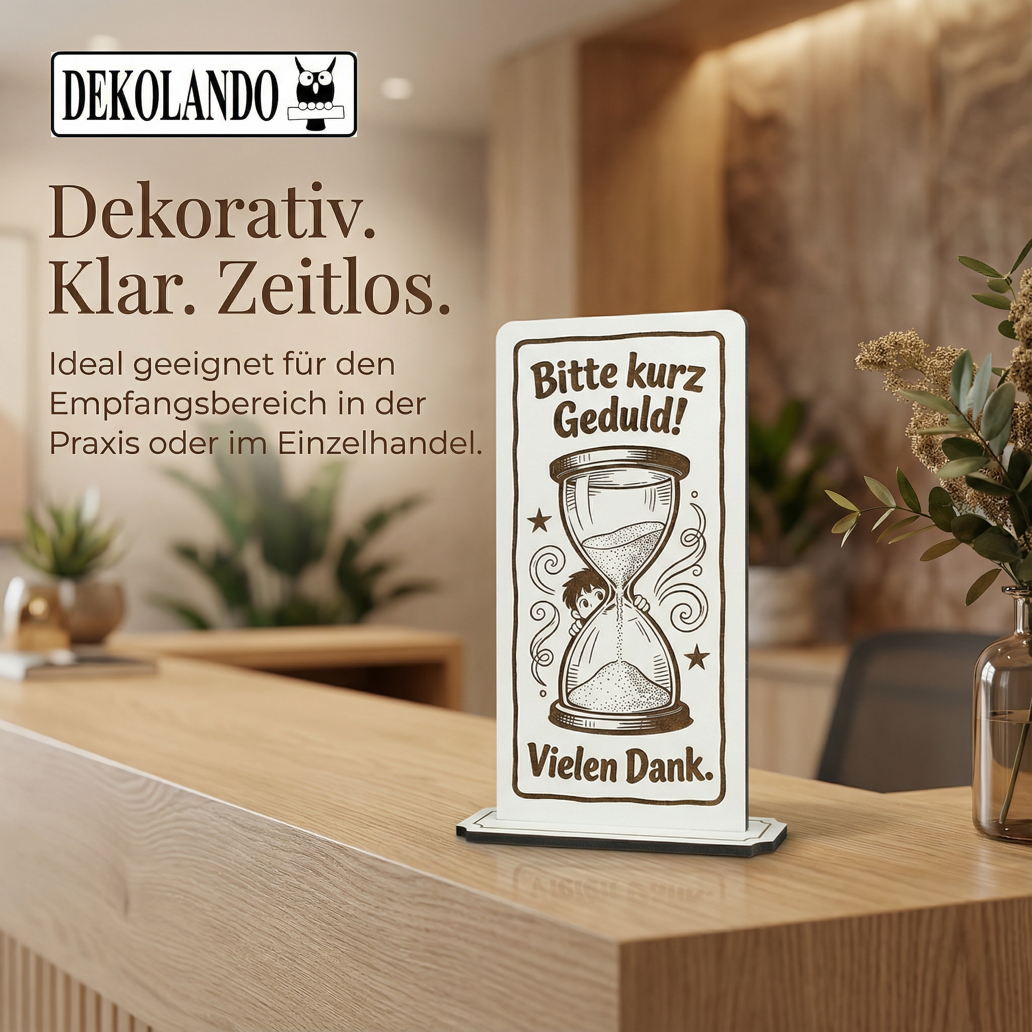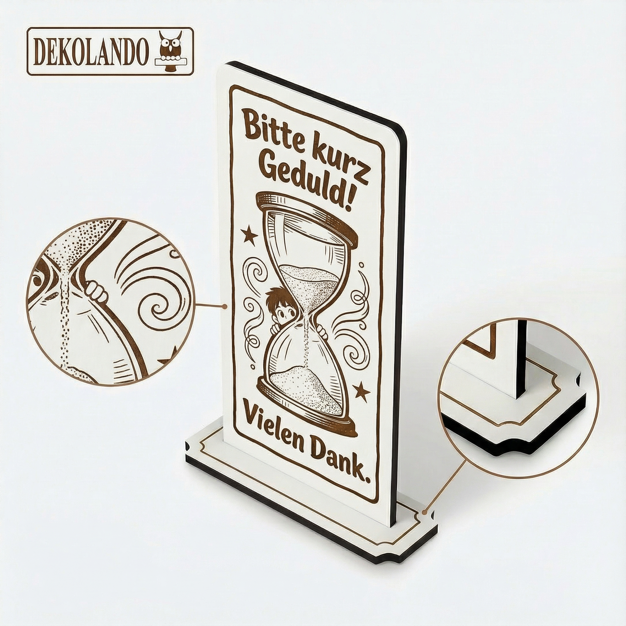 - MOTIV KURZ GEDULD: Aufsteller Schild mit Gravur „Bitte kurz Geduld“ – praktischer Hinweis an Kasse, Servicepoint, Theke oder im Wartebereich.