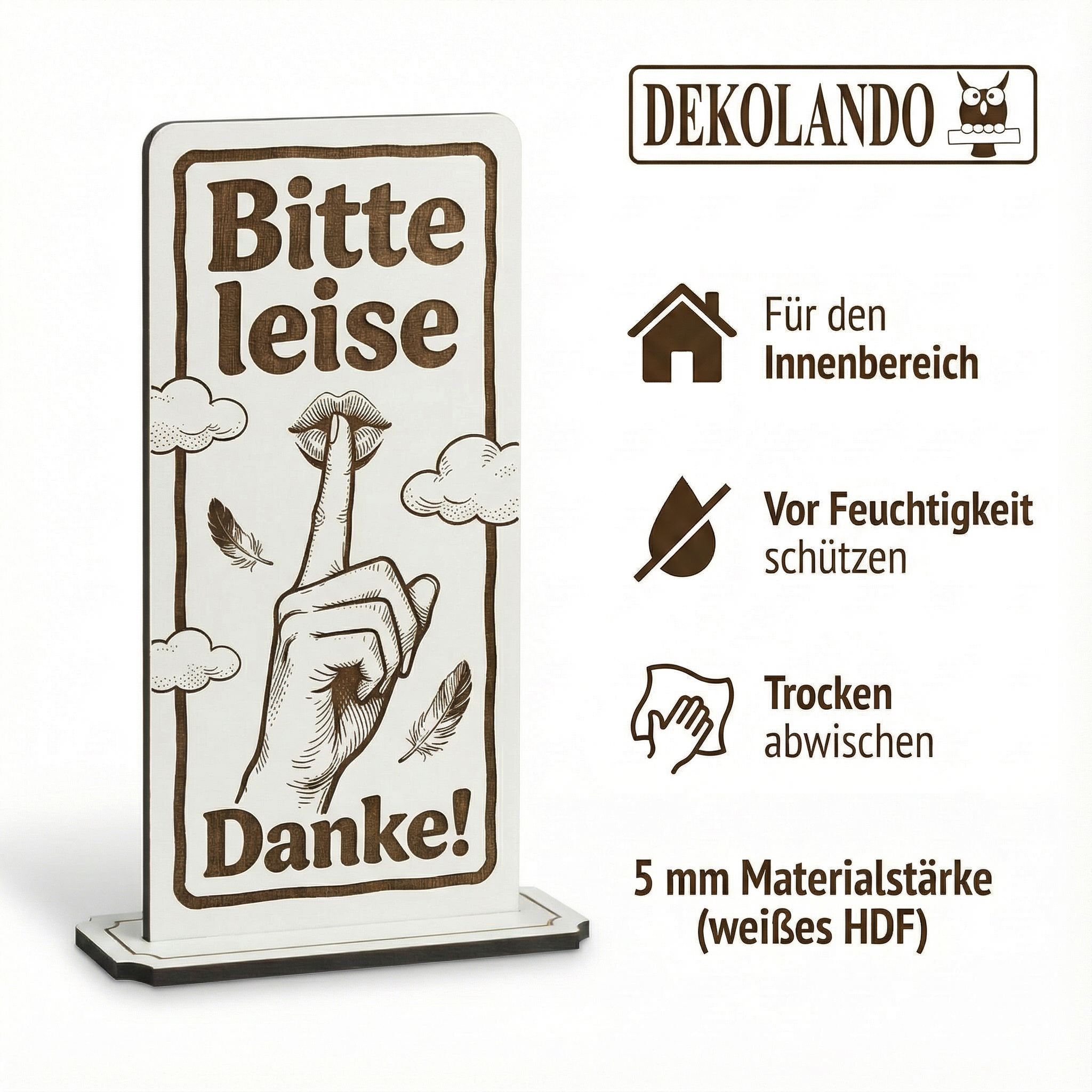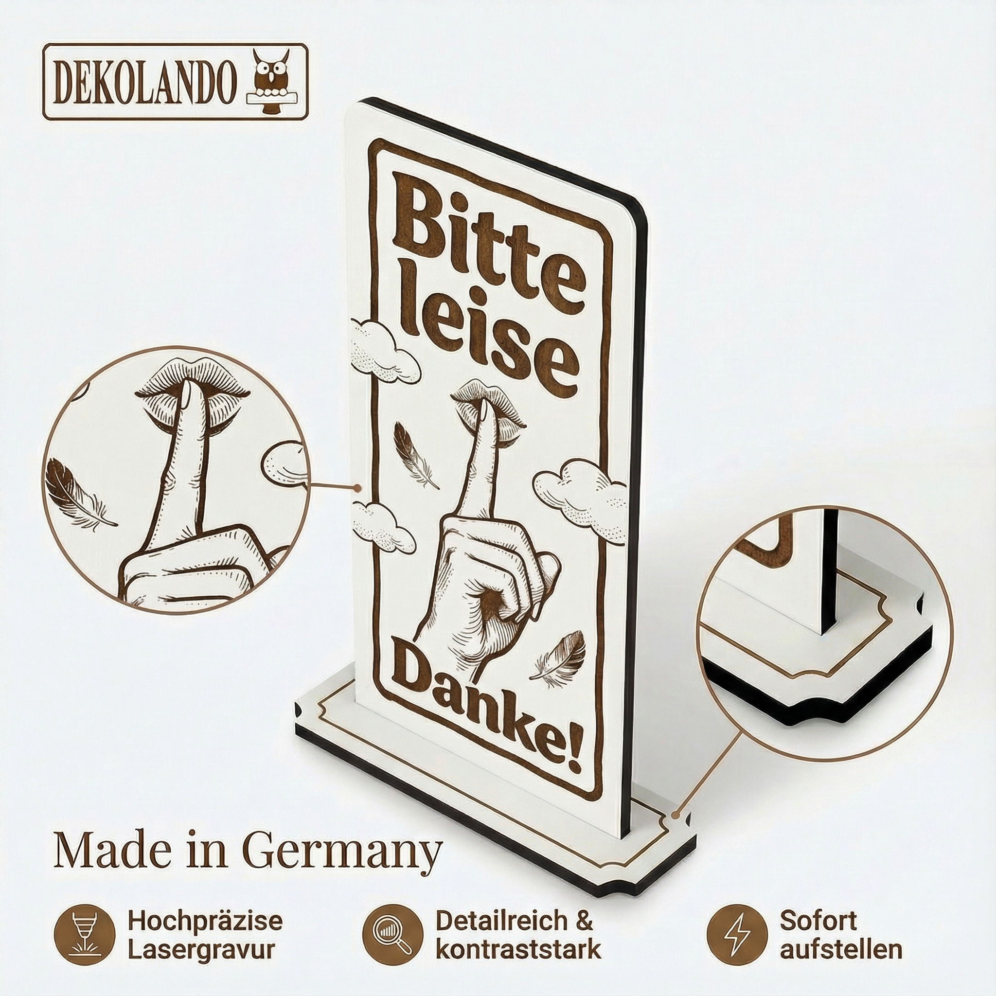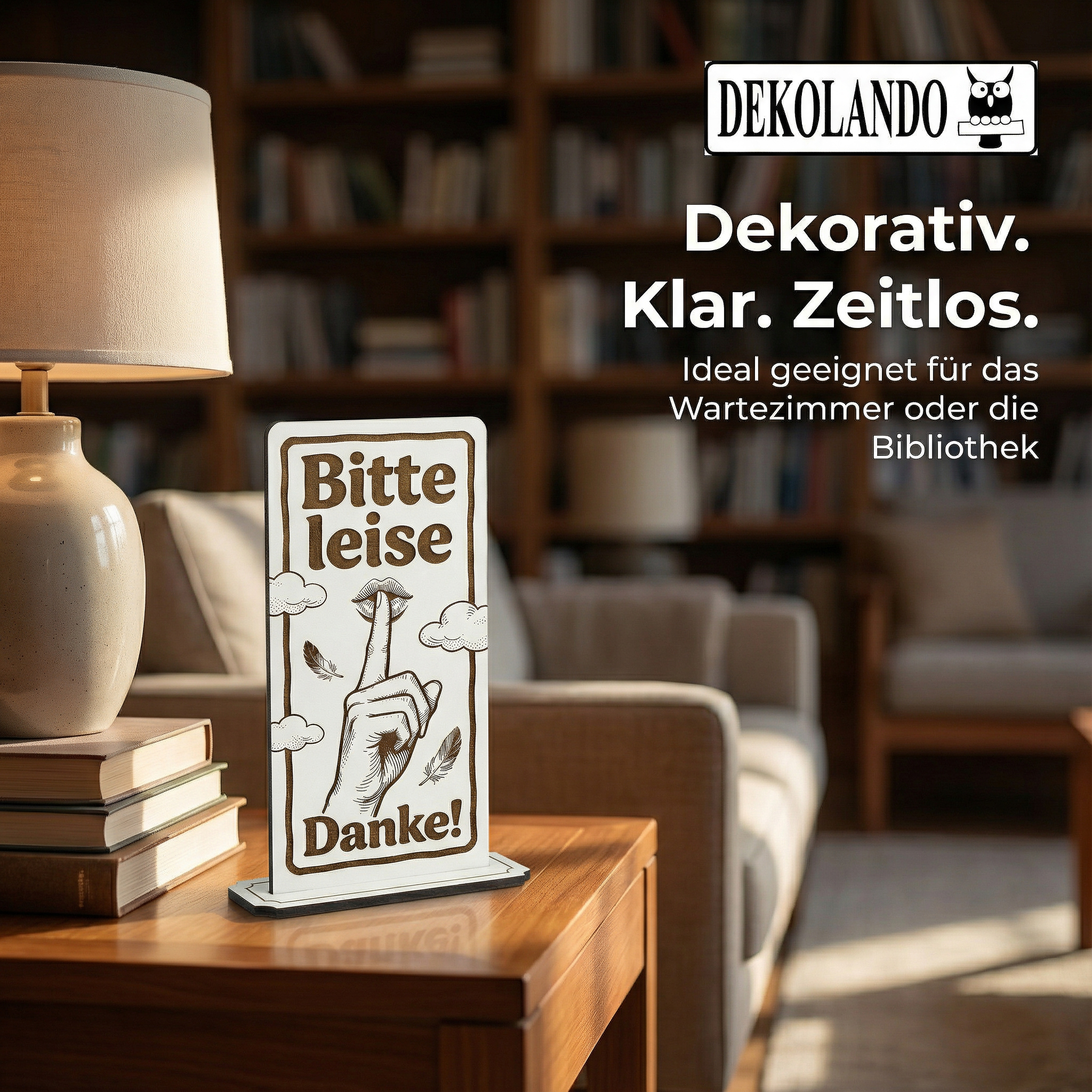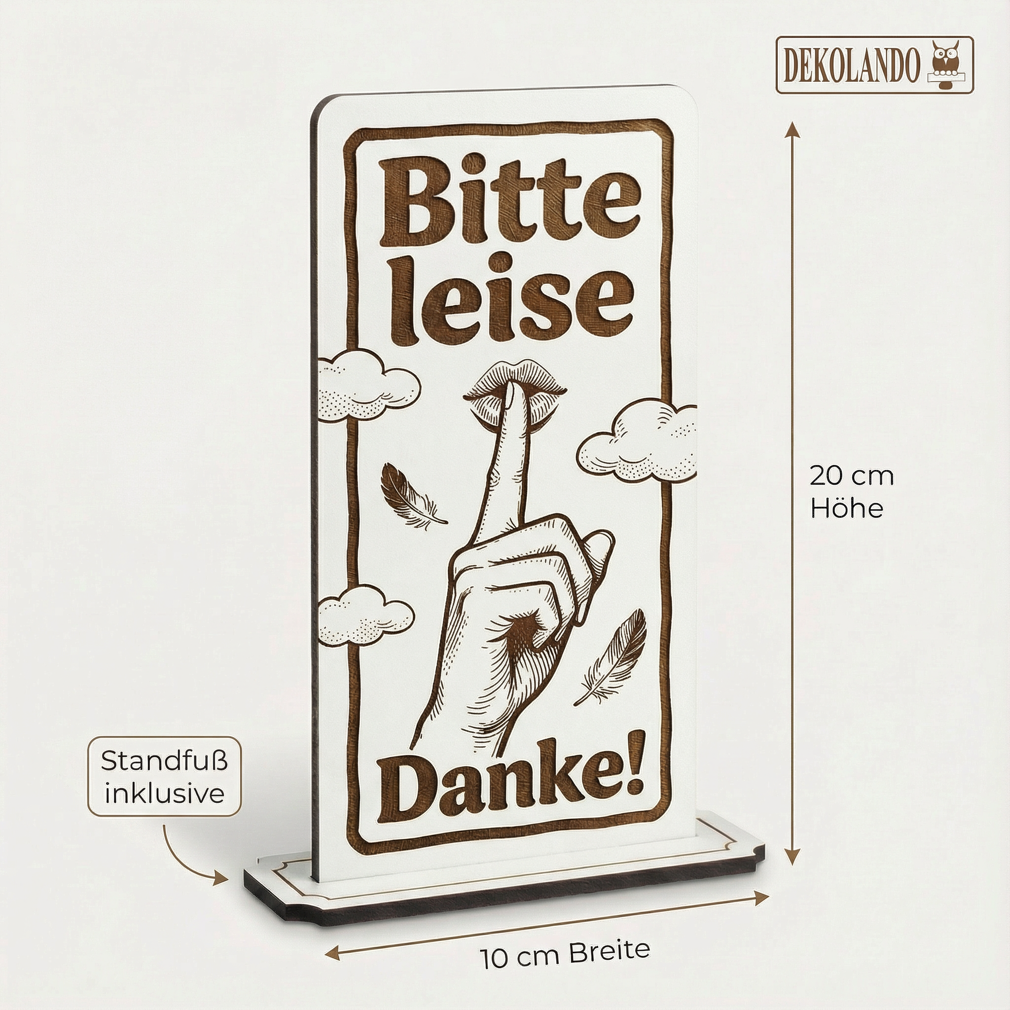 - MOTIV BITTE LEISE: Aufsteller Schild mit Gravur „Bitte leise, danke“ – perfekt für Praxis, Wartezimmer, Empfang oder ruhige Bereiche.
