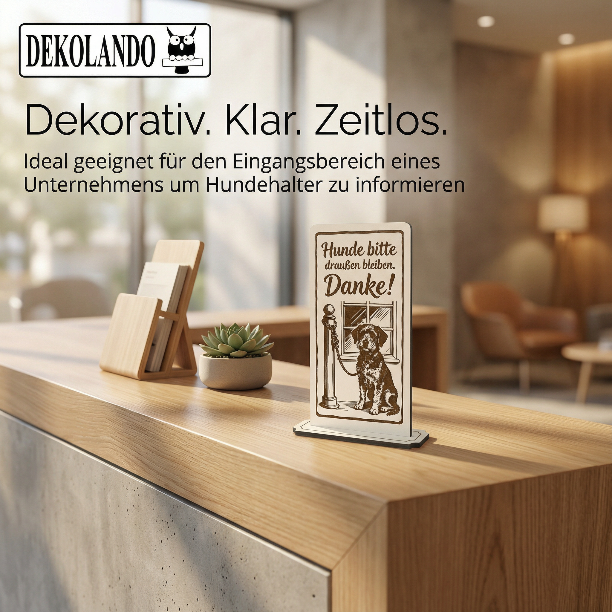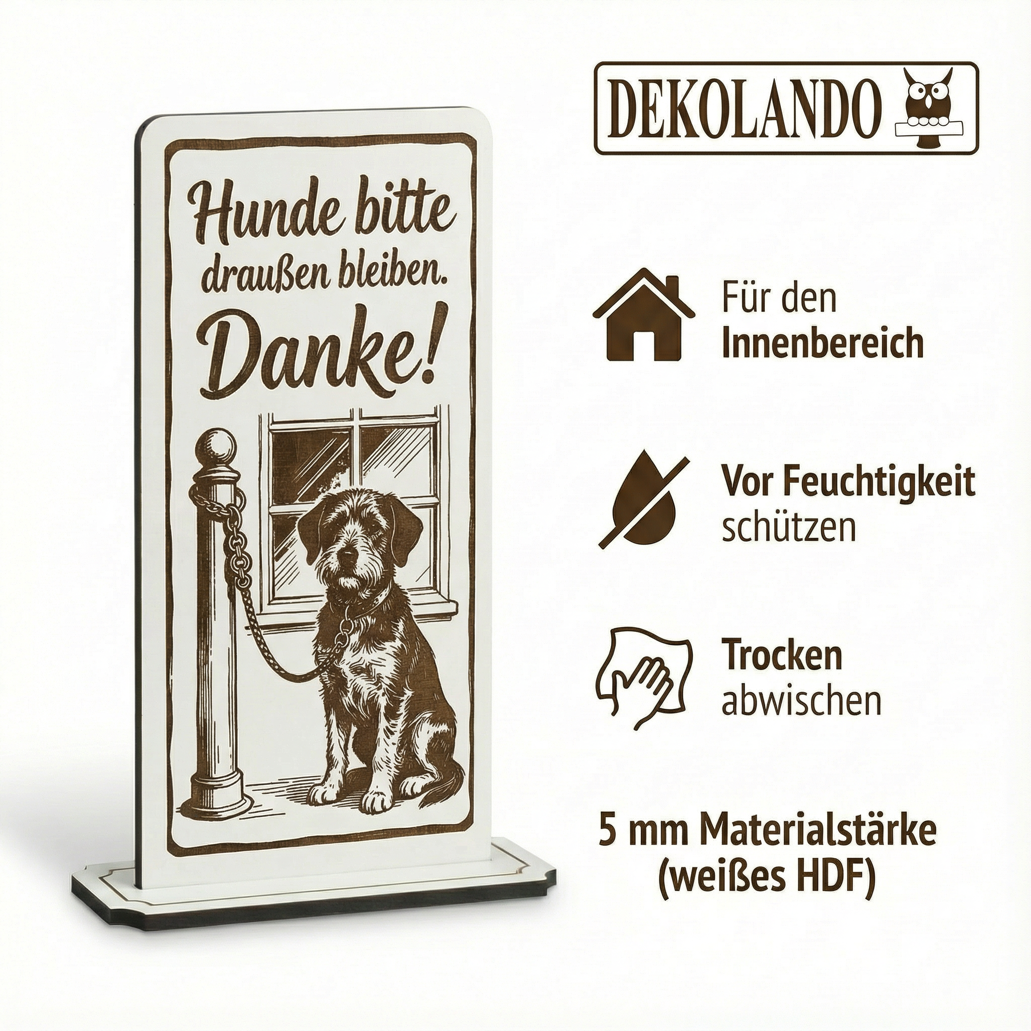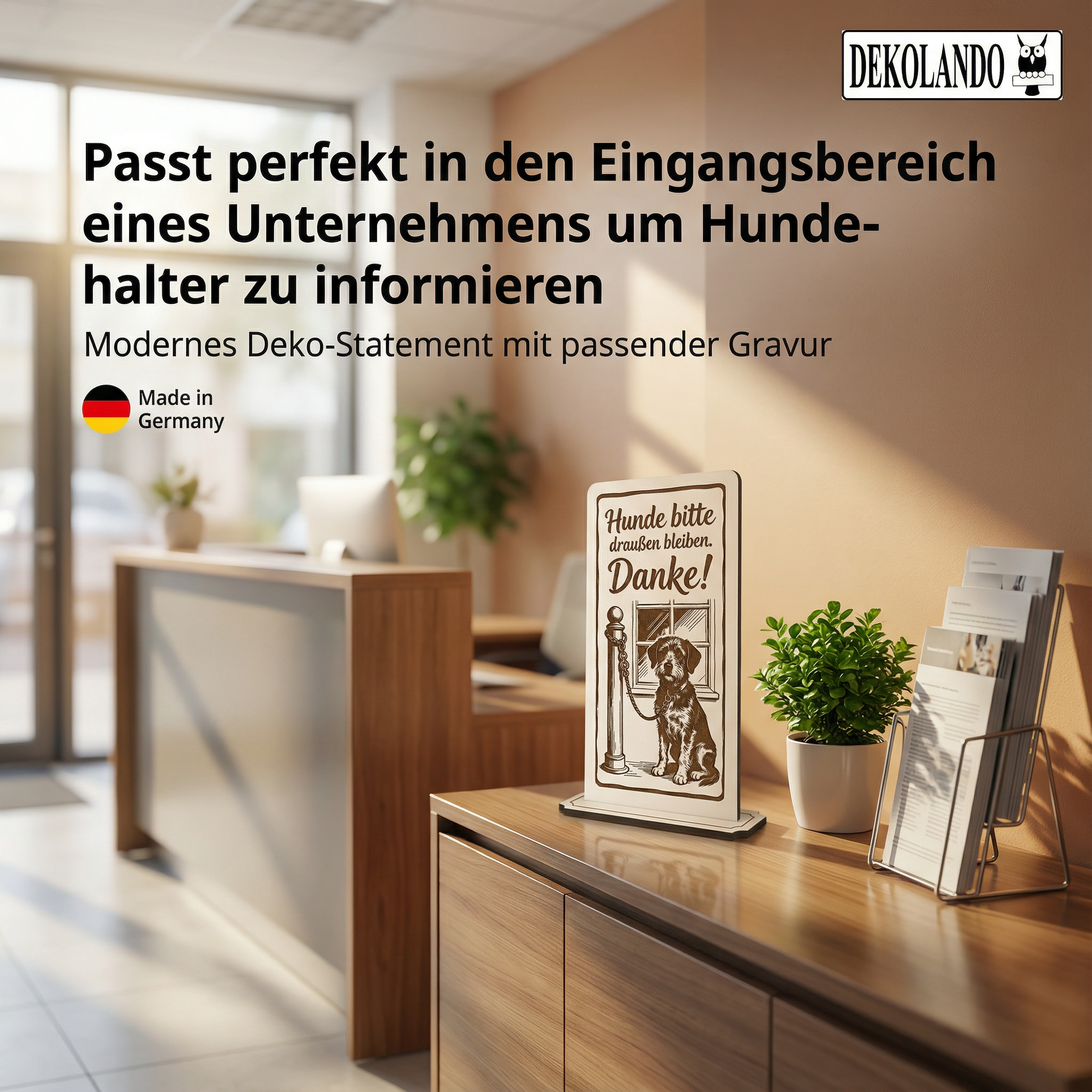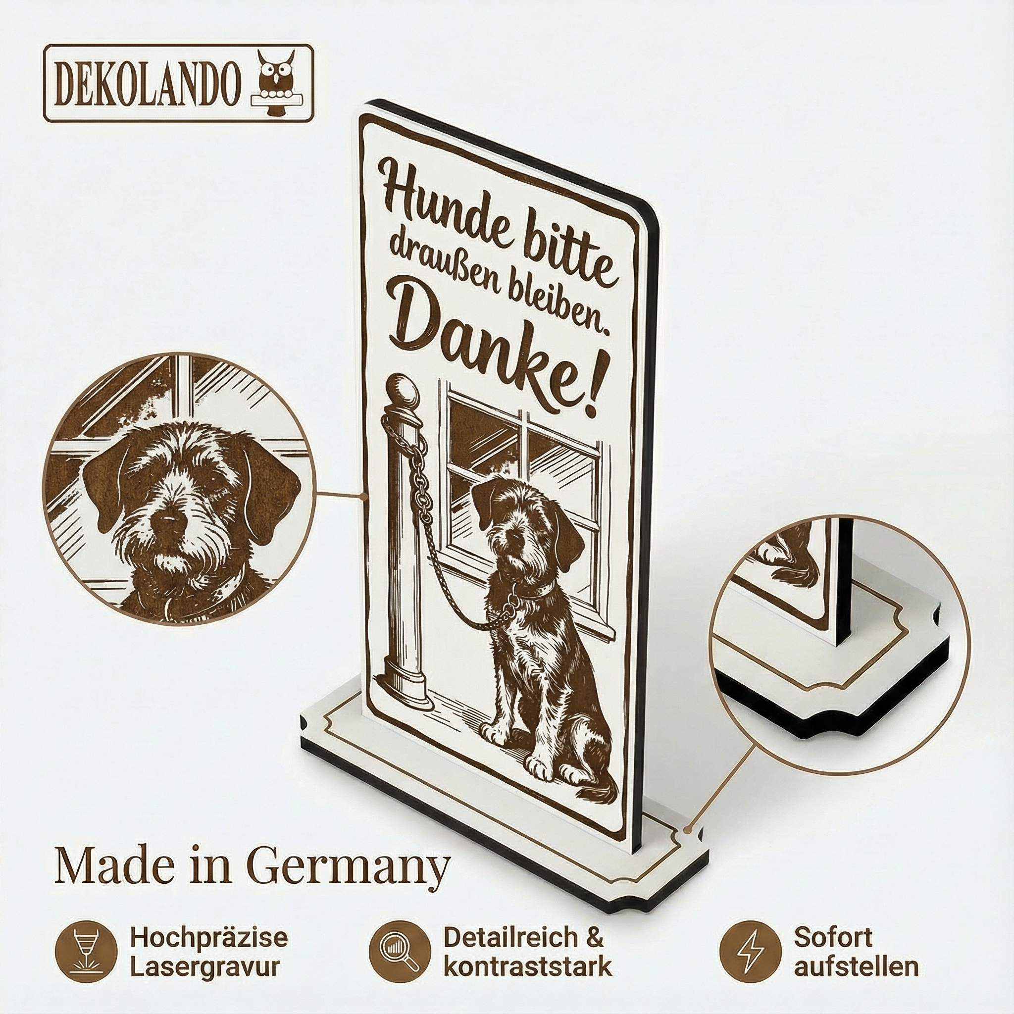 - MOTIV HUNDE DRAUßEN: Aufsteller Schild mit Gravur „Hunde bitte draußen lassen“ – ideal für Eingang, Lebensmittelbereich, Ladenfront oder Restaurant.