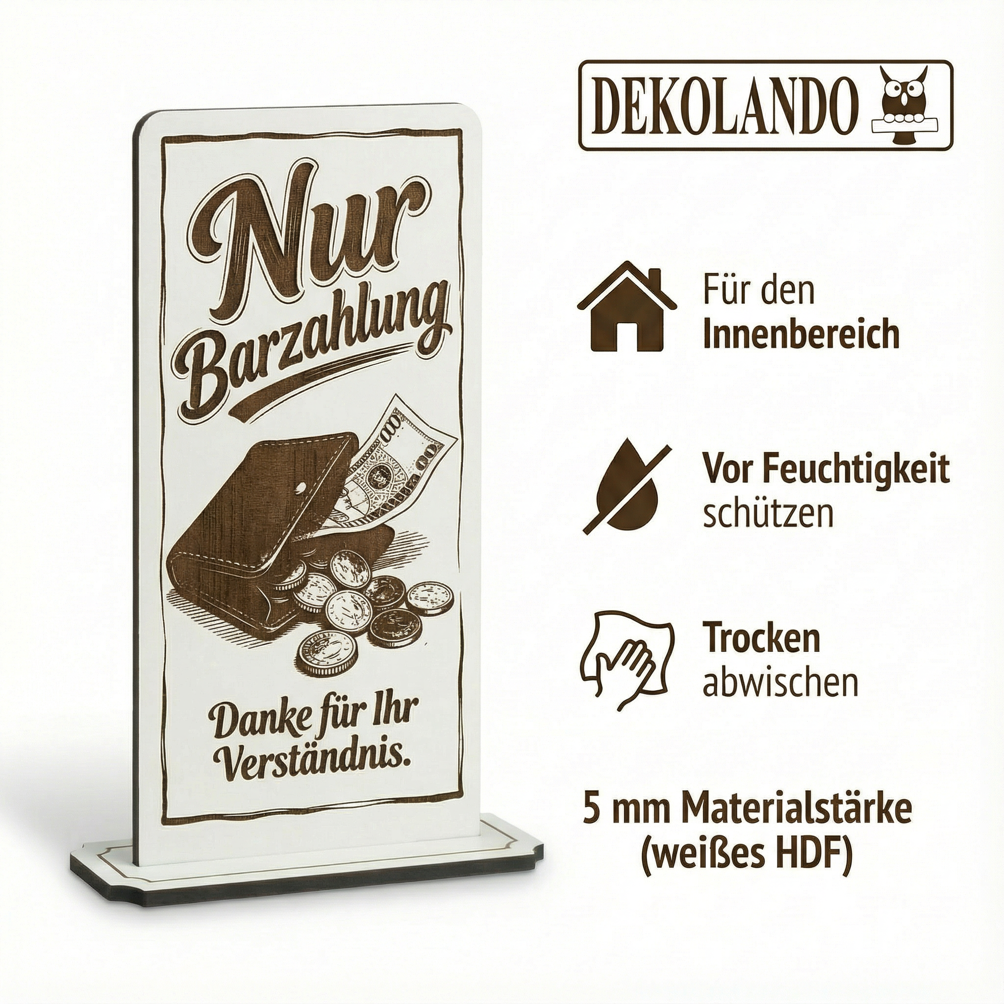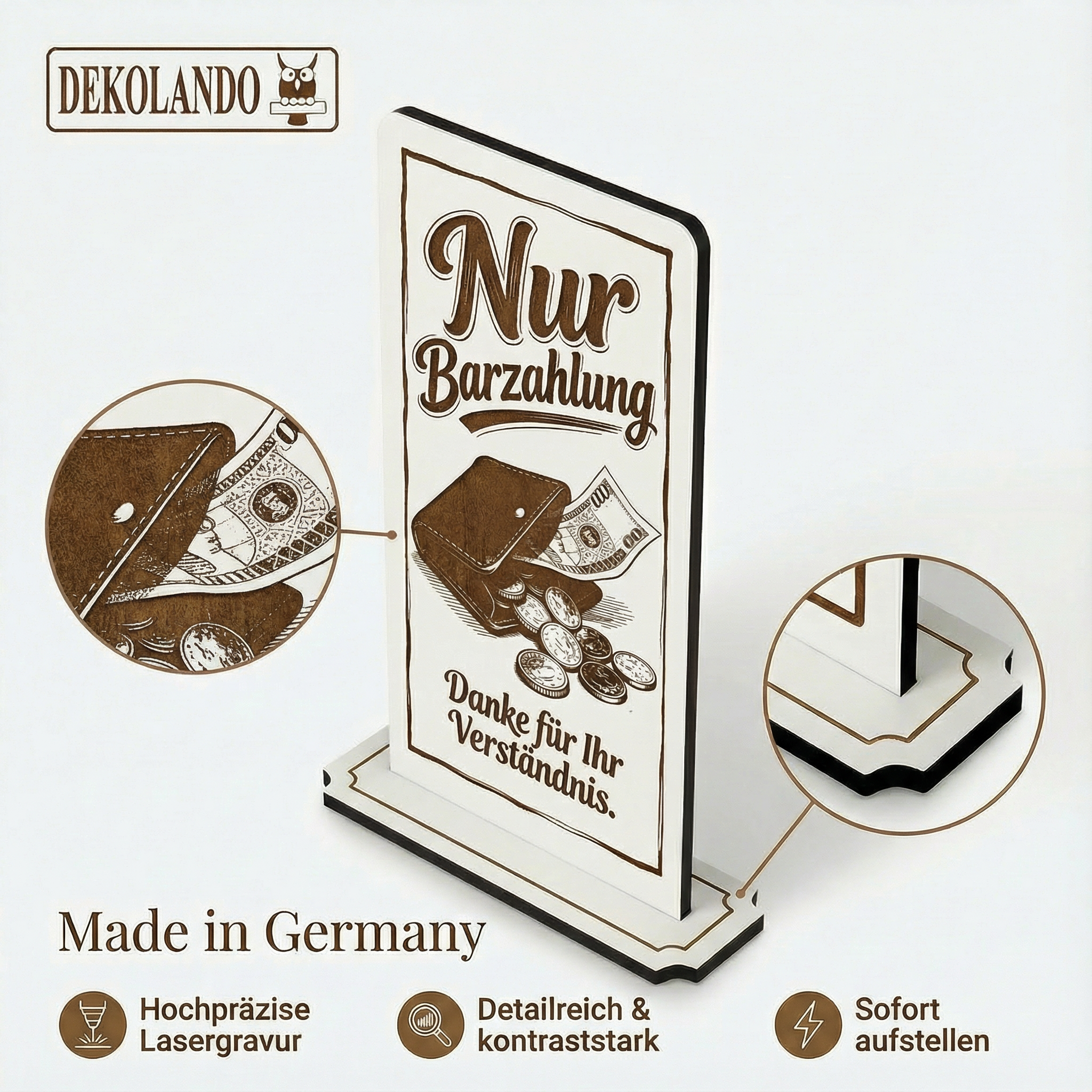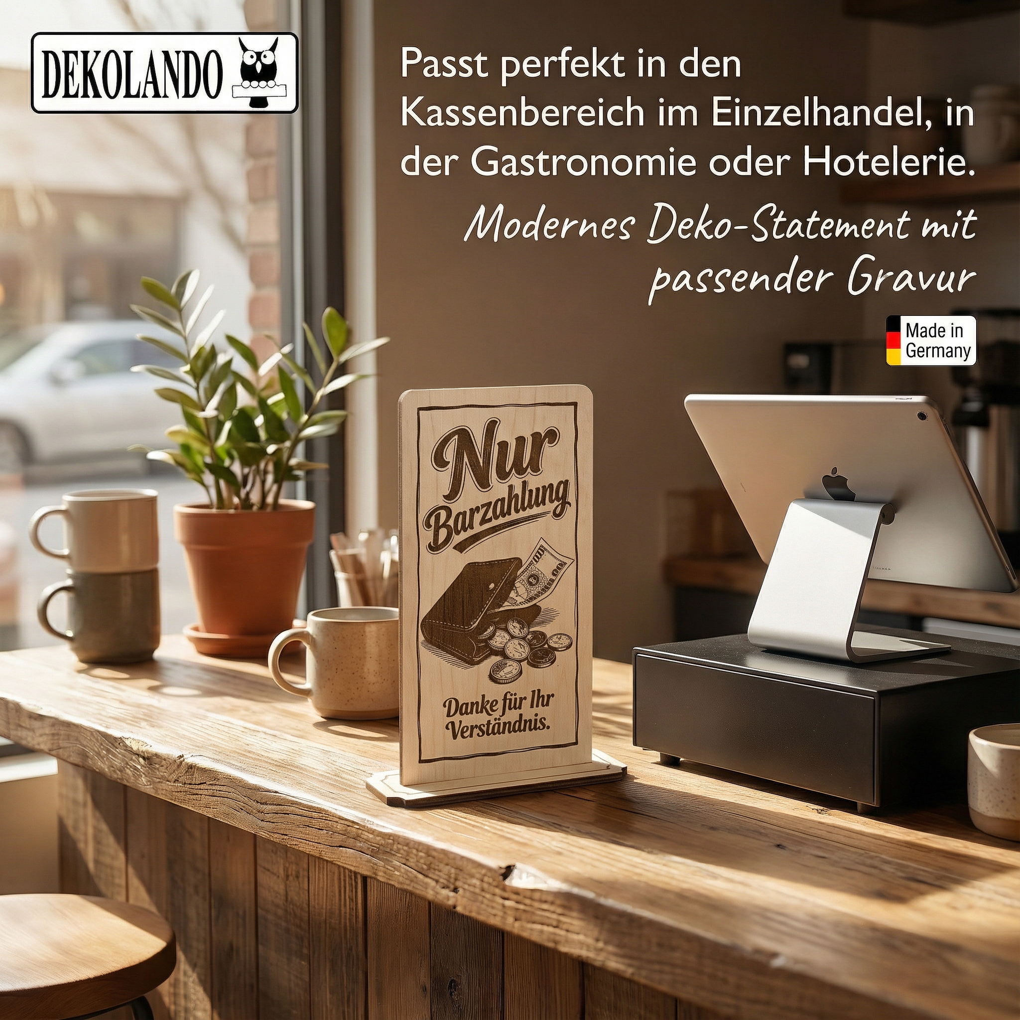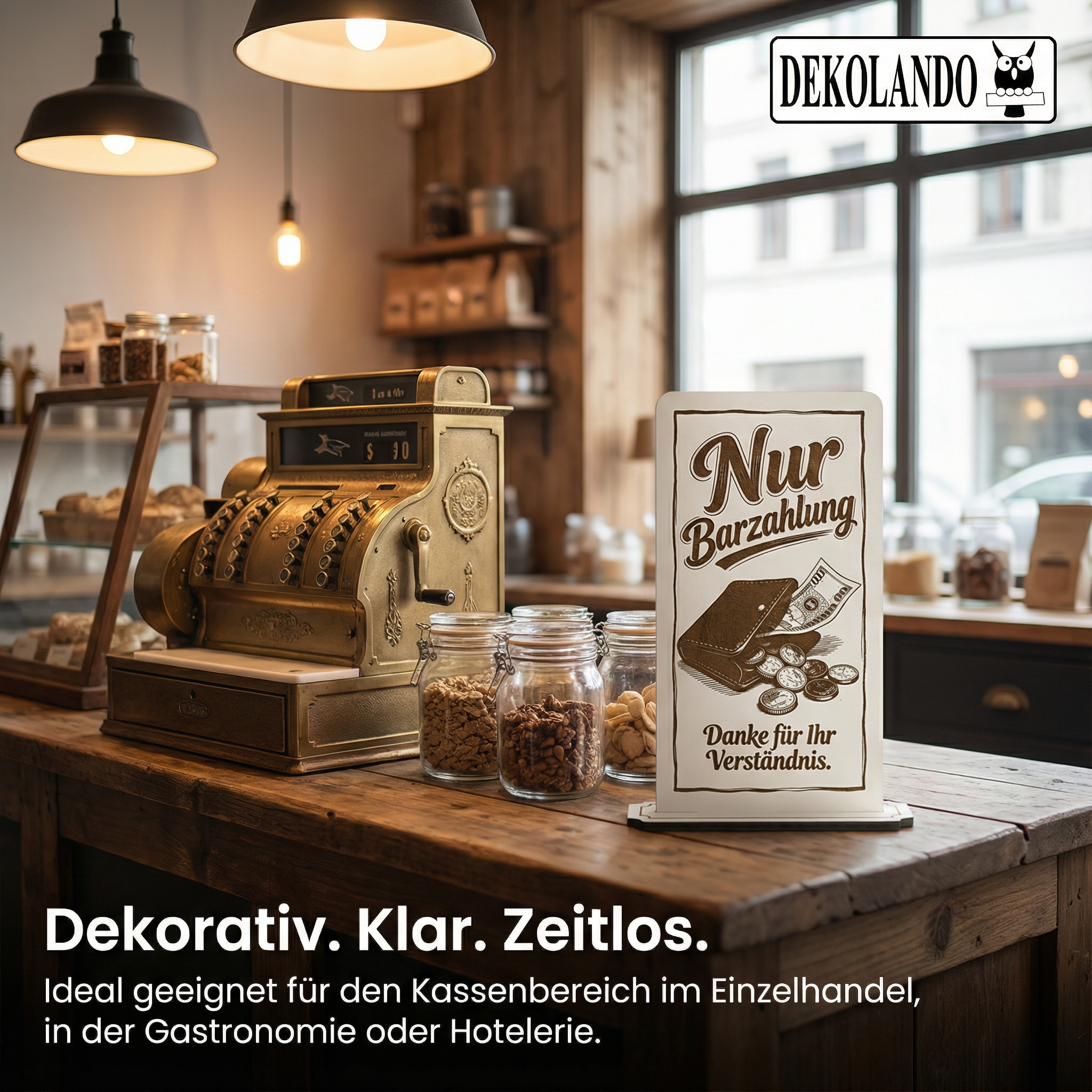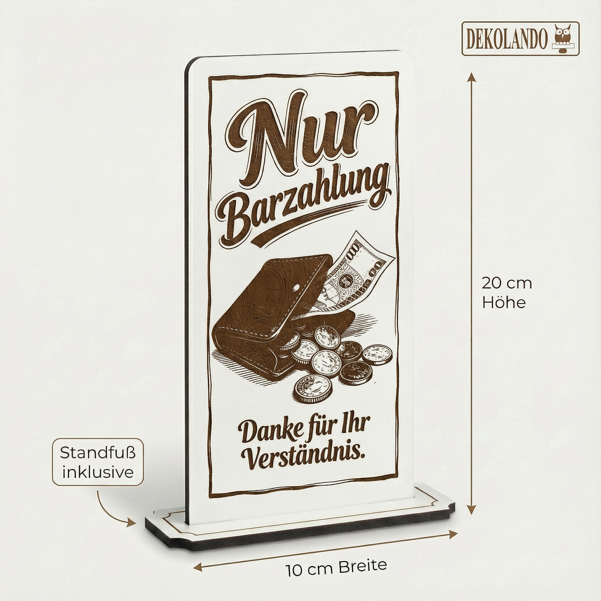 - MOTIV NUR BARZAHLUNG: Aufsteller Schild mit Gravur „Nur Barzahlung“ – gut sichtbar an Kasse, Theke, Tresen oder Checkout.