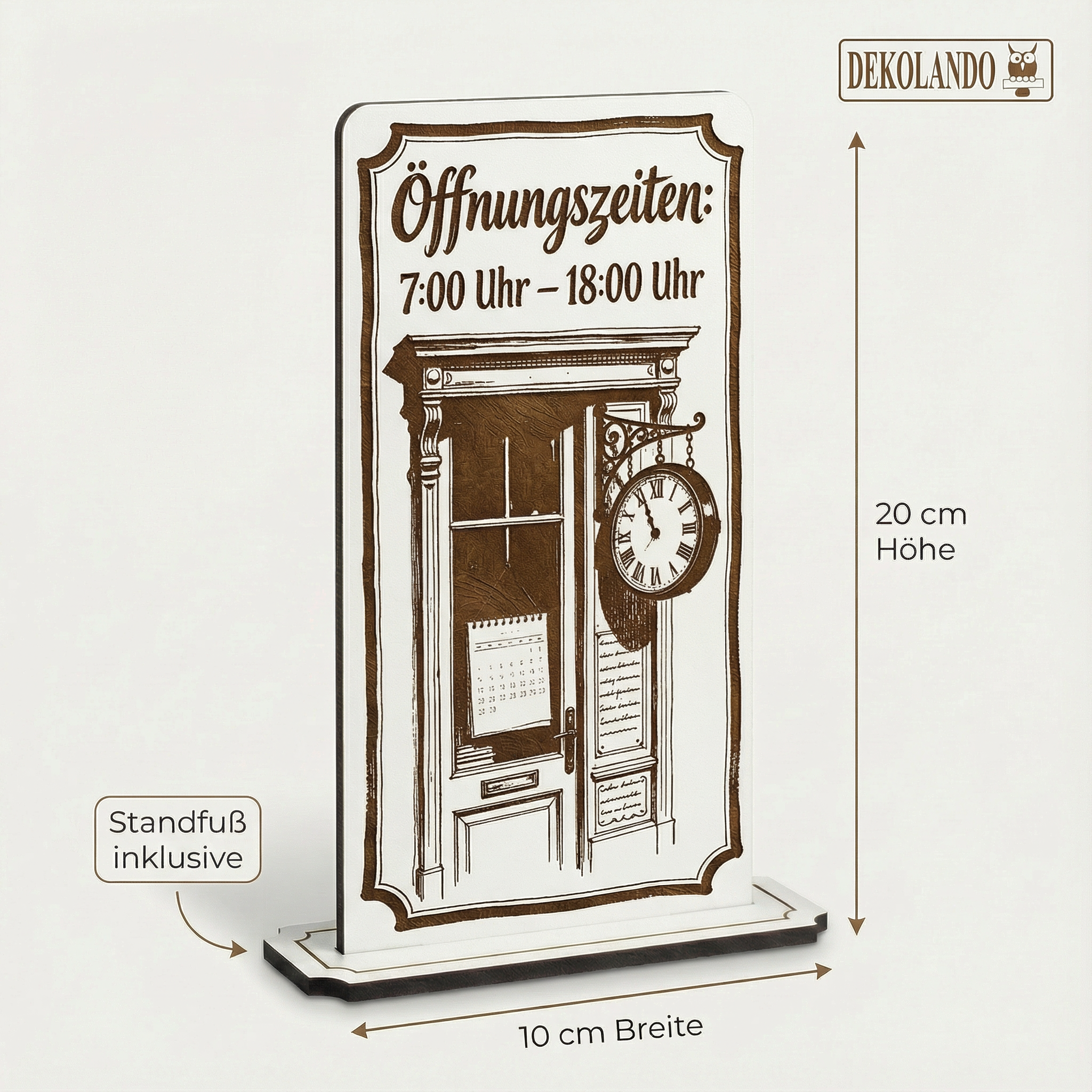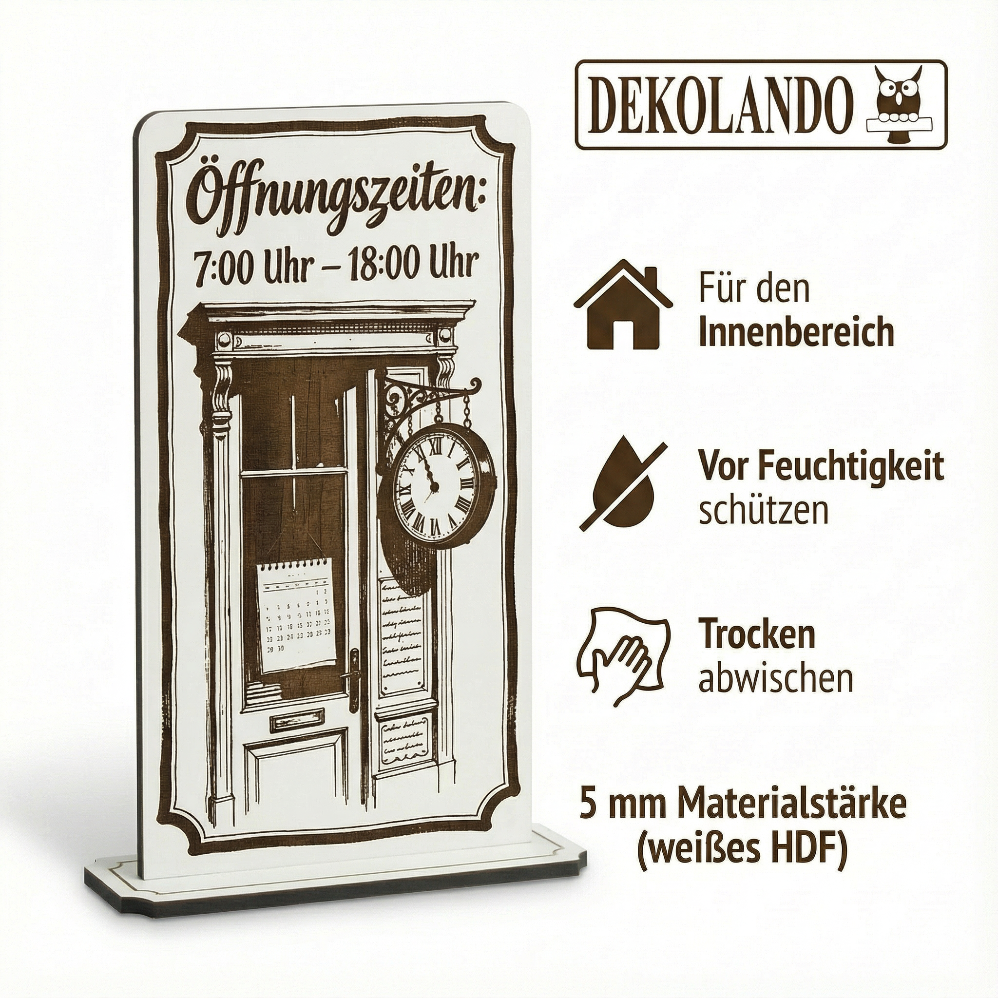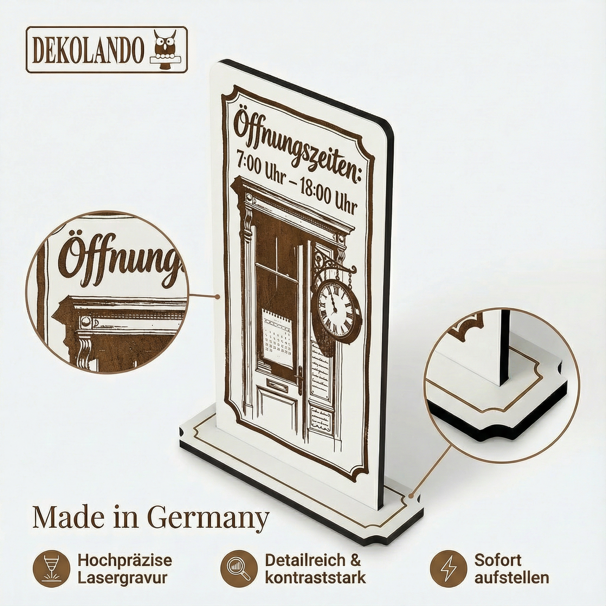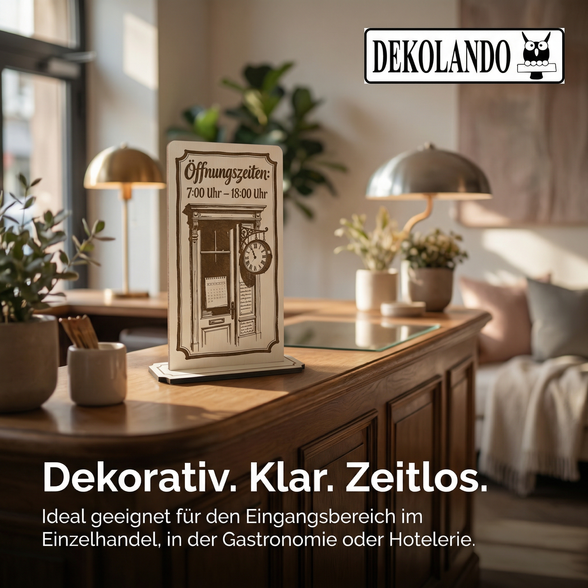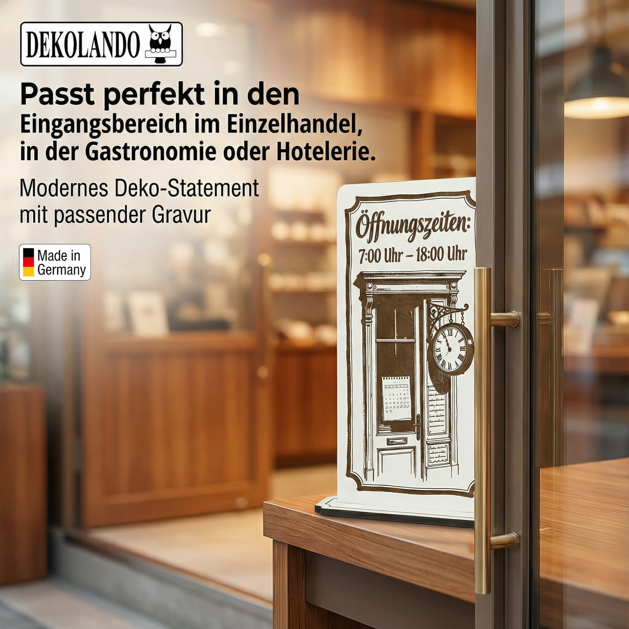 - MOTIV ÖFFNUNGSZEITEN: Aufsteller Schild mit Gravur „Öffnungszeiten“ – ideal für Eingang, Schaufenster, Empfang oder Ladenfront.