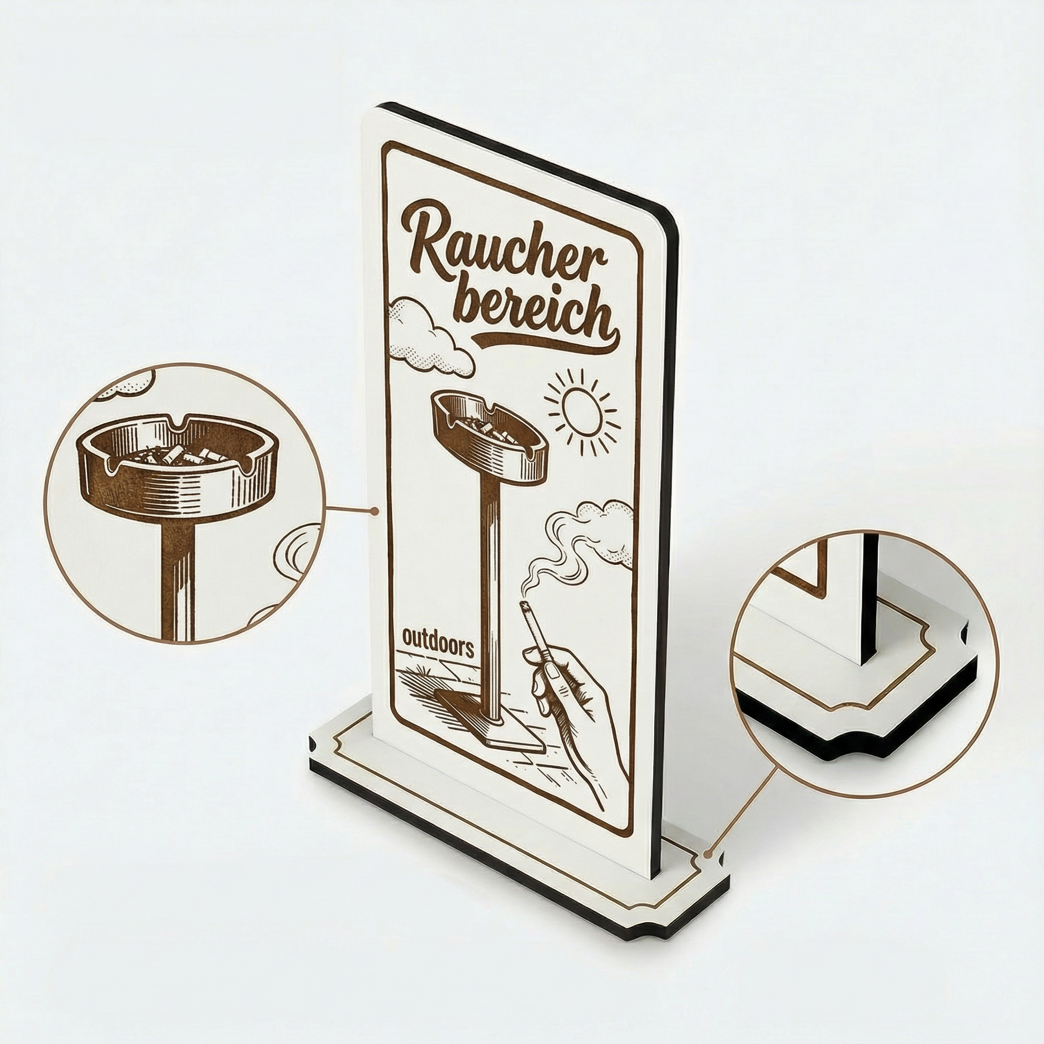 - MOTIV RAUCHERBEREICH: Aufsteller Schild mit Gravur „Raucherbereich“ – gut sichtbar im Außenbereich, Terrasse, Biergarten oder Raucherzone.