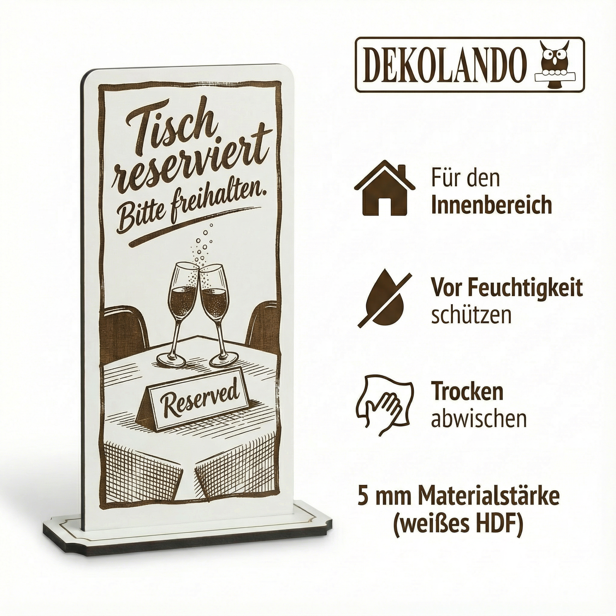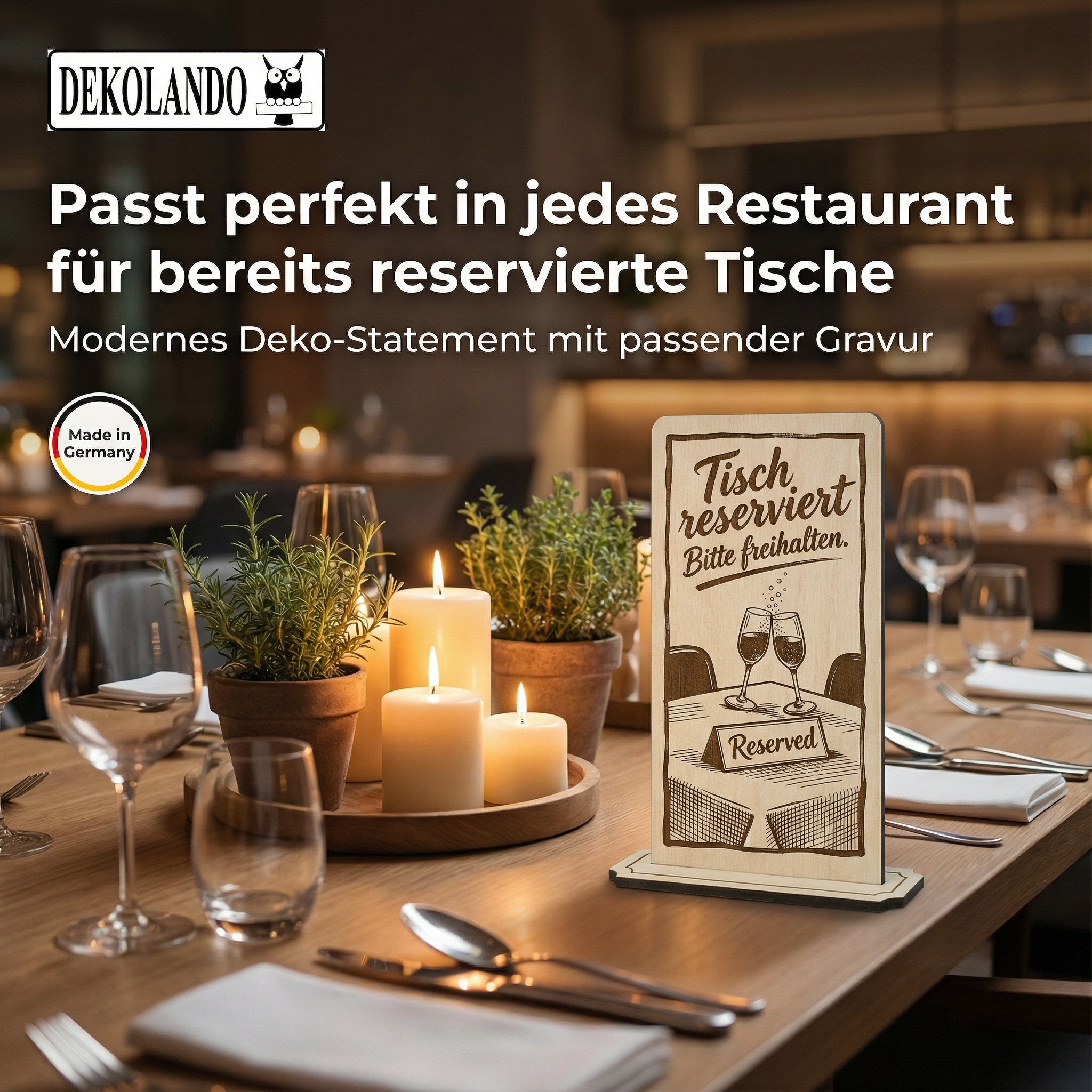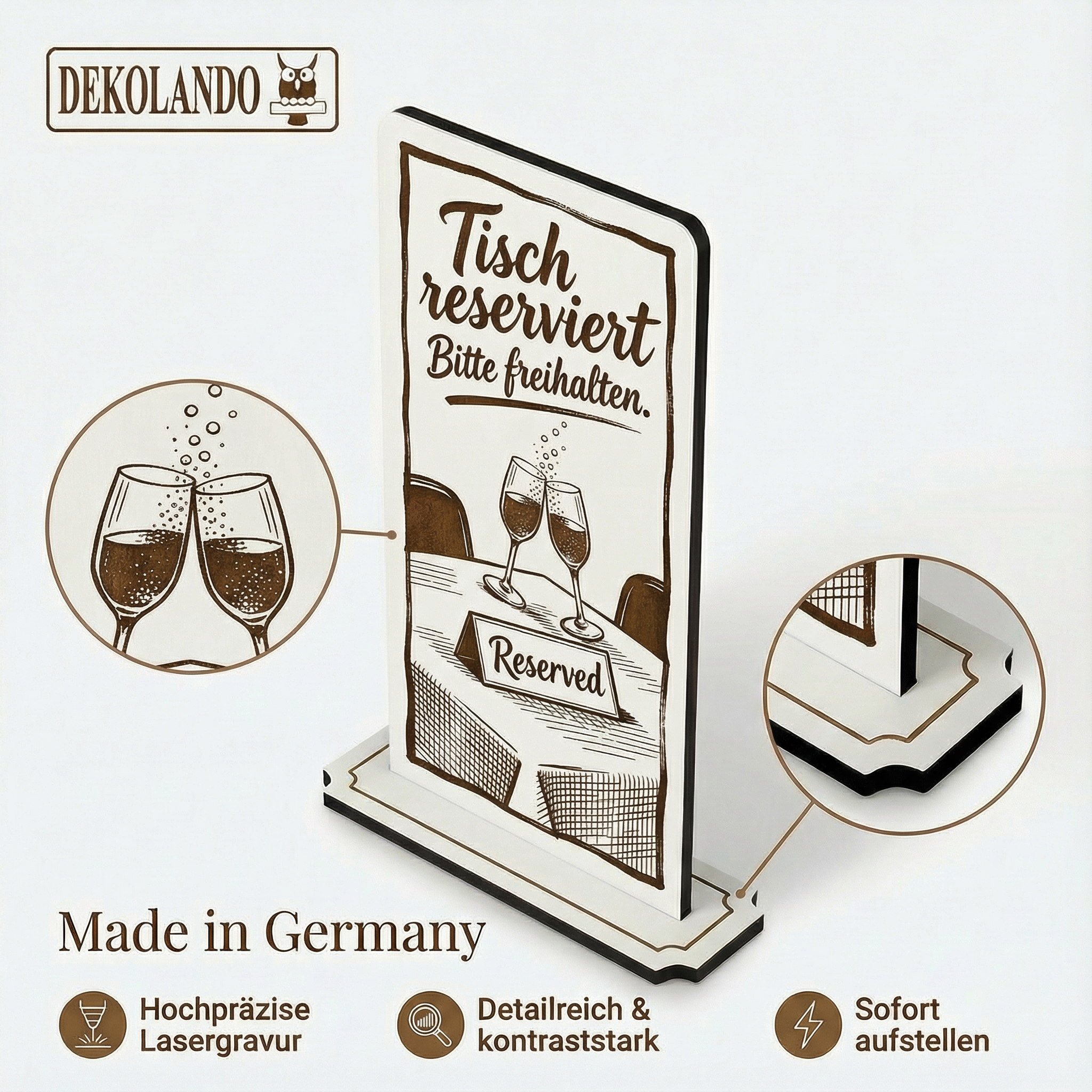 - MOTIV TISCH RESERVIERT: Aufsteller Schild mit Gravur „Tisch reserviert“ – ideal für Restauranttische, Café, Eventbereich oder Reservierungen.