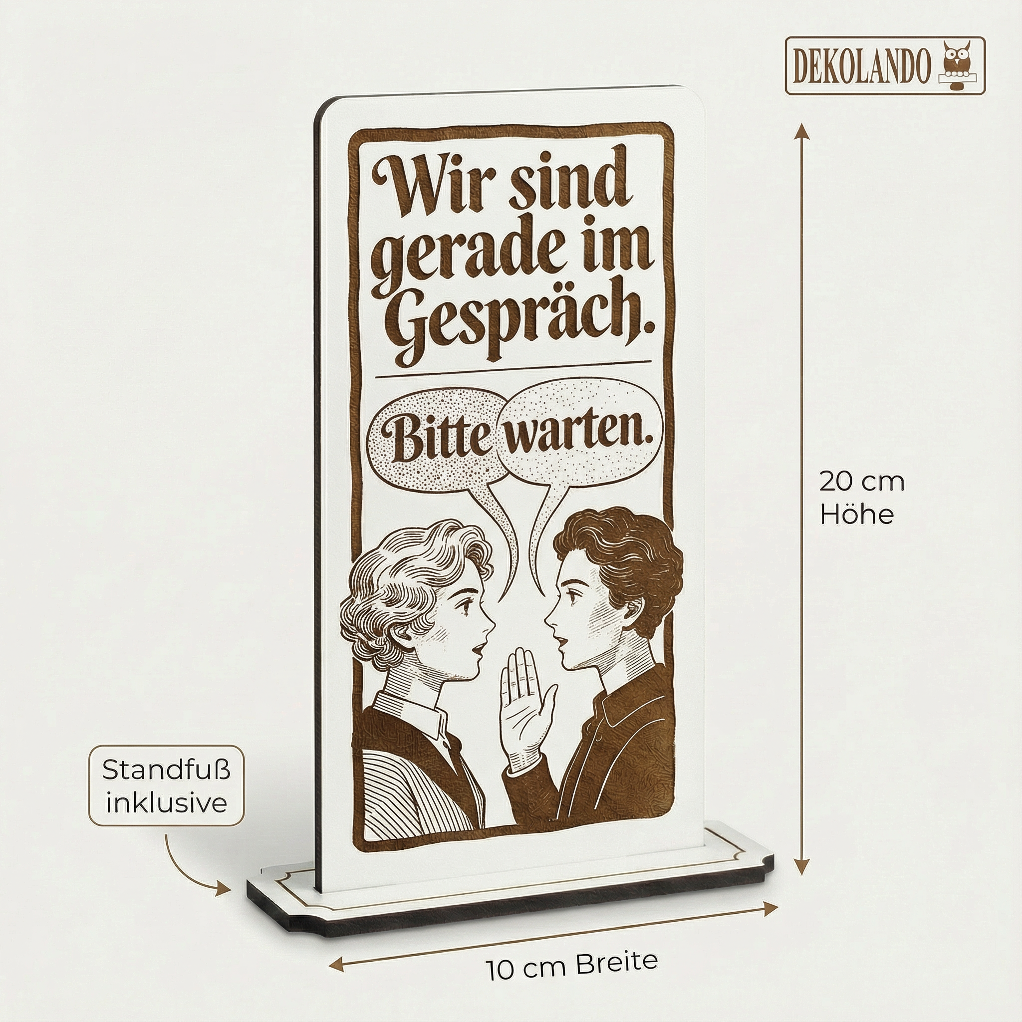 Aufsteller Schild „Wir sind gerade im Gespräch“ – Tischaufsteller 10x20 cm inkl. Standfuß