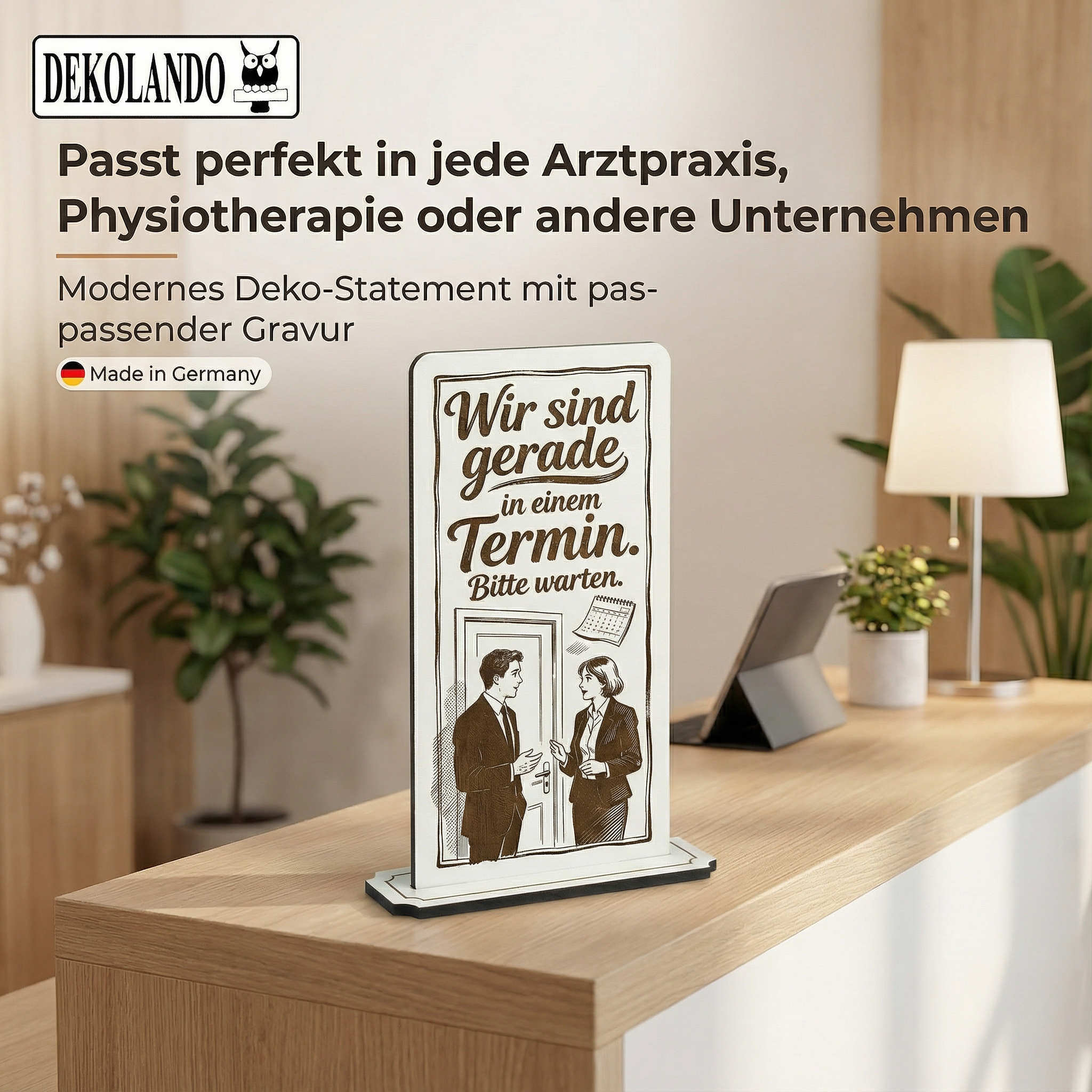 - MOTIV WIR SIND IN DER BEHANDLUNG: Aufsteller Schild mit Gravur „Wir sind in der Behandlung / im Termin“ – ideal für Praxis, Studio, Empfang oder Behandlungsraum.
