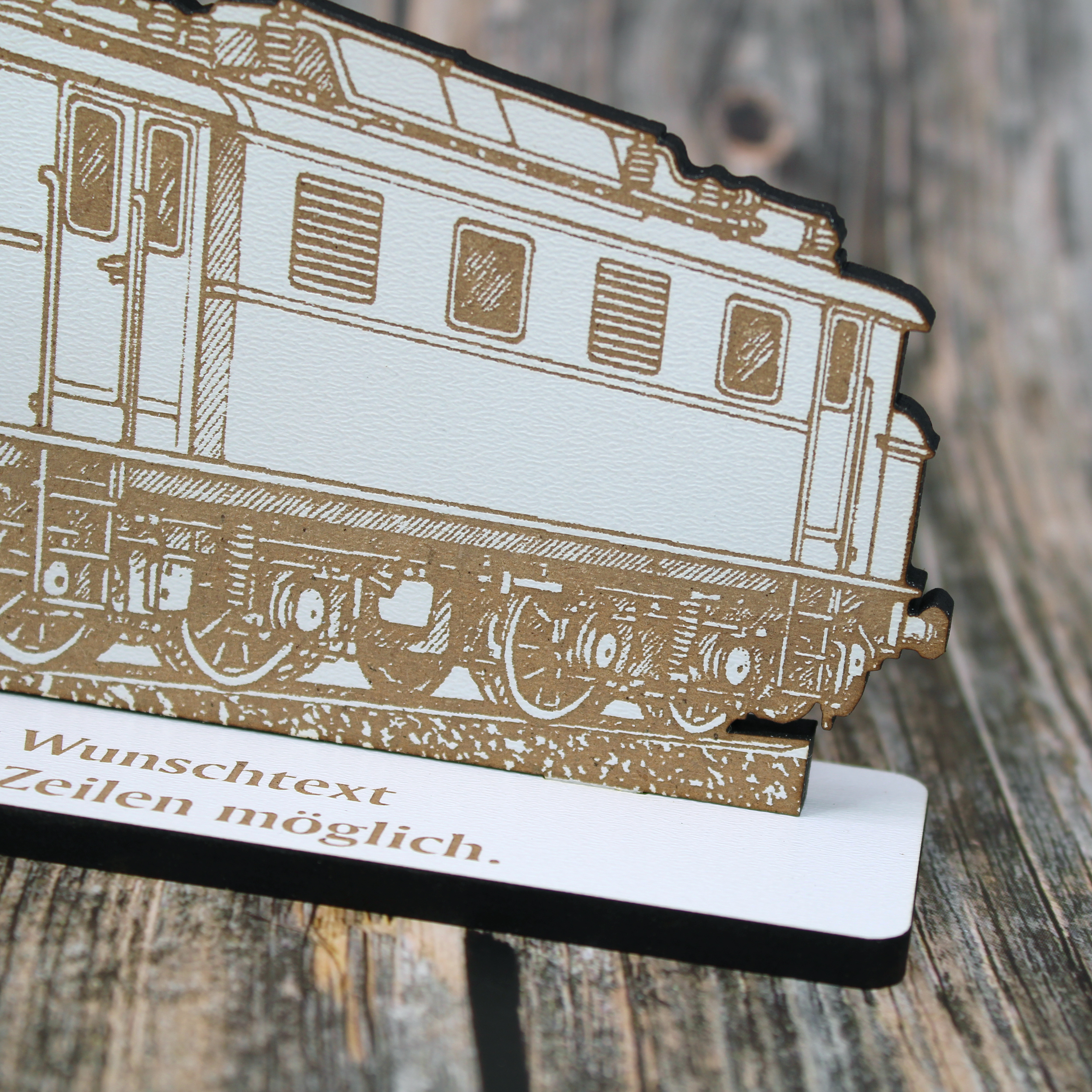 Dieser stilvolle HDF Aufsteller verbindet klassisches Eisenbahn-Feeling mit moderner Dekoration – ein kleines, aber eindrucksvolles Geschenk für jeden Zugfreund.