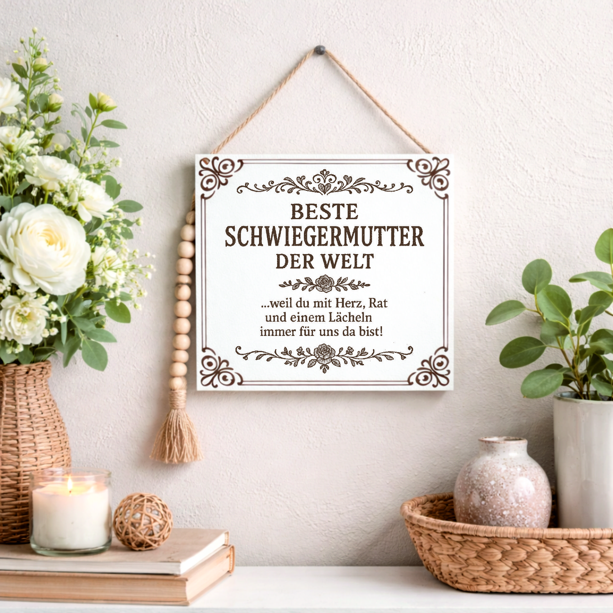 Dieses dekorative Schild für die beste Schwiegermutter der Welt ist eine liebevolle Möglichkeit, Wertschätzung auszudrücken.