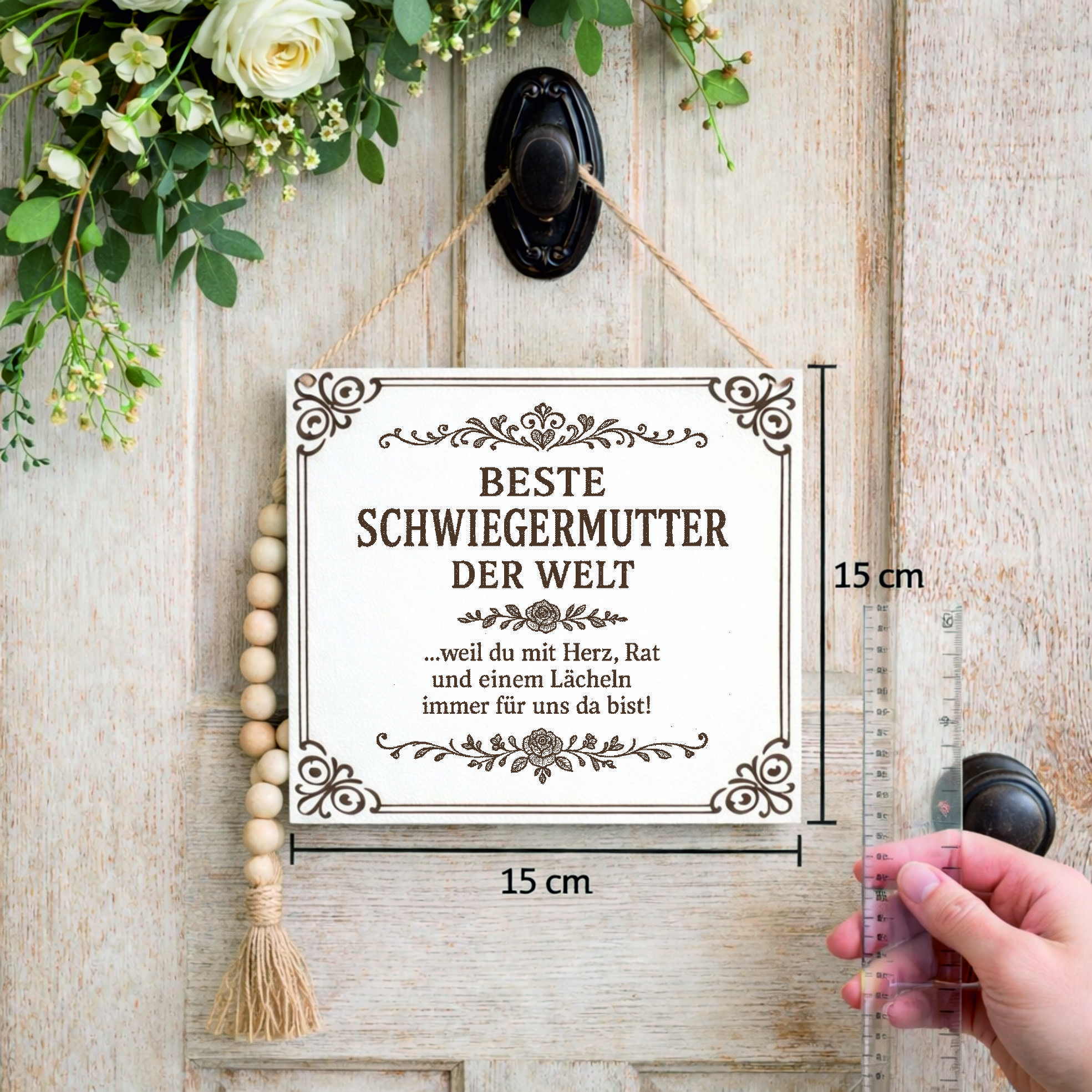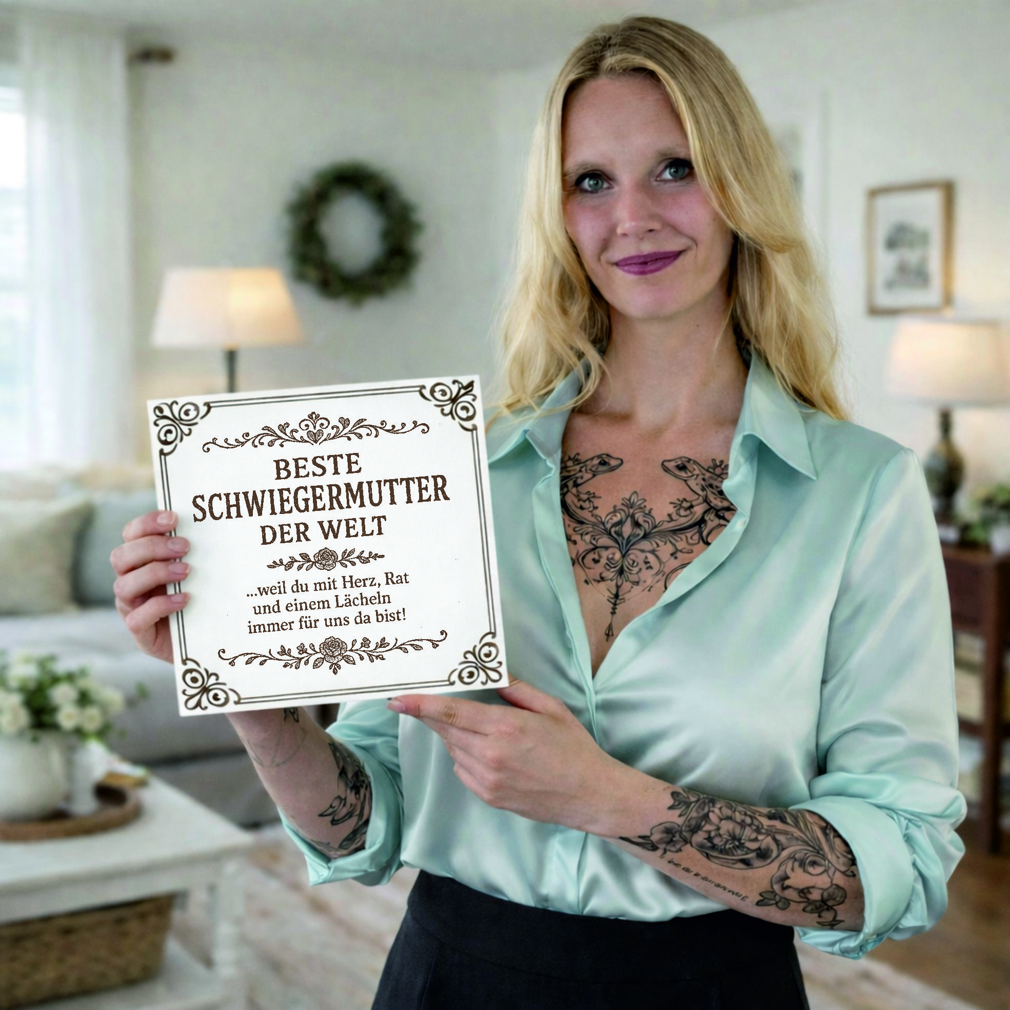 Beste Schwiegermutter der Welt Schild – graviertes HDF Dekoschild 15x15 cm