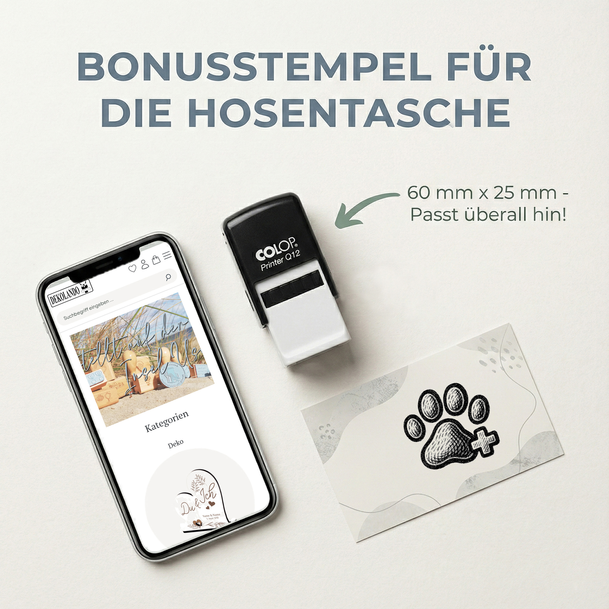 Bonusstempel Pfote mit Plus 10x10 mm – ideal für Bonuskarte, Kundenkarte, Stempelkarte & Terminkarten im Tierarzt, Tierklinik, Tiergesundheit, Veterinär. Scharfer Rundstempel für klare, professionelle Abdrucke