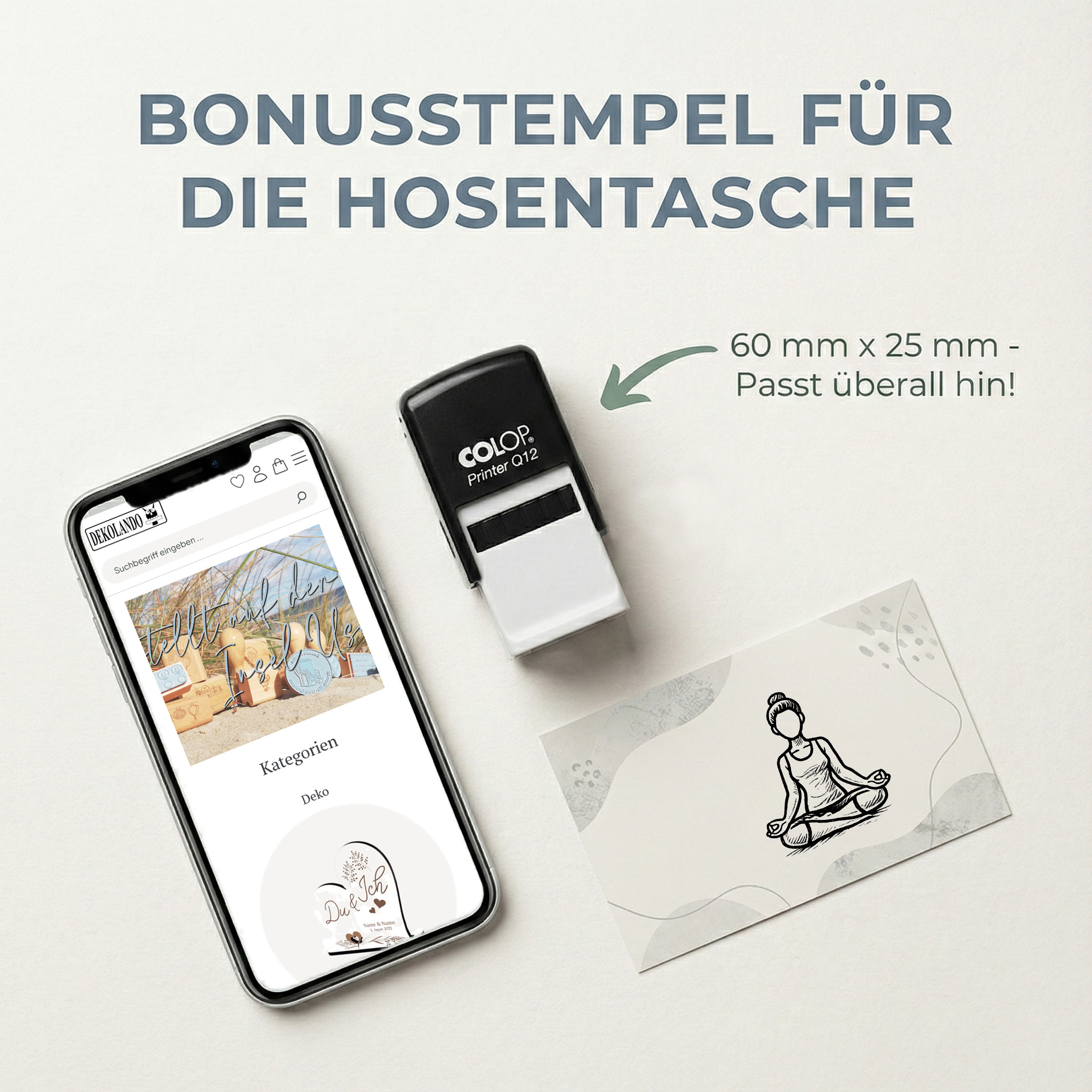 - Kompakter Stamper (60 × 25 × 25 mm) – robust, leicht & ideal für unterwegs; ideal für Gutscheine, Bonuskarte, Kundenkarte, Stempelkarte, Terminkarten, Kundenbindung & Rabattaktionen
