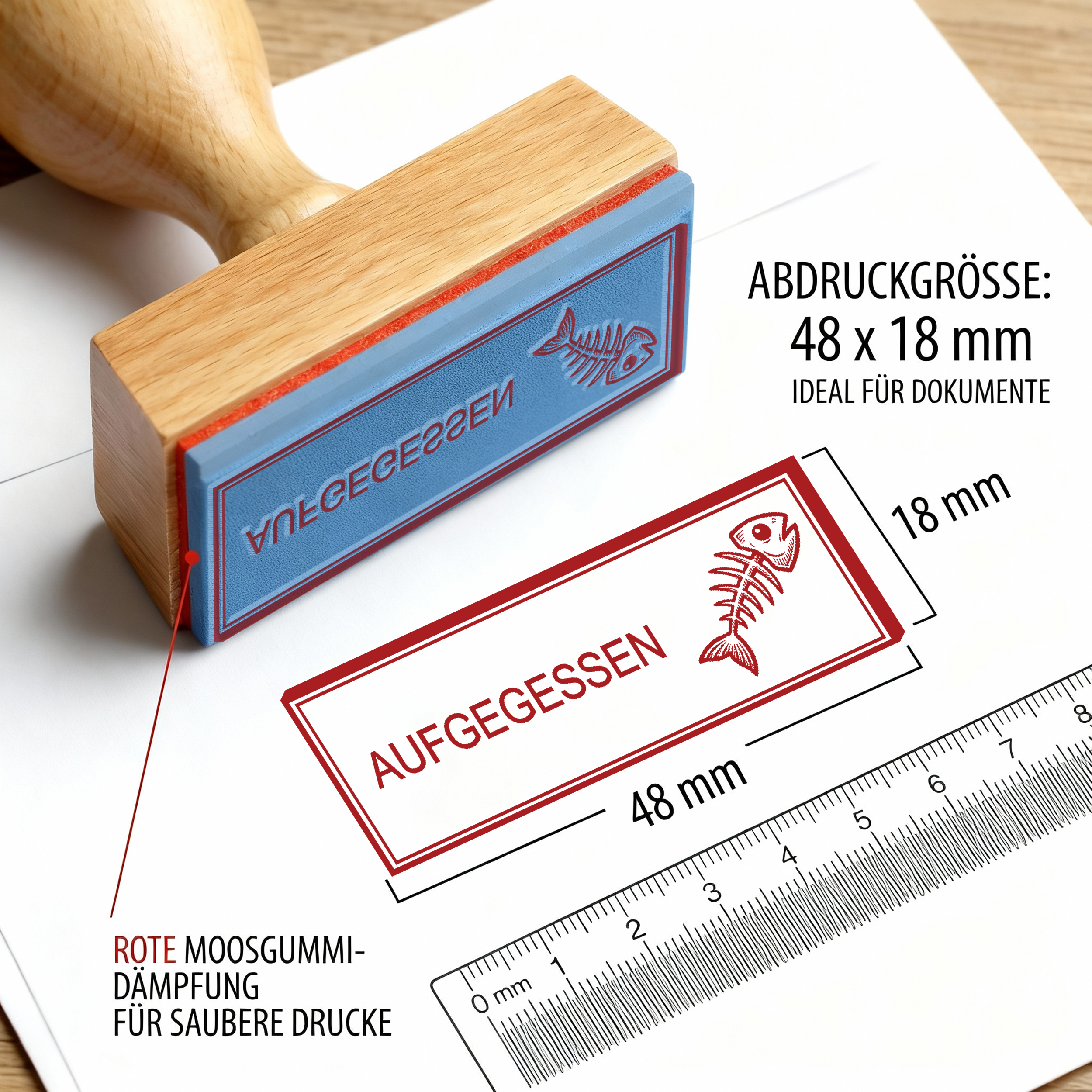 Bürostempel AUFGEGESSEN Fischgräte Stempel – Holzstempel 48x18 mm für Dokumente - Mittag vorbei, Pause beendet