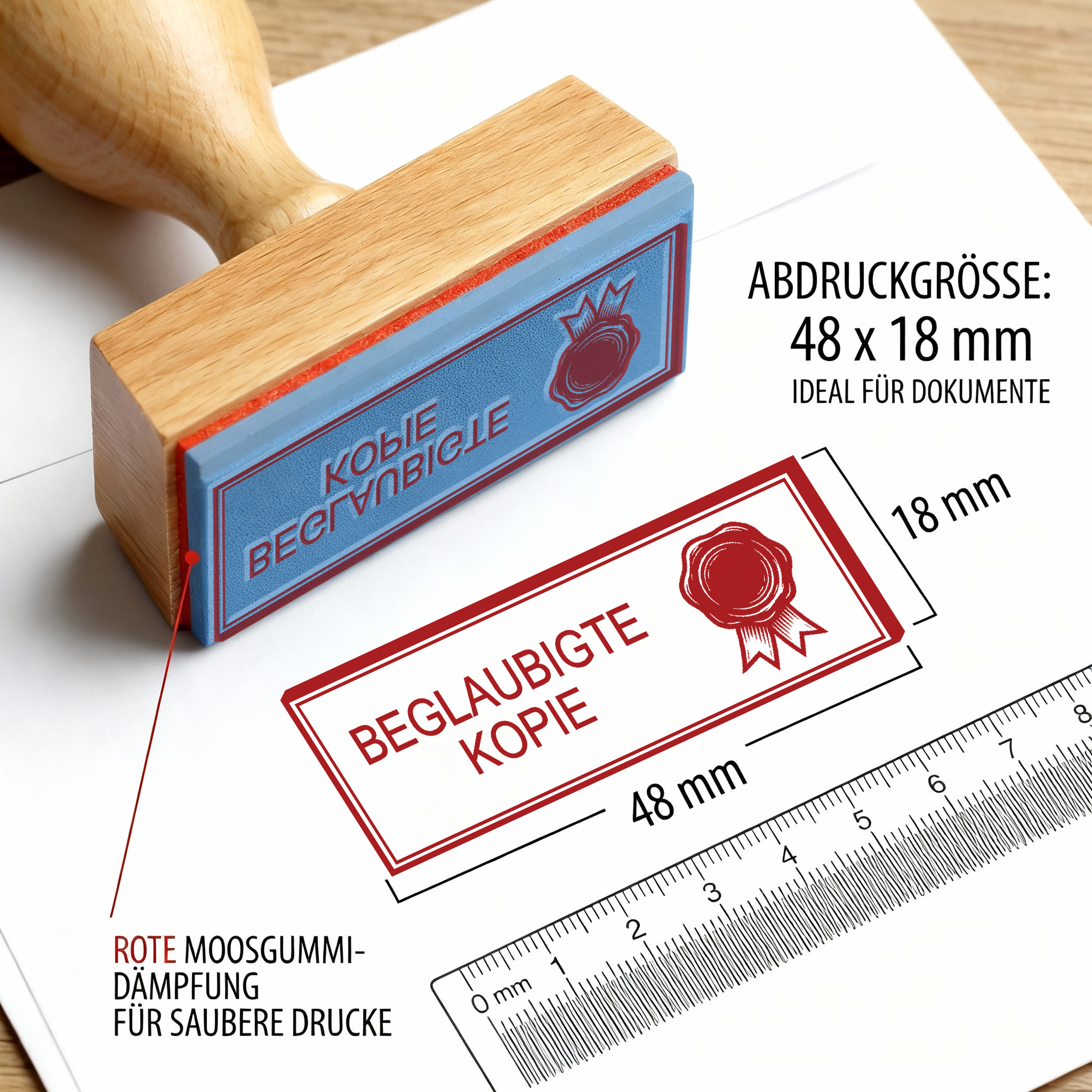 Produktinformationen "Bürostempel BEGLAUBIGTE KOPIE Wachssiegel Stempel – Holzstempel 48x18 mm für Dokumente - Beglaubigung, offiziell, Abschrift"