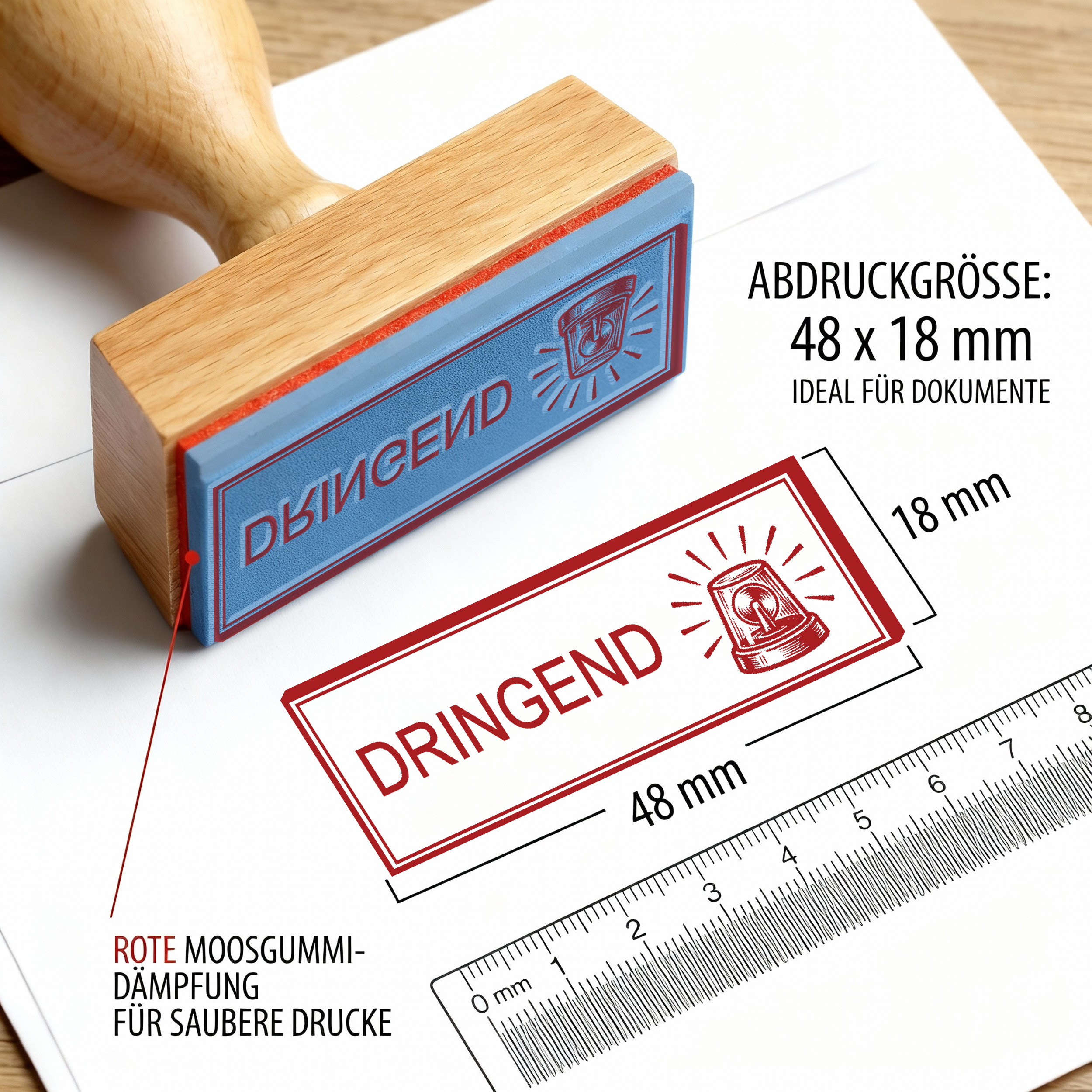 Produktinformationen "Bürostempel DRINGEND Sirenen-Leuchte Stempel – Holzstempel 48x18 mm für Dokumente - eilig, hohe Priorität, dringlich bearbeiten"