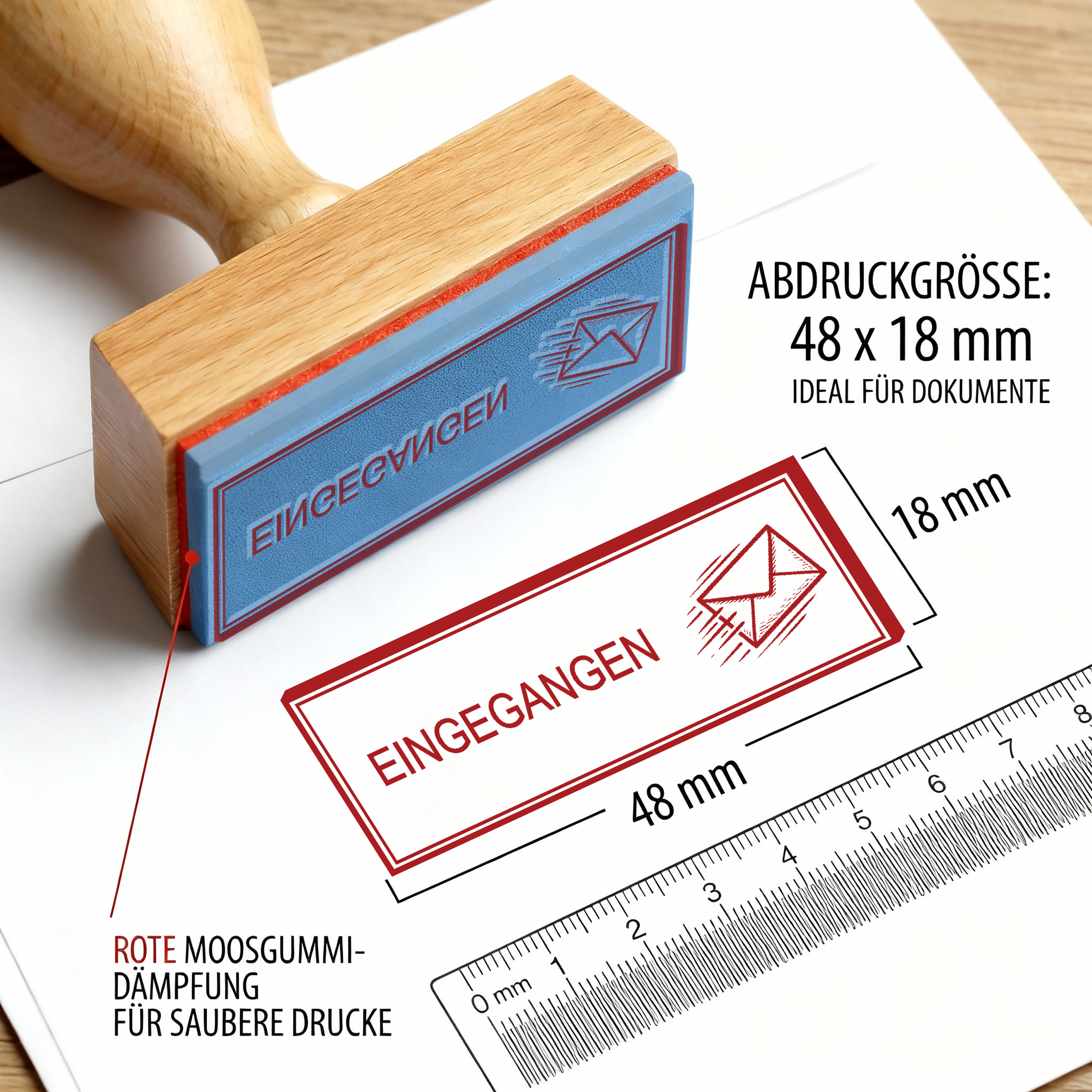 Produktinformationen "Bürostempel EINGEGANGEN Landender Brief Stempel – Holzstempel 48x18 mm für Dokumente - Posteingang, angekommen, erhalten"