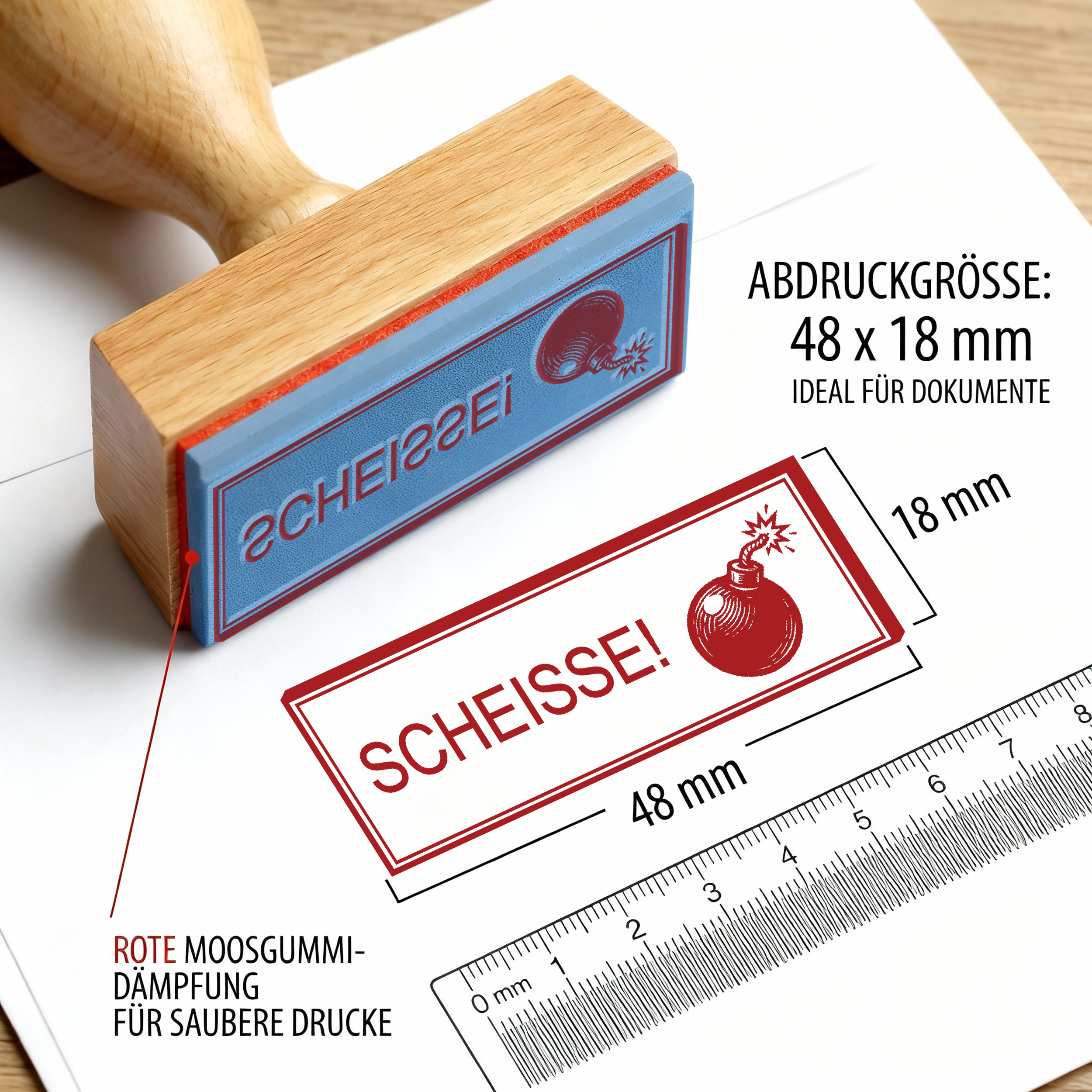 Bürostempel SCHEISSE! Bombe Stempel – Holzstempel 48x18 mm für Dokumente - Mist!, Katastrophe