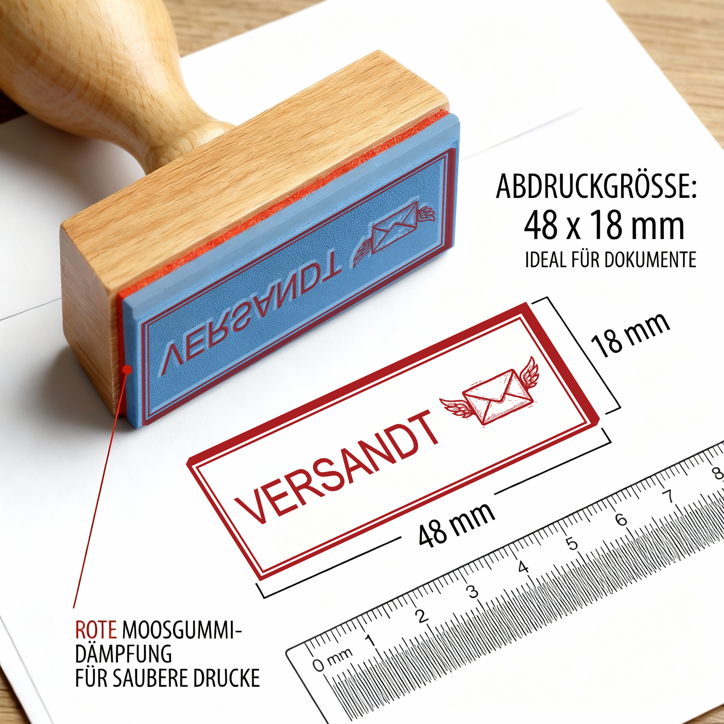 Bürostempel VERSANDT Flügel-Brief Stempel – Holzstempel 48x18 mm für Dokumente - versendet, abgeschickt