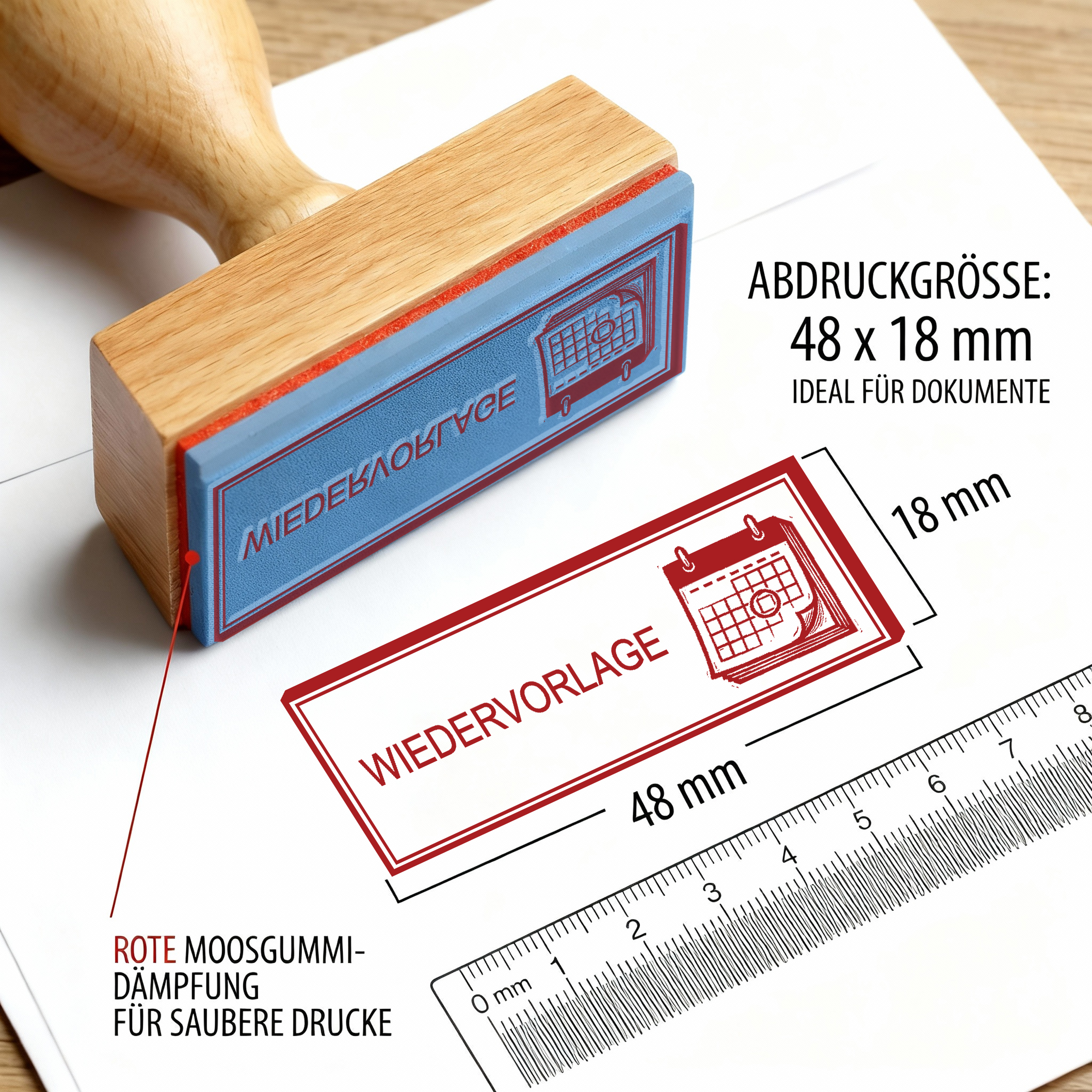 Produktinformationen "Bürostempel WIEDERVORLAGE Kalender Stempel – Holzstempel 48x18 mm für Dokumente - später bearbeiten, nochmal"