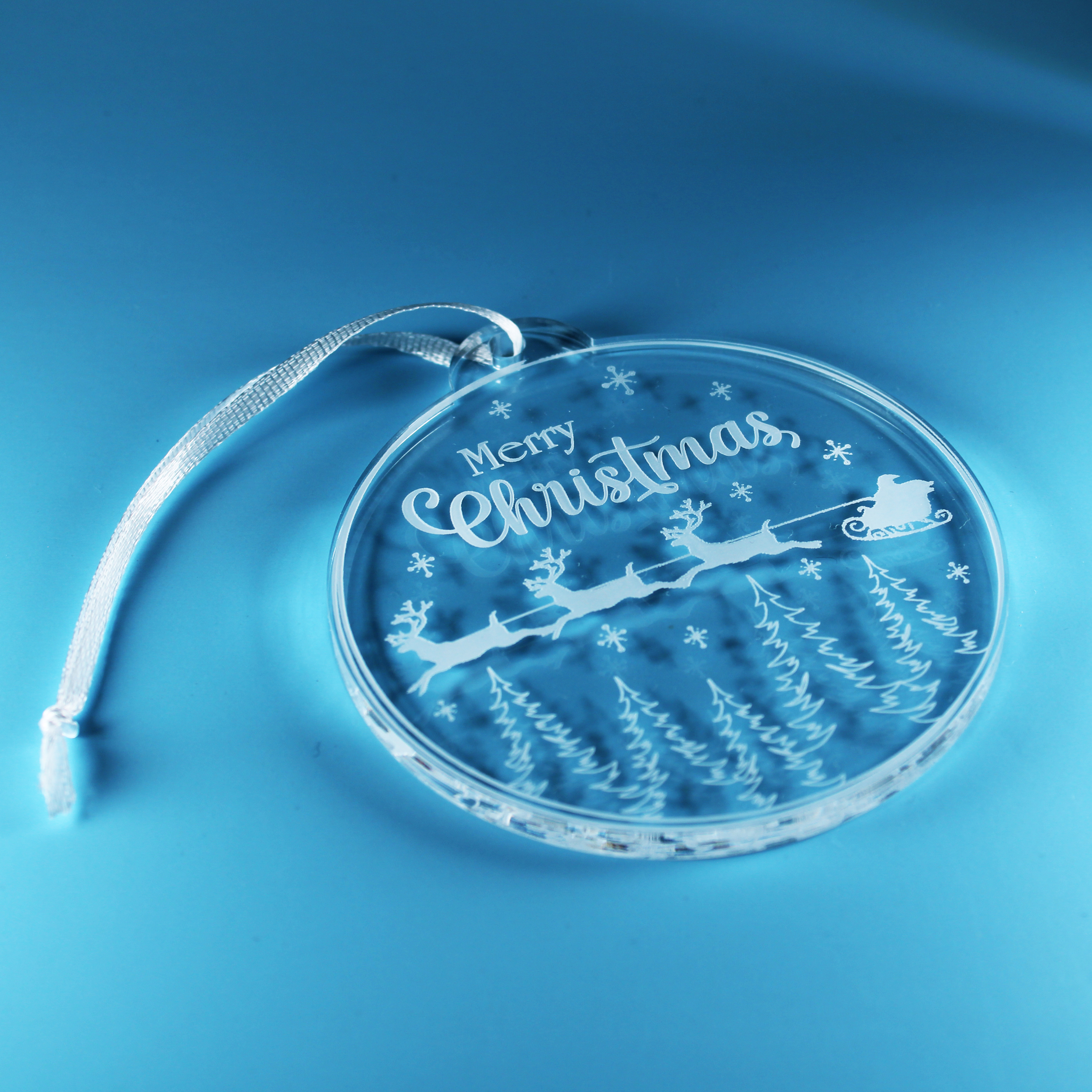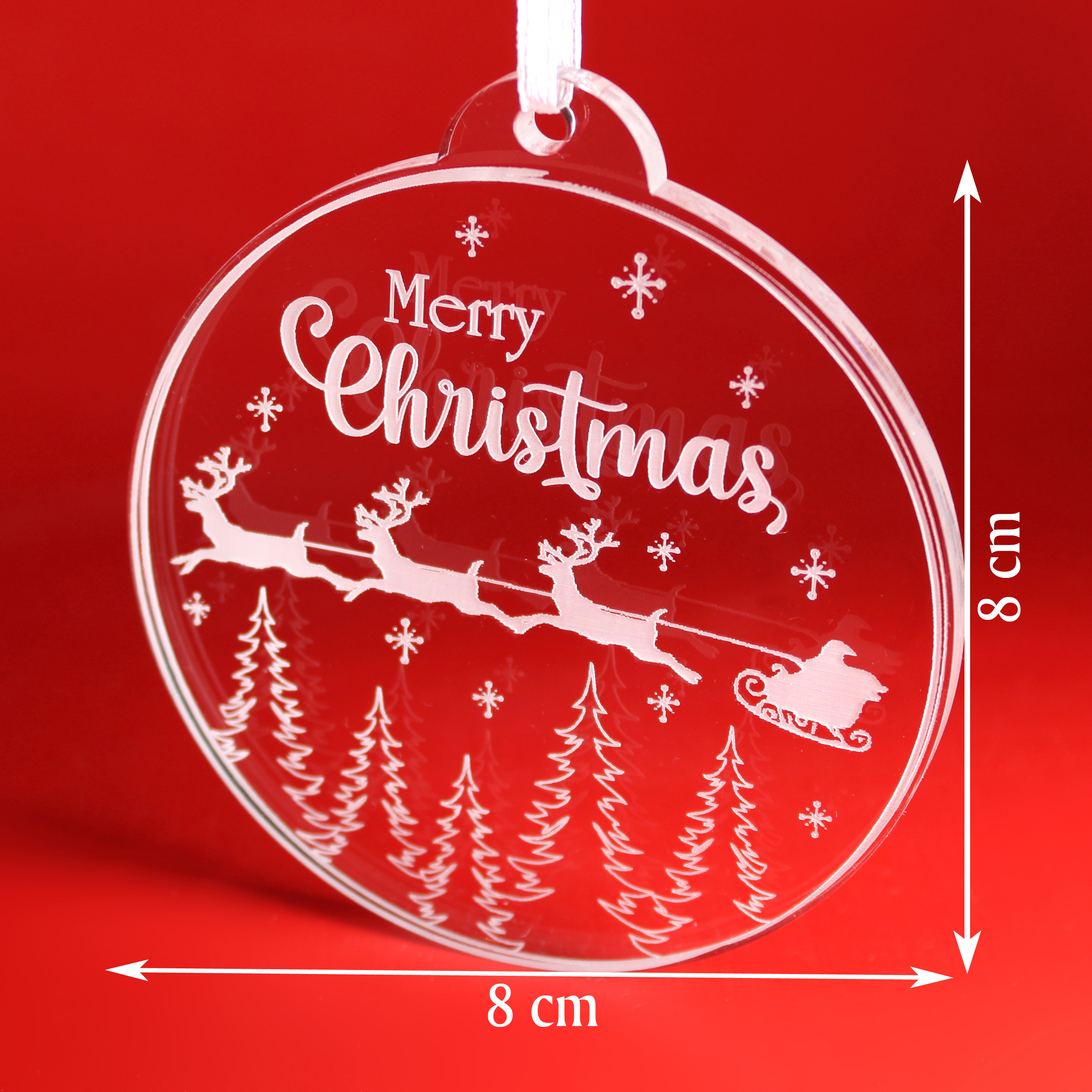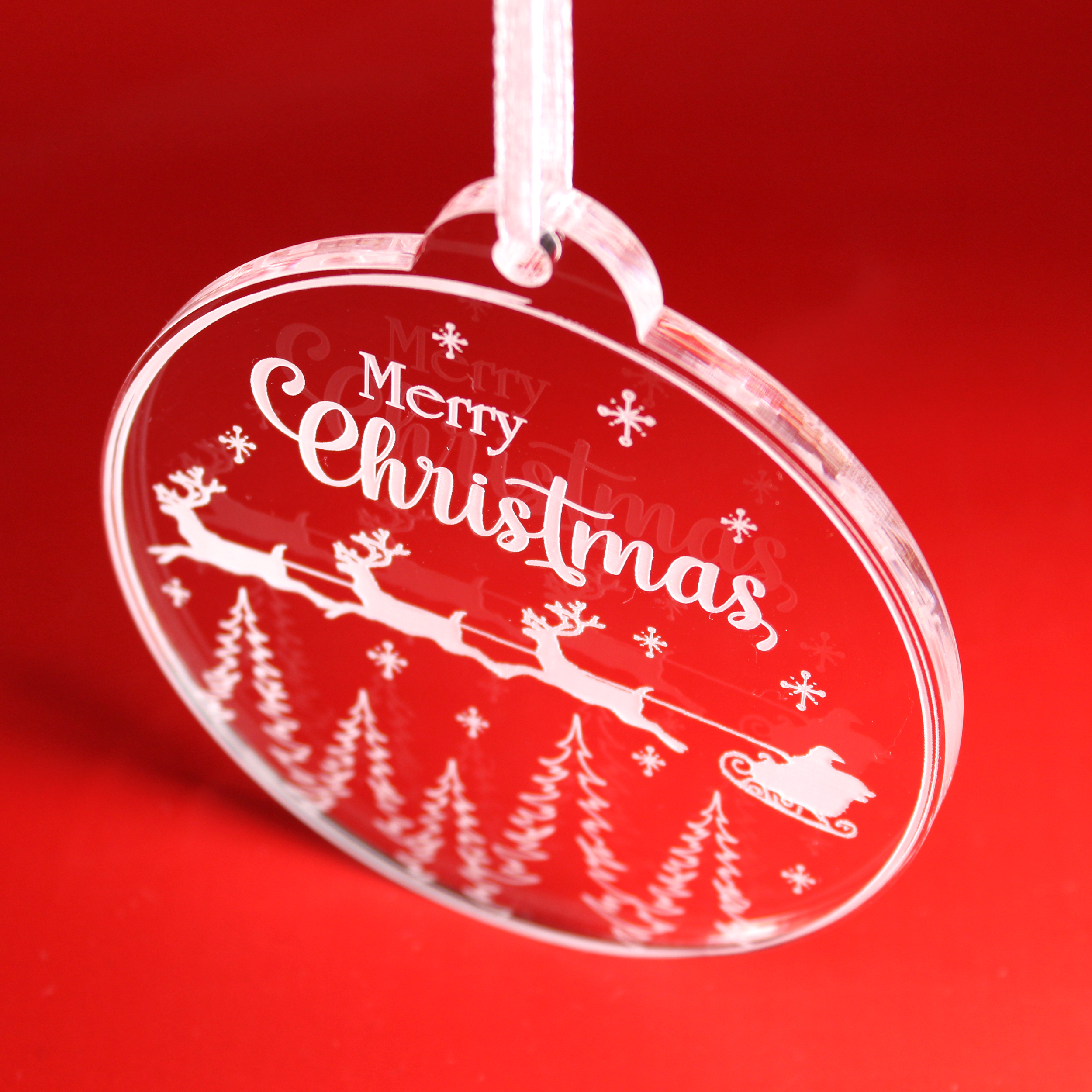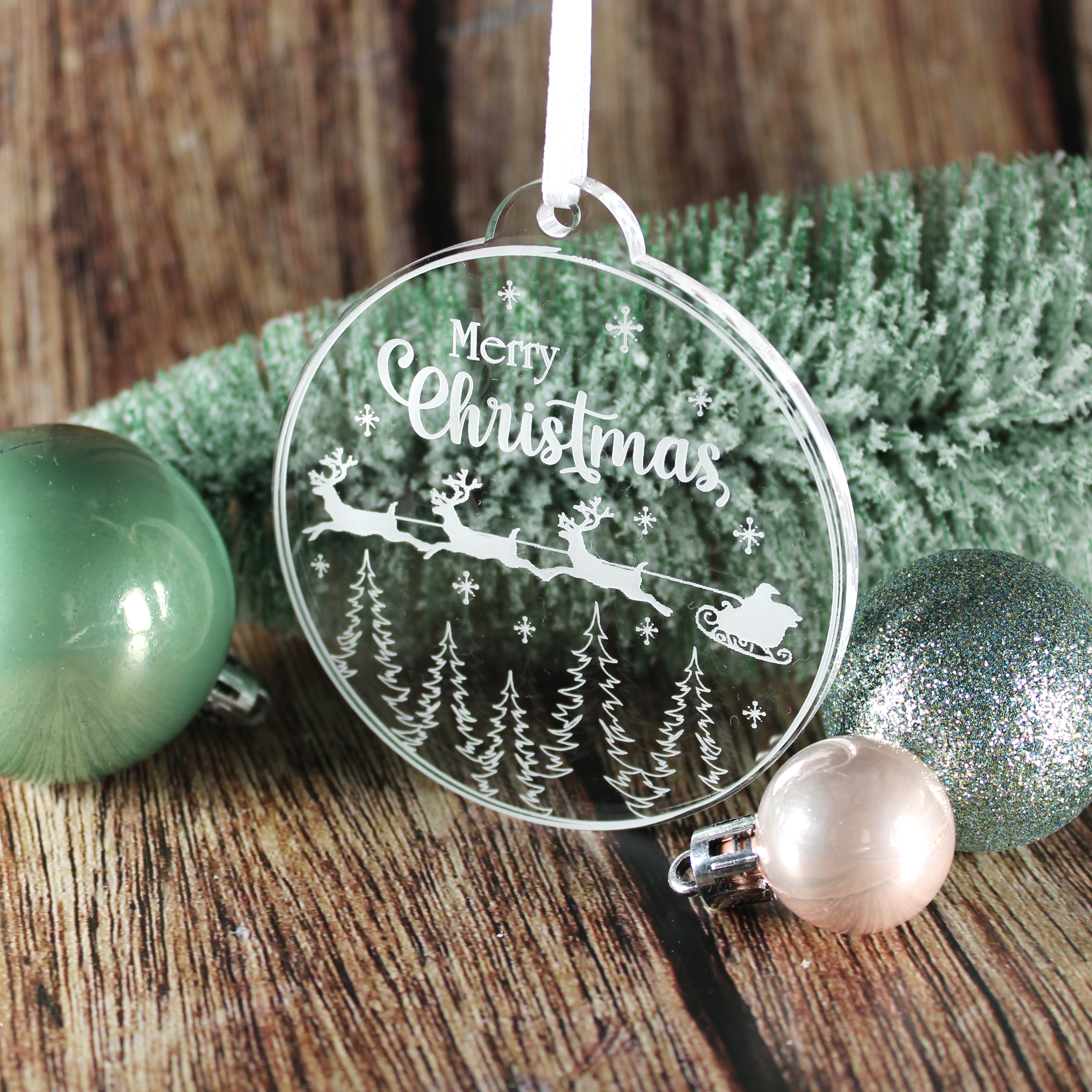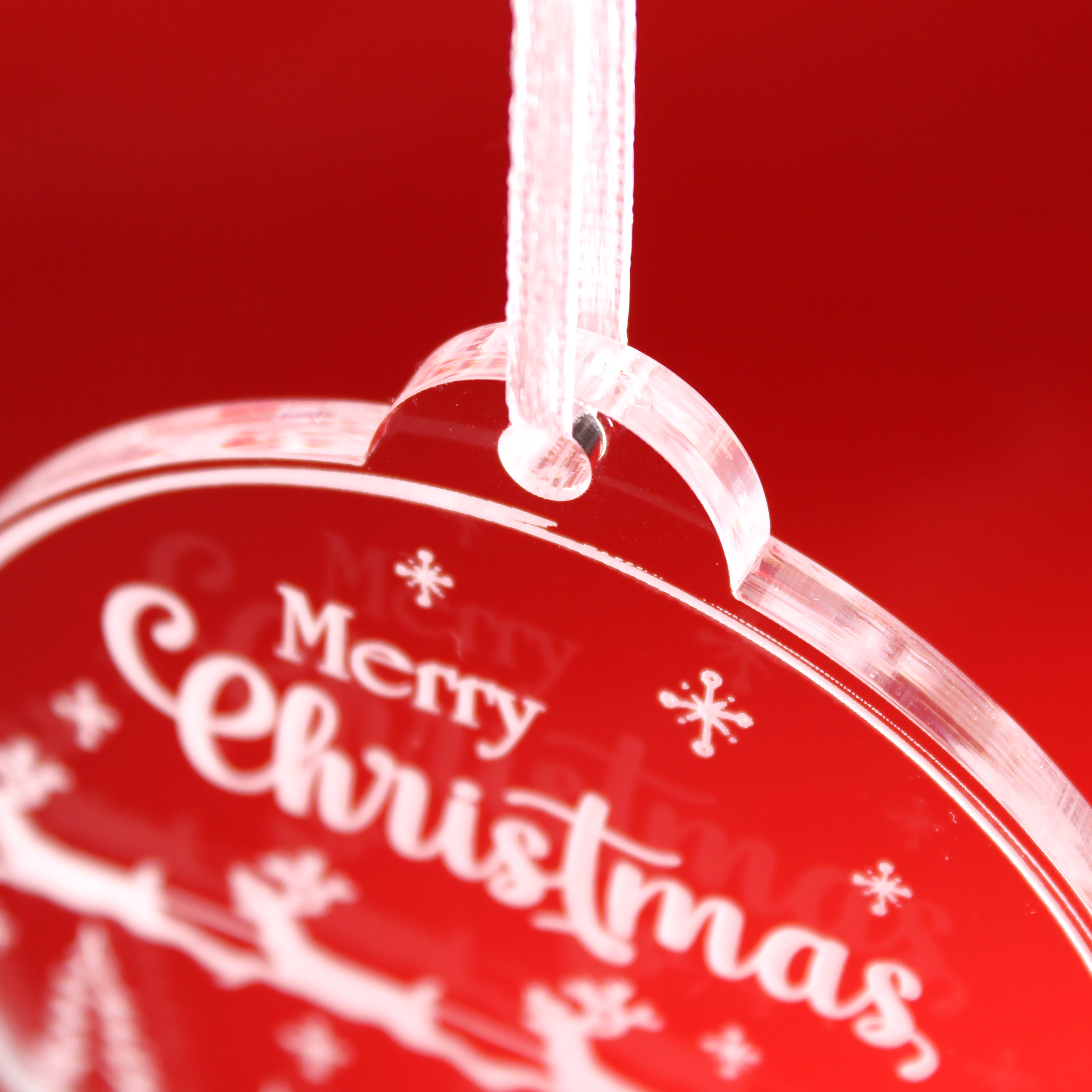 Christbaumanhänger Merry Christmas aus Acryl – transparente Weihnachtsanhänger mit weißer Gravur