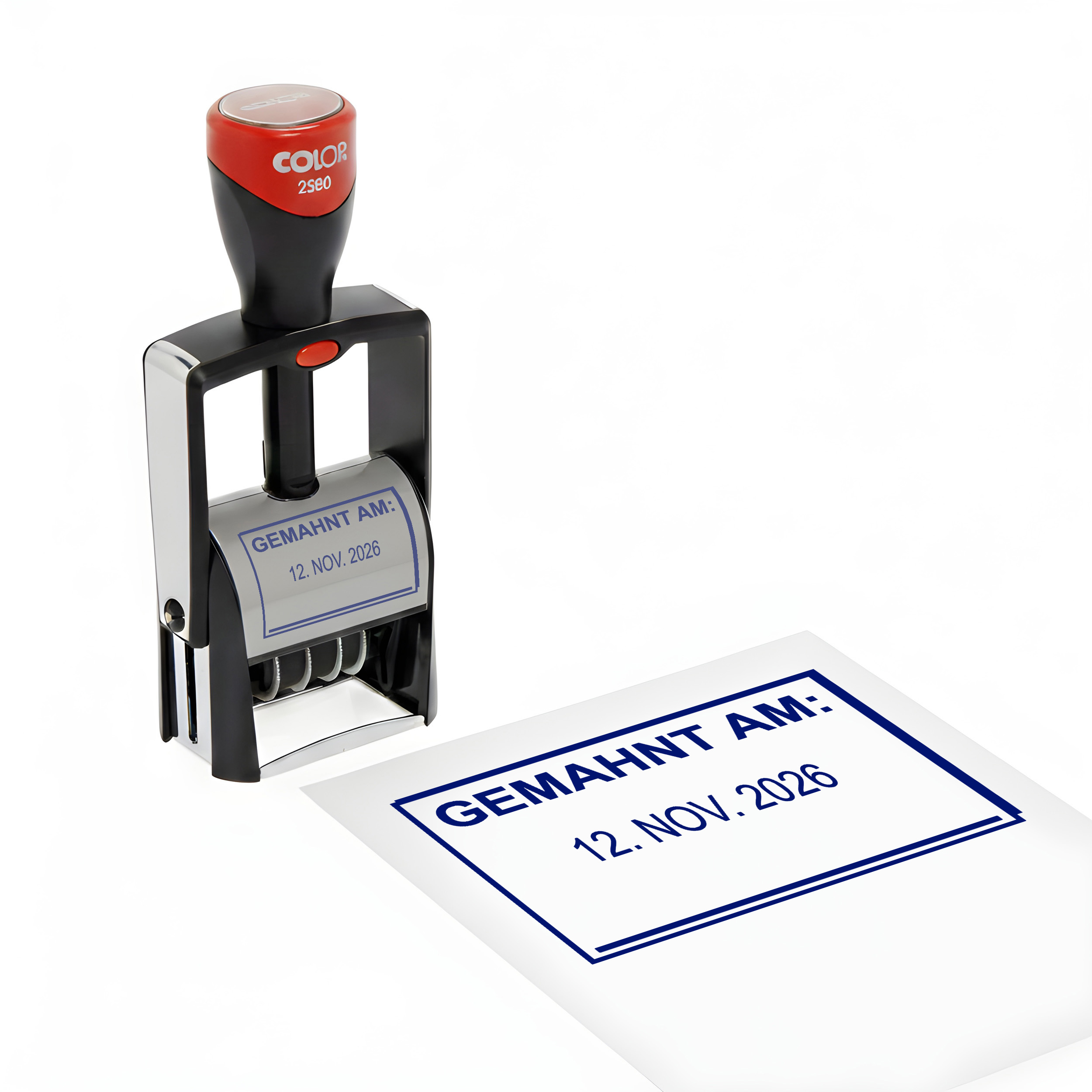 Datumsstempel Stempel GEMAHNT AM – Colop 2360 selbstfärbender Kontierungsstempel mit Datum 44x29 mm
