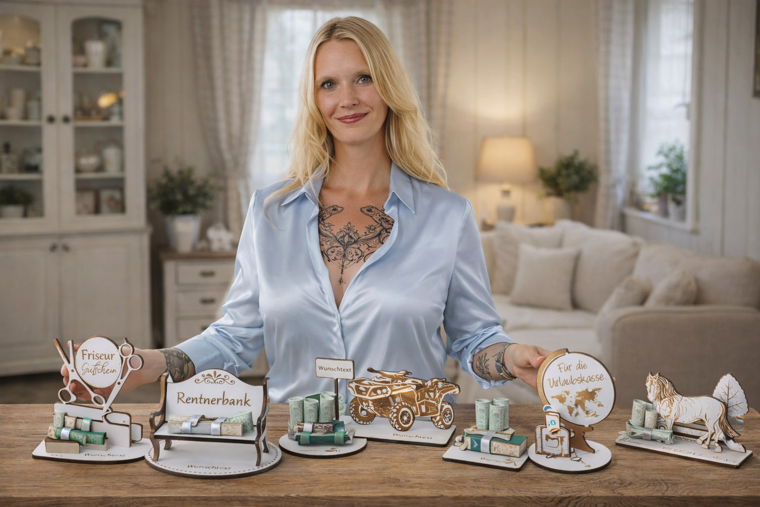 Auf Wunsch können die Modelle mit individuellem Text versehen werden und werden so zu einem ganz persönlichen Erinnerungsstück, das weit über den Moment des Schenkens hinaus Freude bereitet. Die Kombination aus dekorativem Design und praktischem Nutzen macht diese Geldgeschenke zu einer stilvollen Alternative zur klassischen Glückwunschkarte.