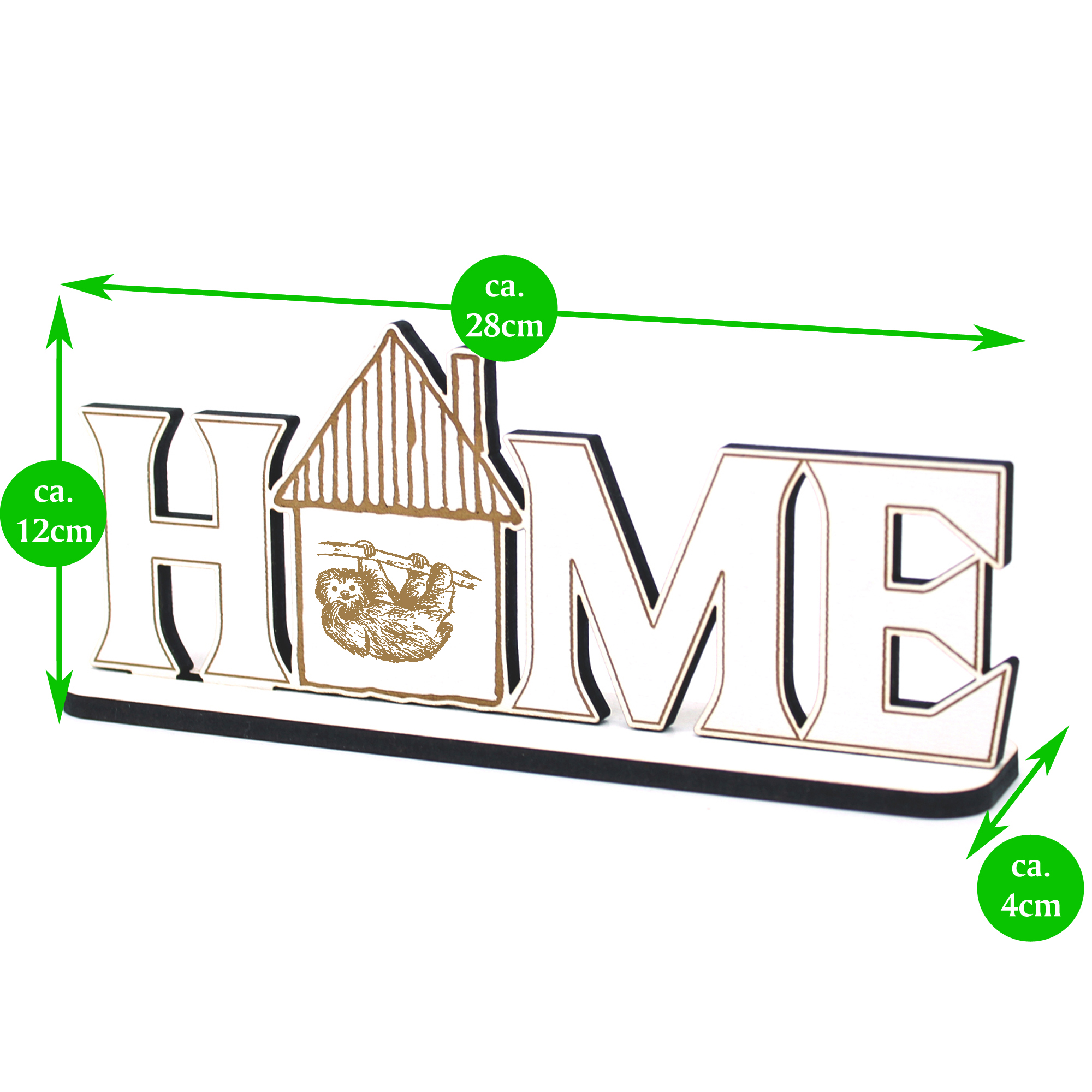 - HOLZAUFSTELLER: Die Wohndekoration ist stehend ca. 28 cm x 12 cm x 4 cm gross und wiegt ca. 70g. Der Holzschriftzug besteht aus HDF in weiß, einem sehr robusten und formstabilen Holz. Die Lasergravur wird mit hochpräzisen Industrielasern gefertigt. Die obere Schicht des Materials wird klein abgetragen und das untere Braun kommt zum Vorschein